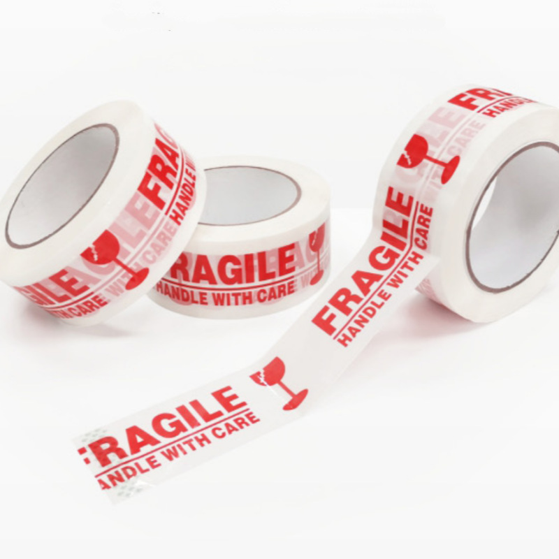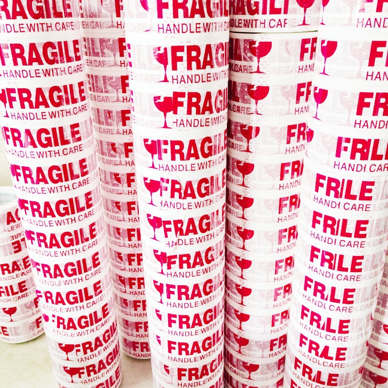 FRAGILE胶带外贸打包胶布50U高粘易碎胶带白底红字易碎杯英文胶带