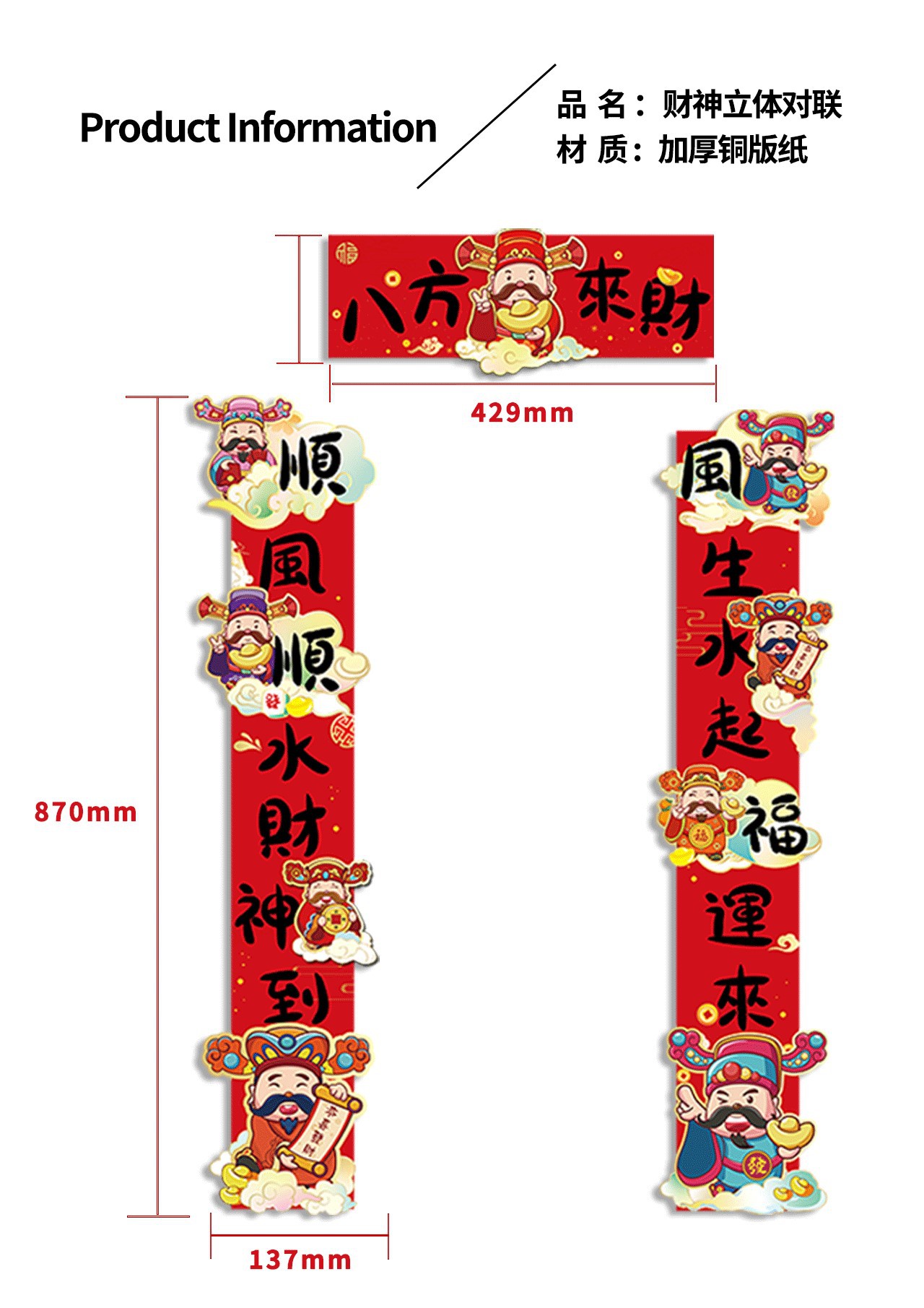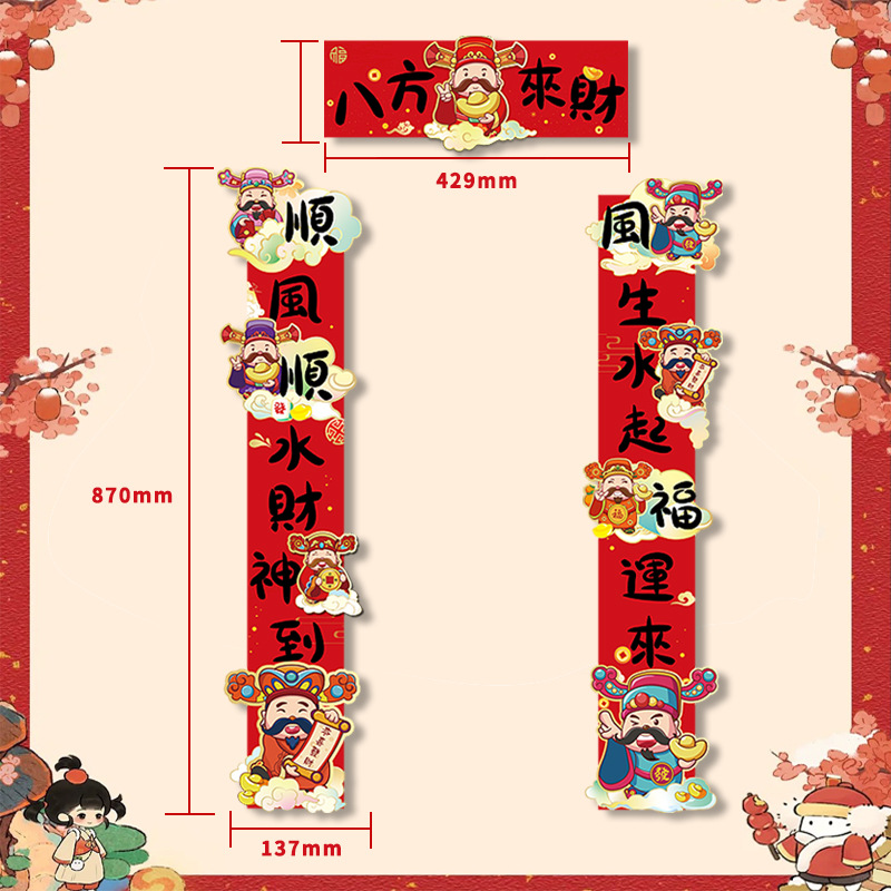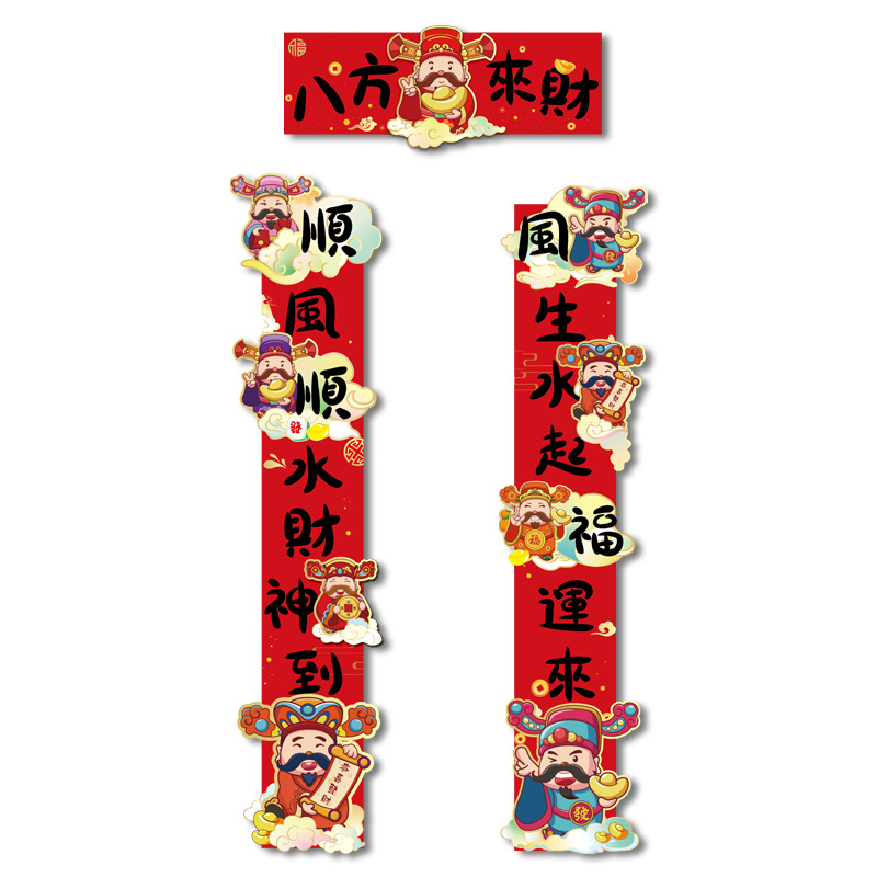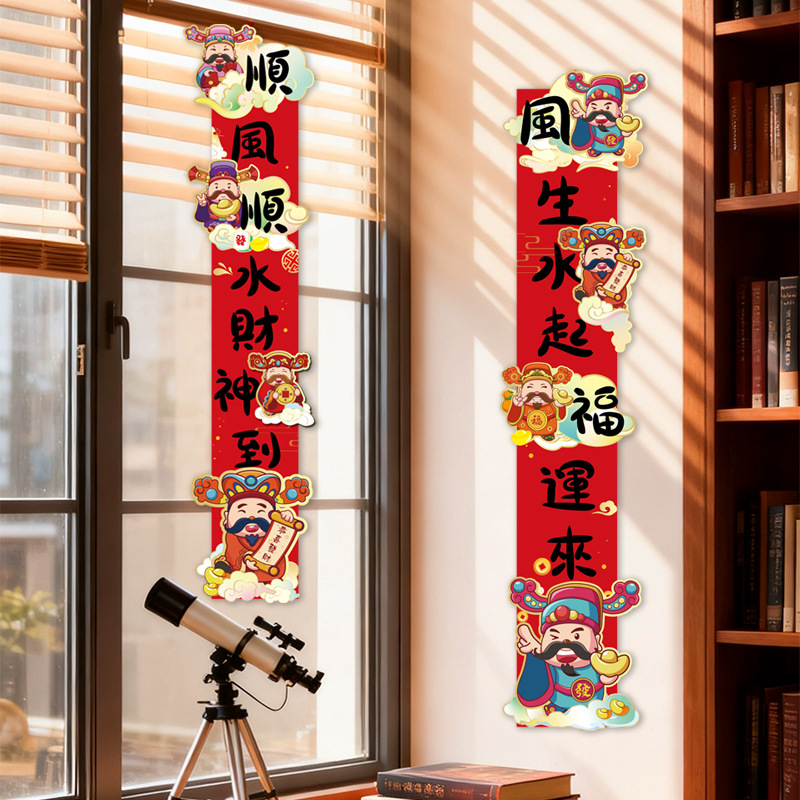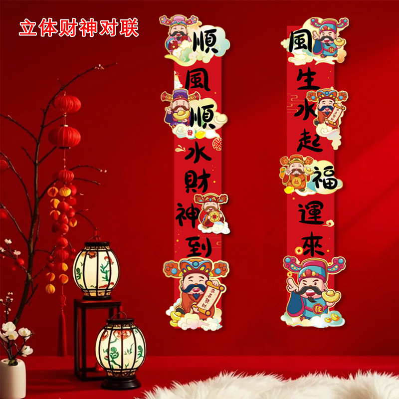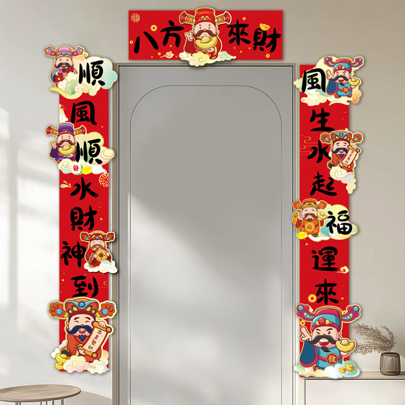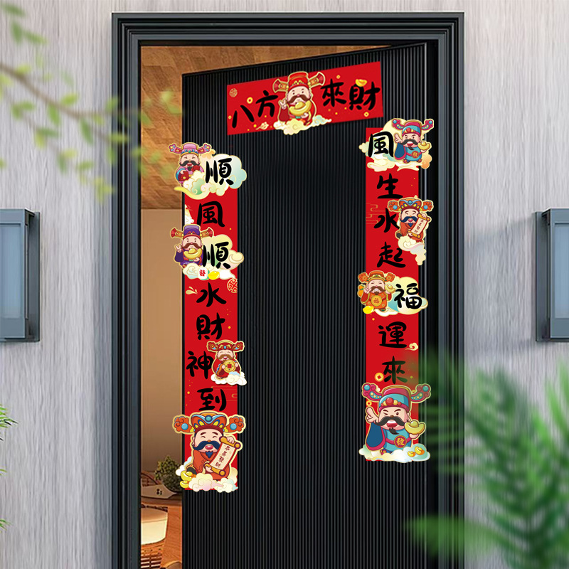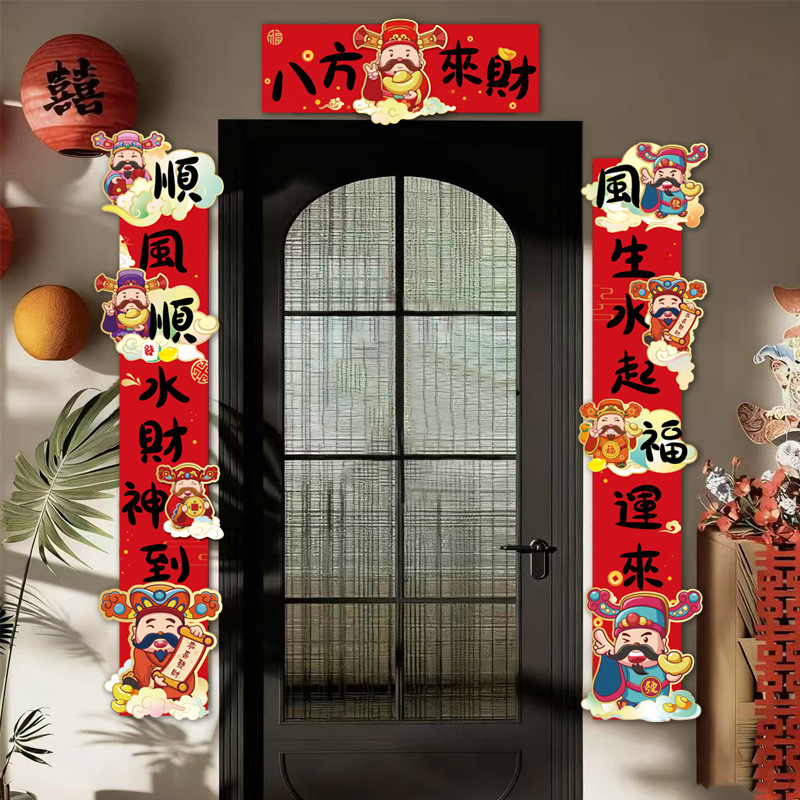 马年财神卡通对联春联2026年新款春节过年入户大门联贴装饰挂批发
