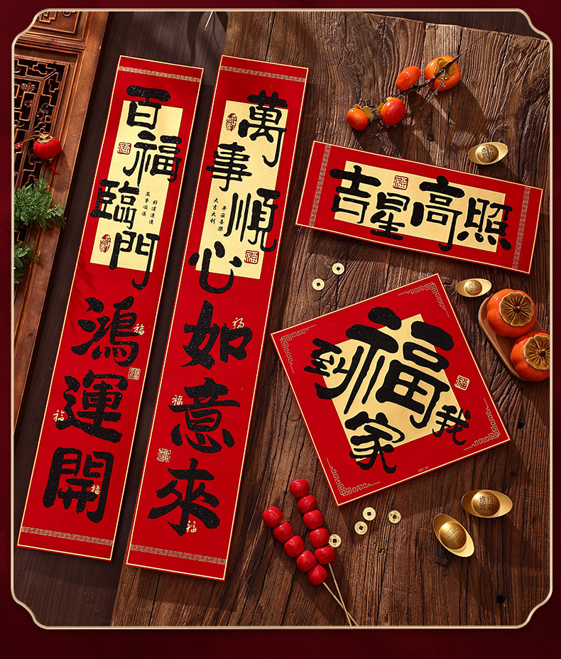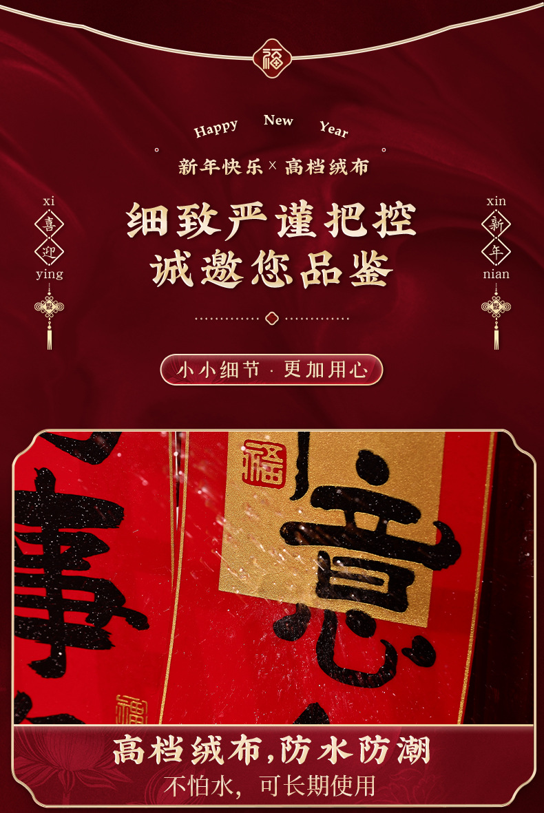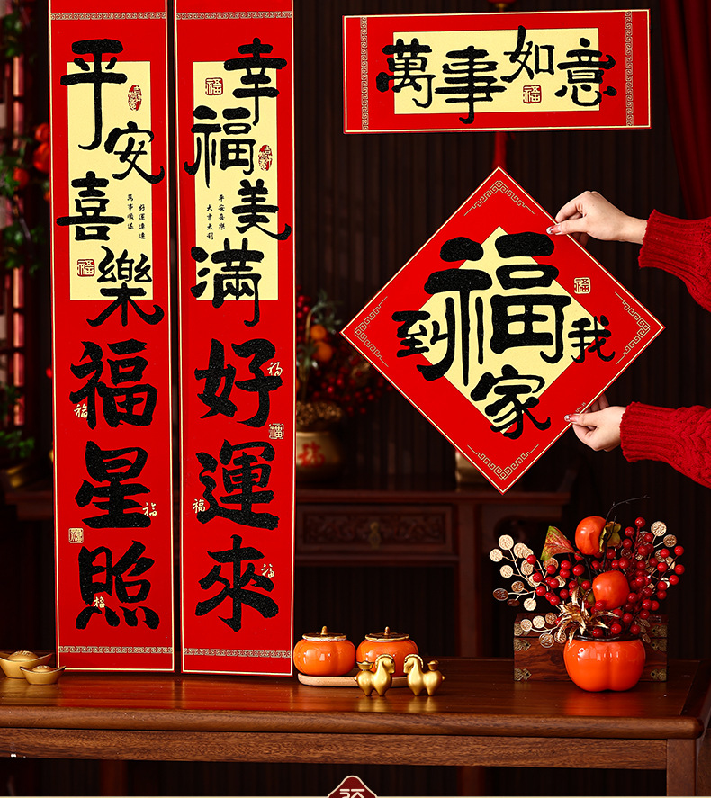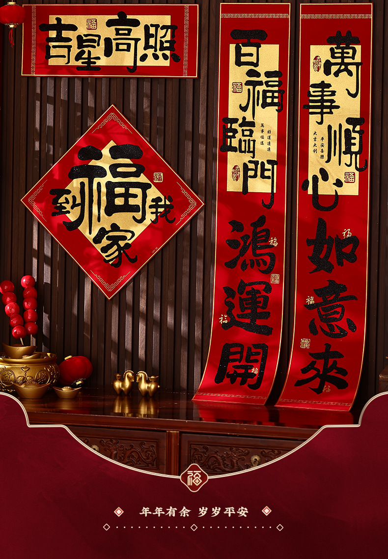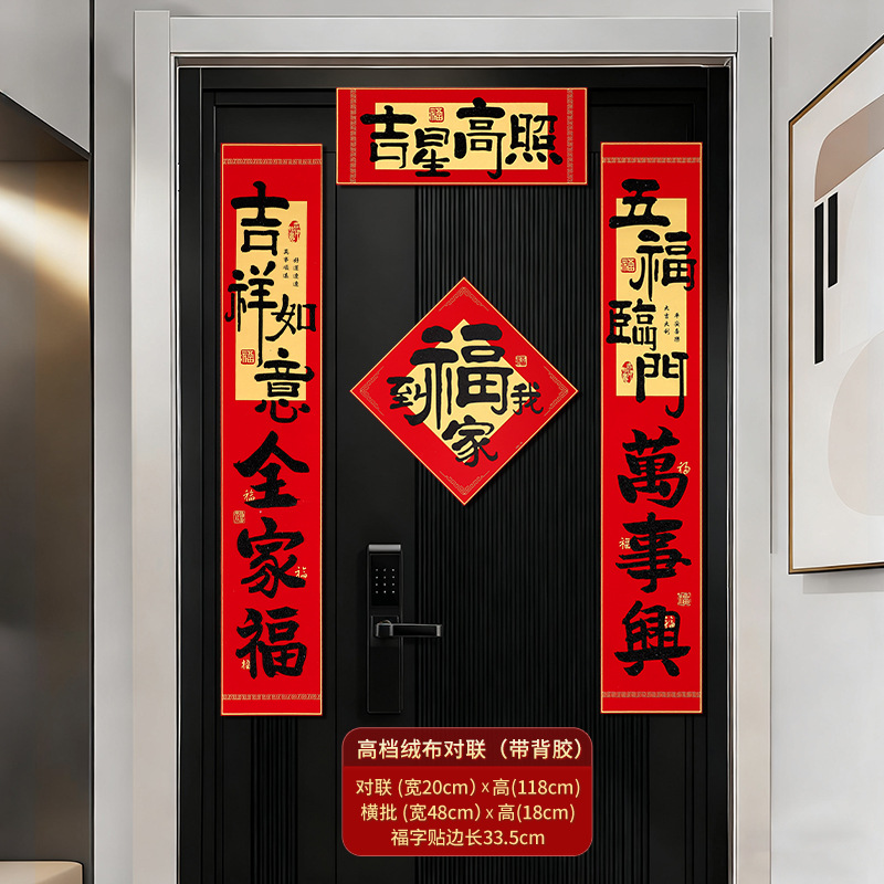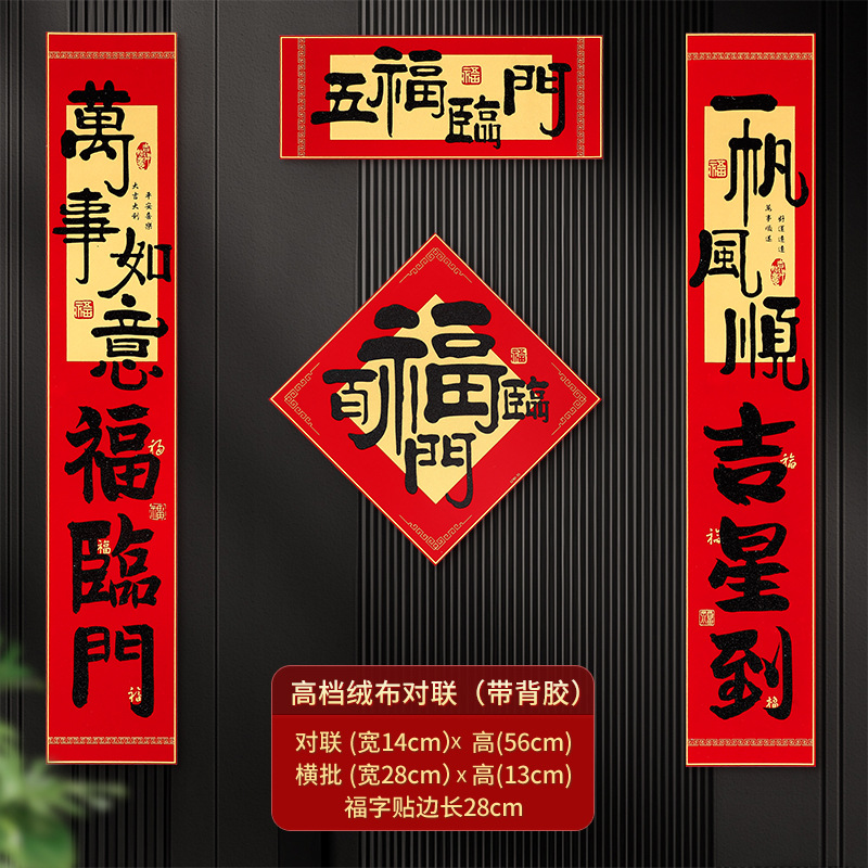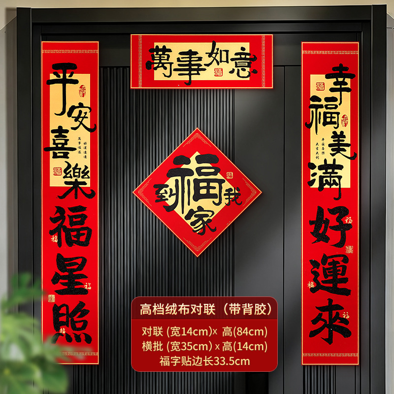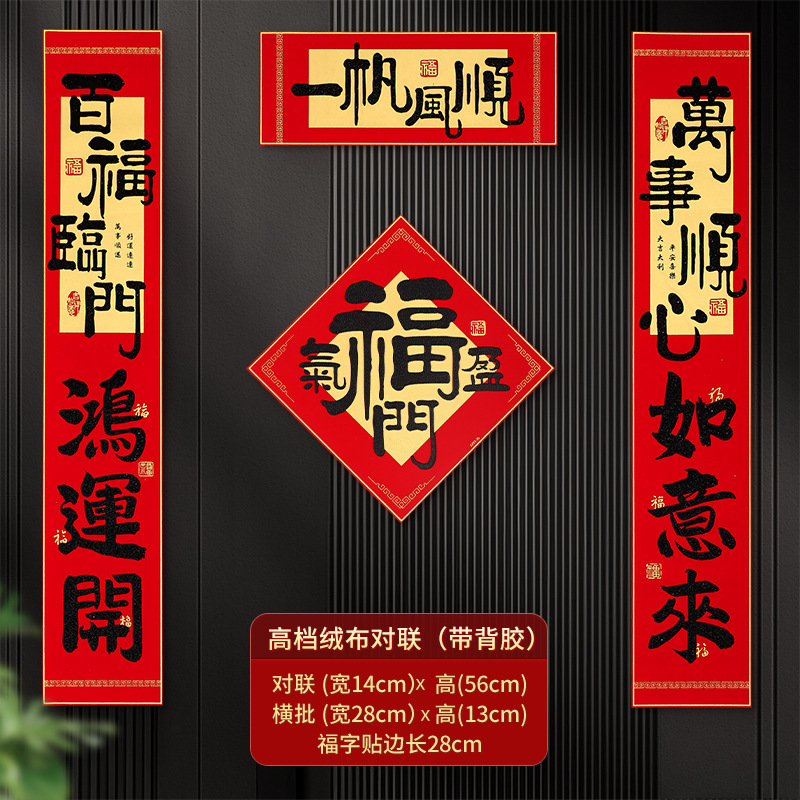 2026新年对联绒布书法春联马年春节福字高档装饰过年背胶年货批货