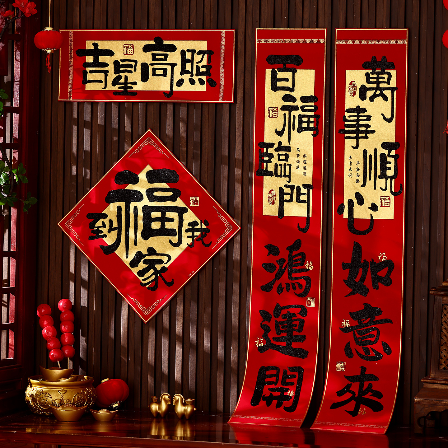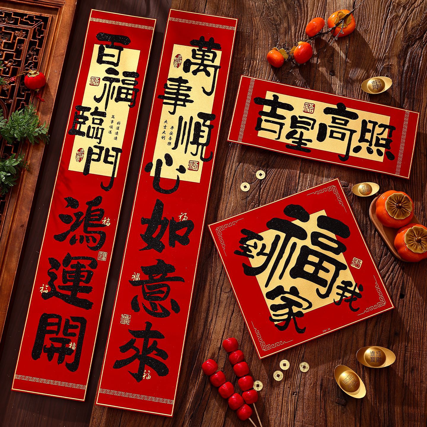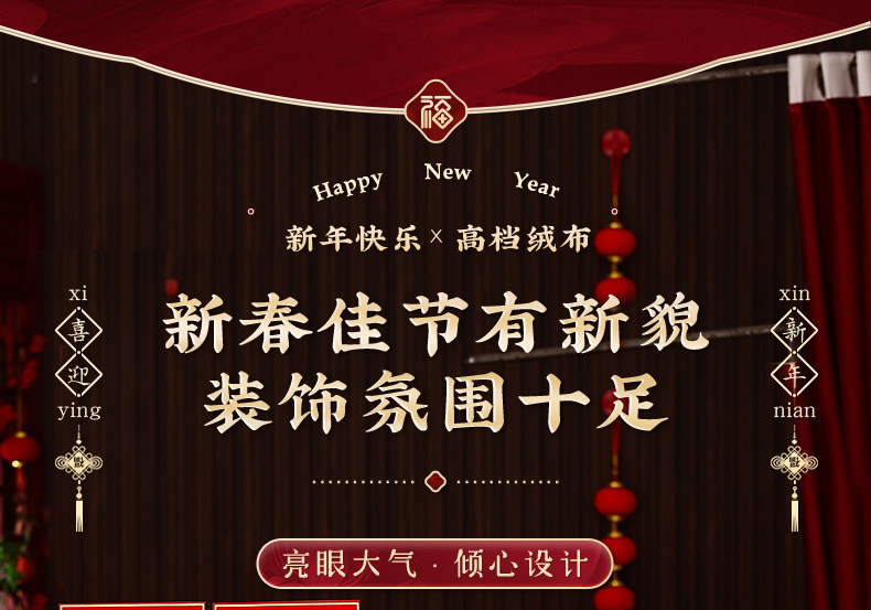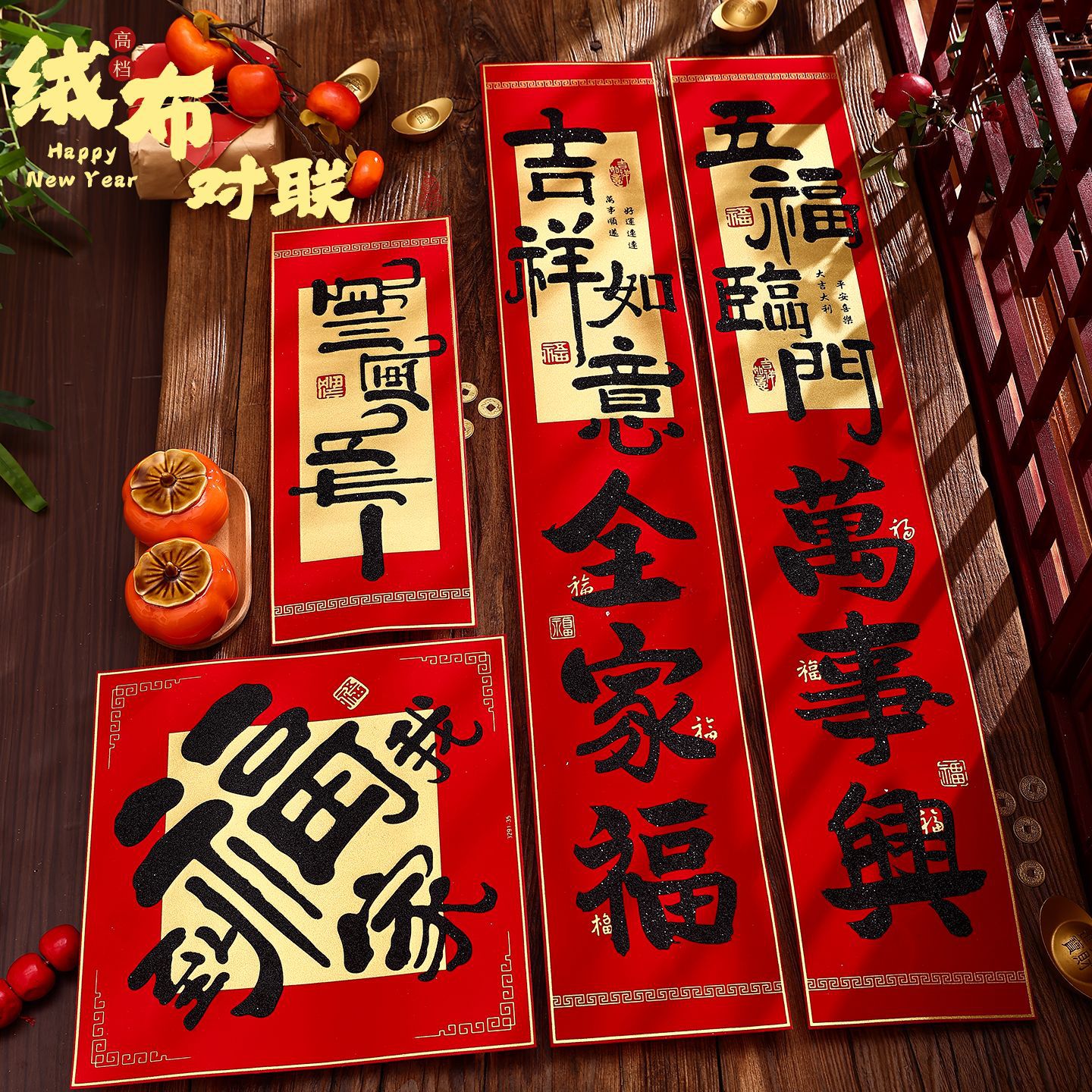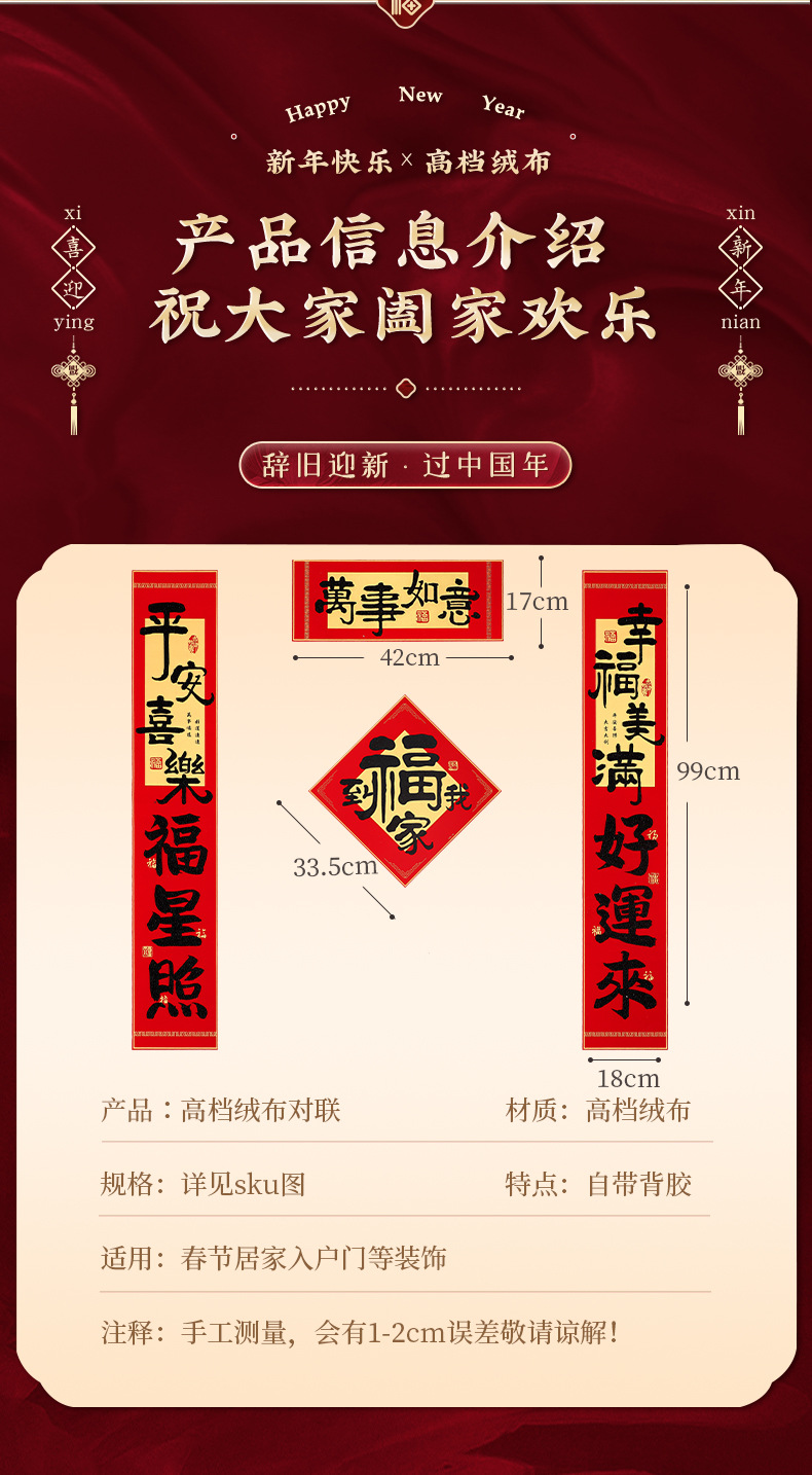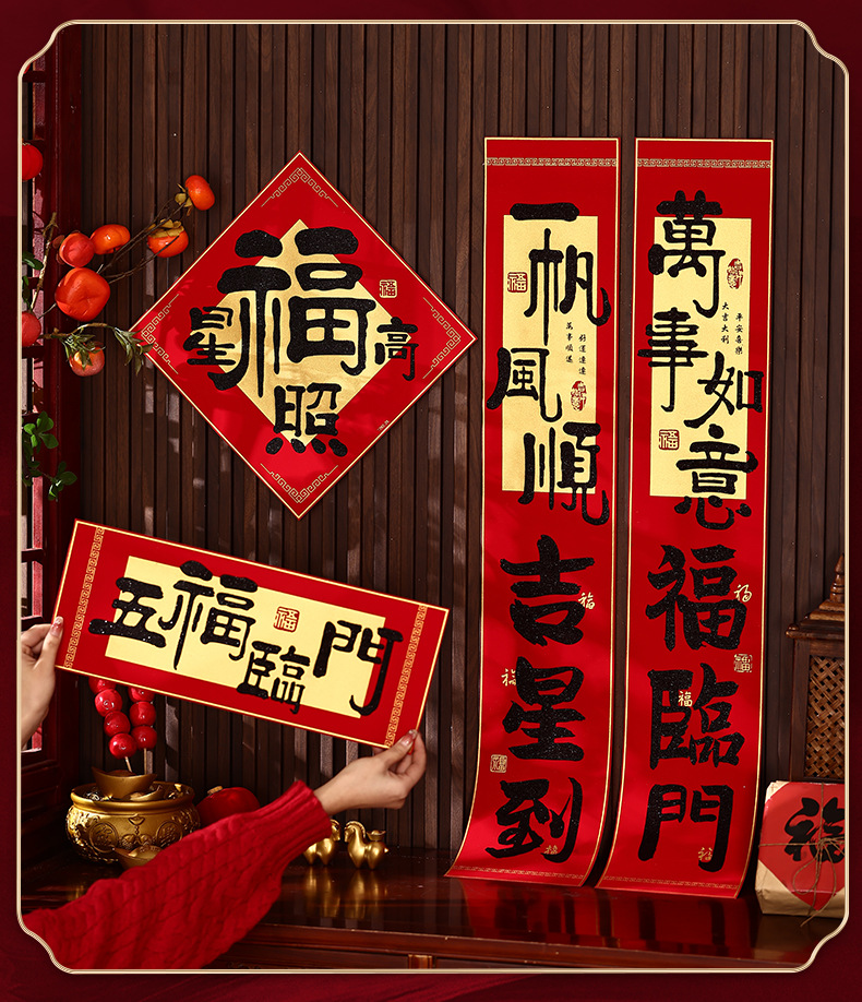 2026新年对联绒布书法春联马年春节福字高档装饰过年背胶年货批货