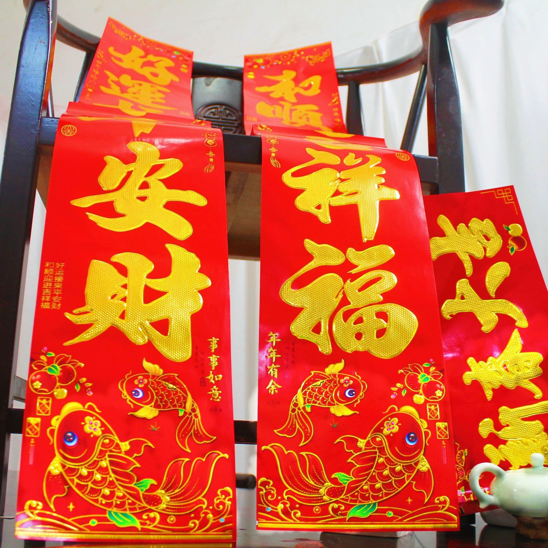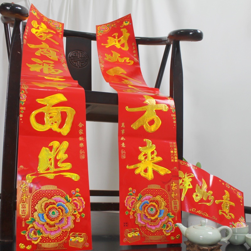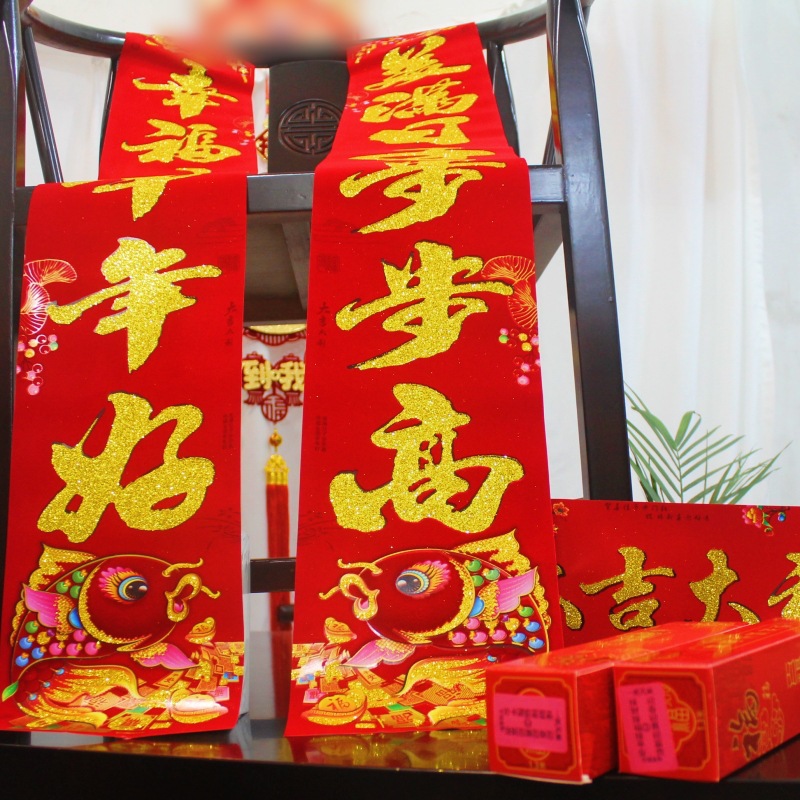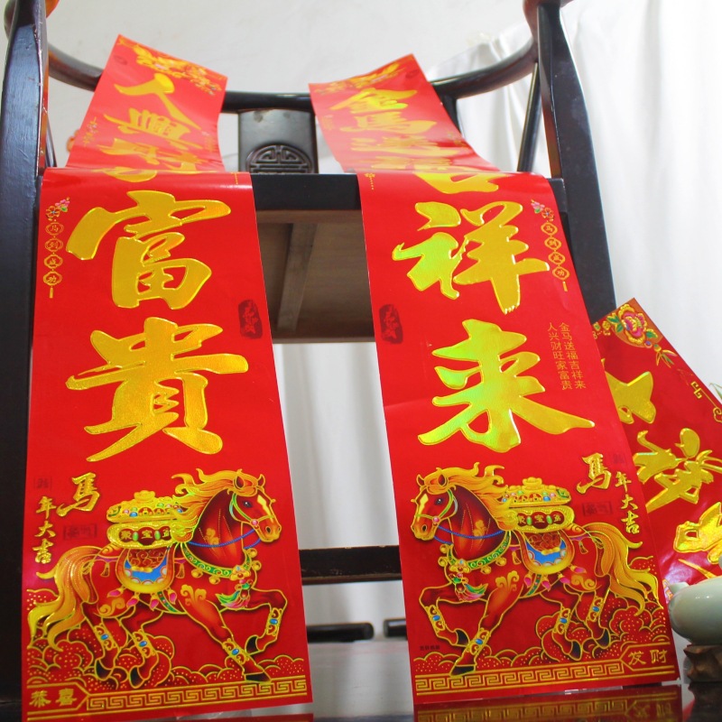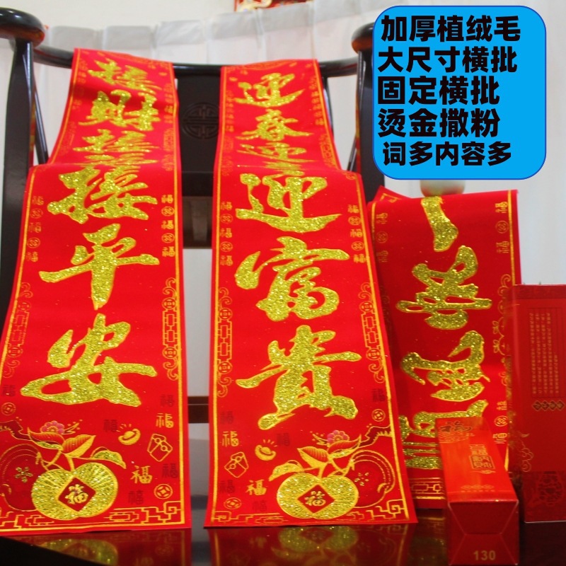 对联批发2026马年新款满植绒烫金春节春联大礼包批货套装年货