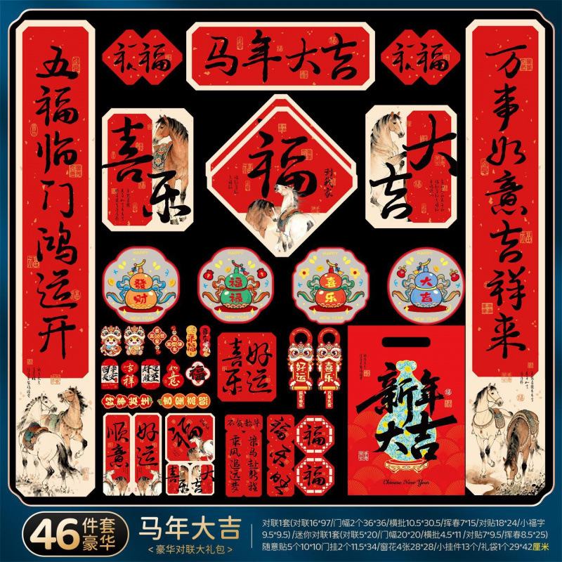 2026春节对联批货马年新年春联过年家用新款大礼包福字门贴纸装饰