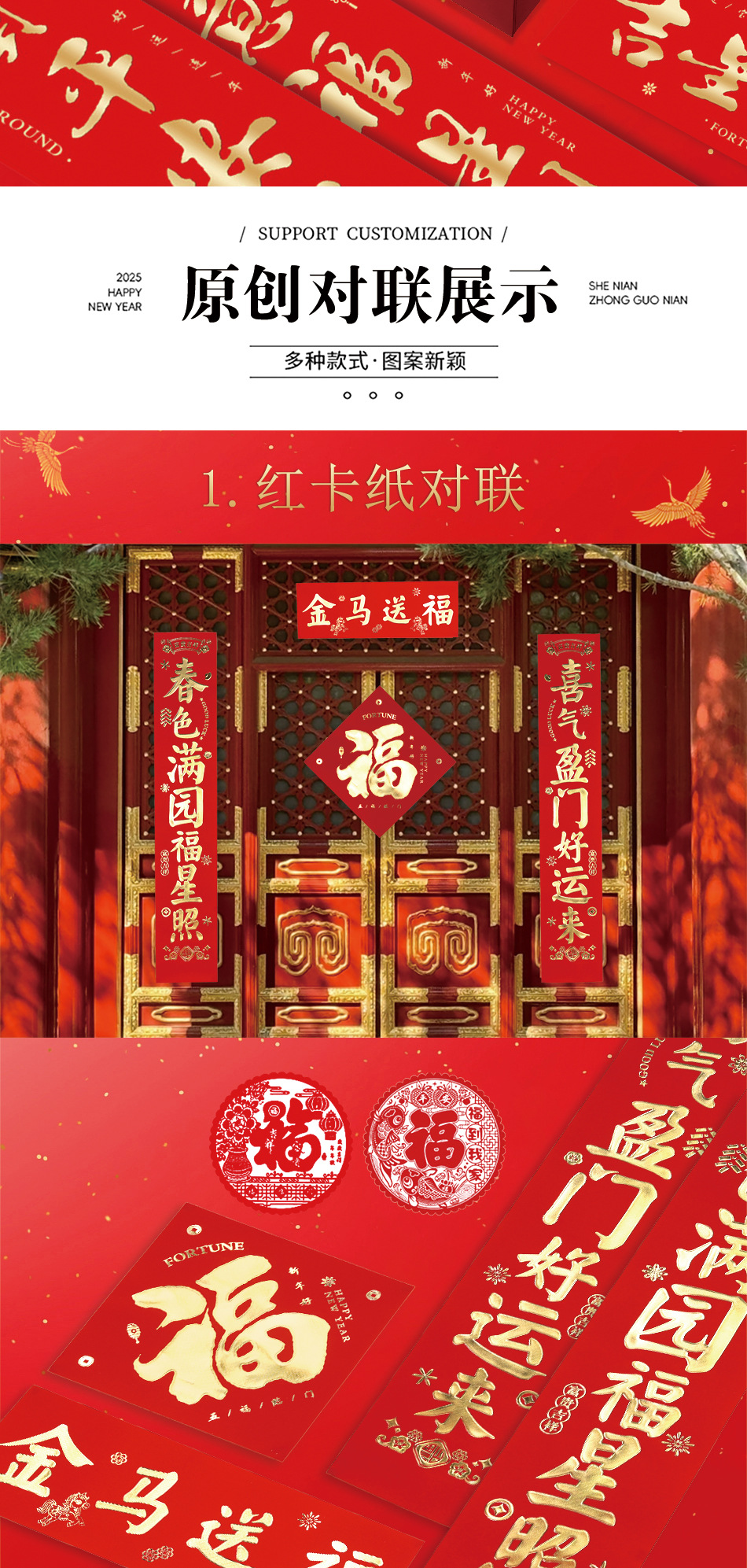 马年对联春联批货春节过年福字礼盒套装现货可印logo对联2026烫金