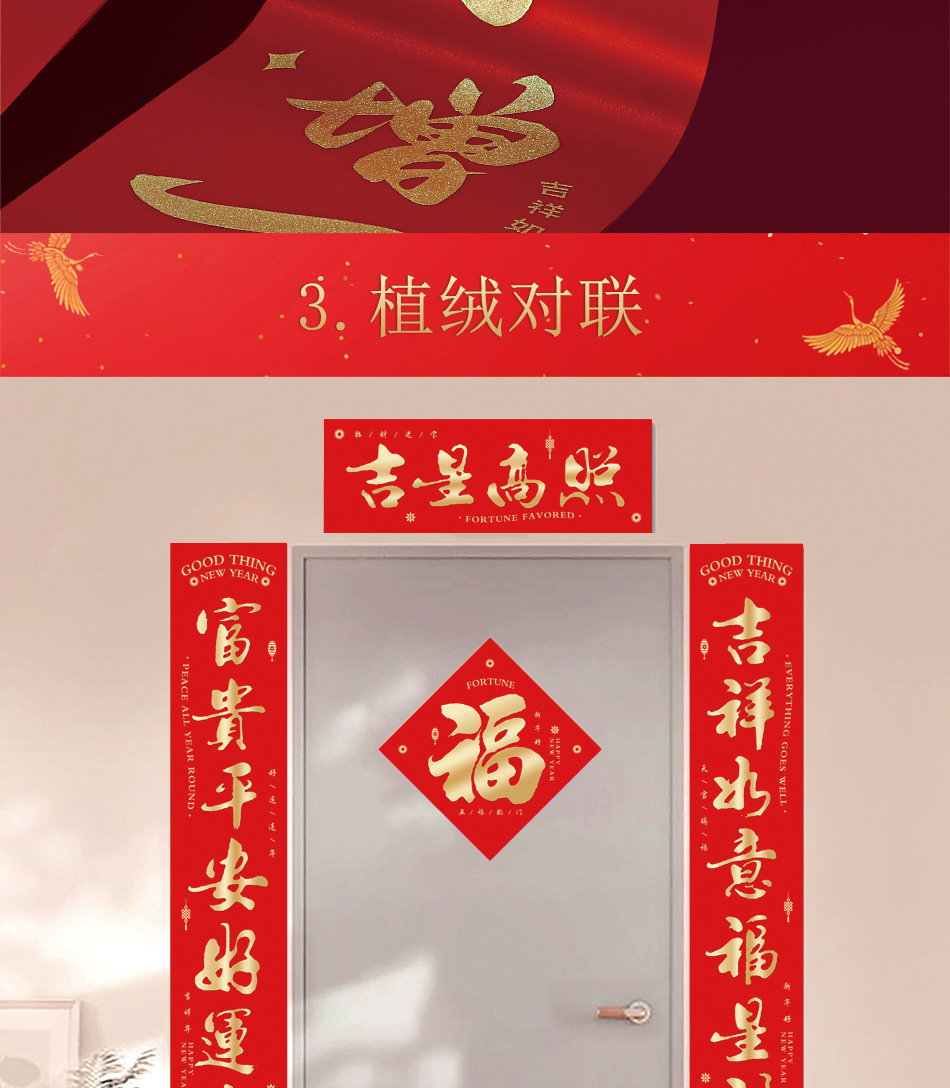 | 1.2 m flocking couplet(1.2米植绒对联) | USD $4.26 | 9999 pair available |