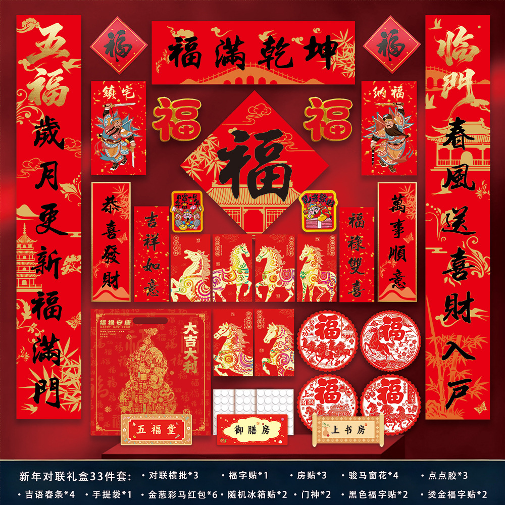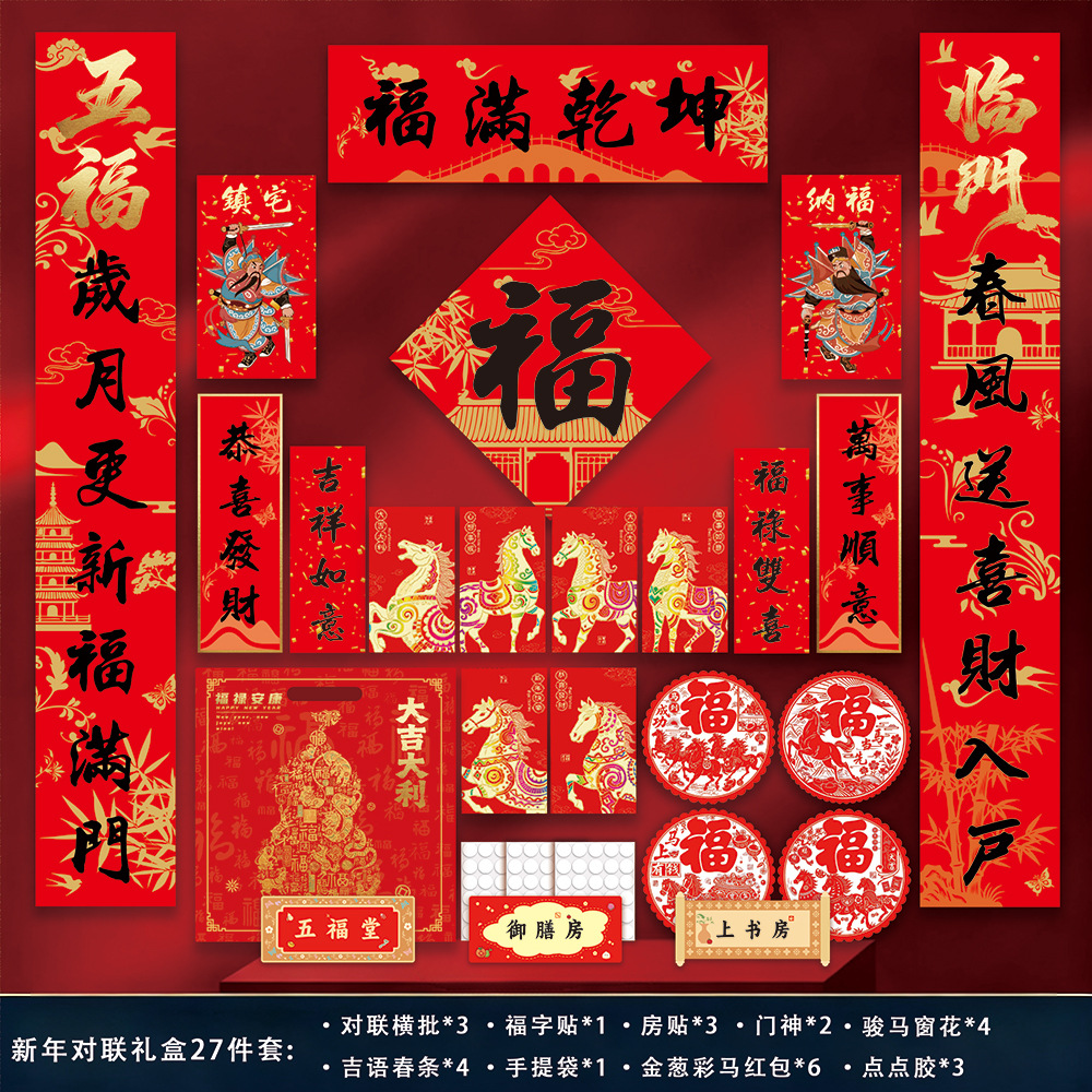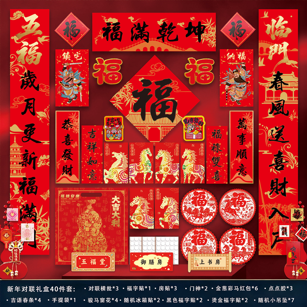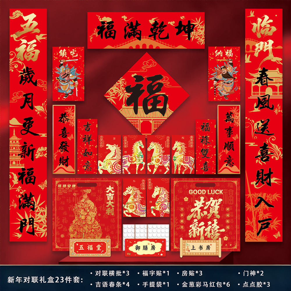 2026对联马年春联年货礼盒爆品套装小红书春节冰箱贴窗花红包批货
