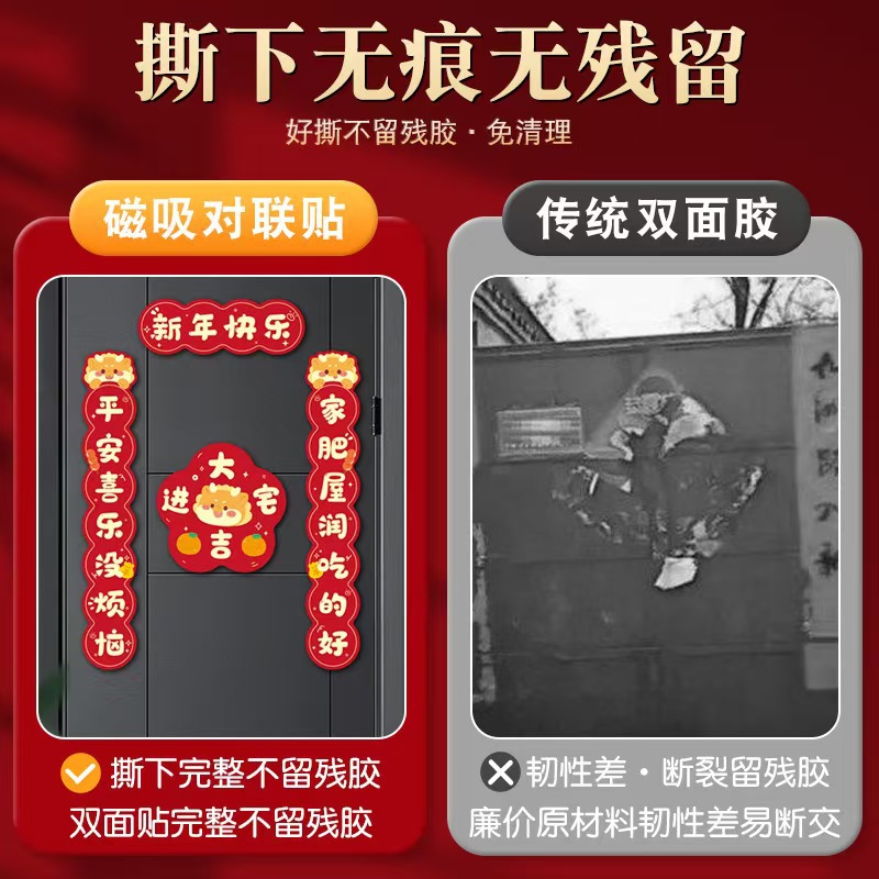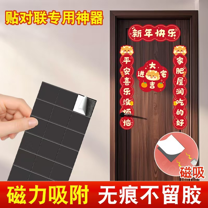 过年贴对联专用方形带背胶软磁片无痕易撕春节福字对联磁吸胶贴片