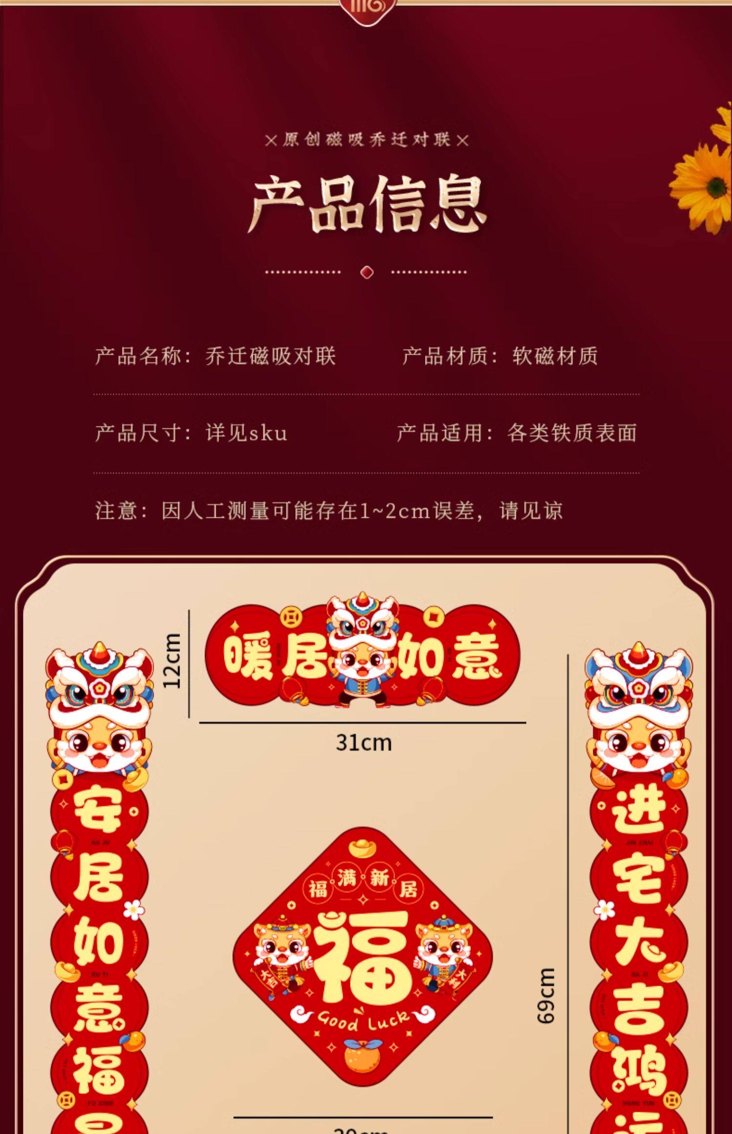 磁吸对联乔迁之喜搬新家入宅进新房仪式用品入户门布贴置新居装饰