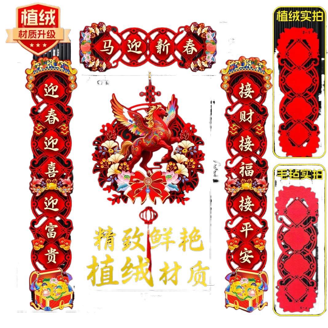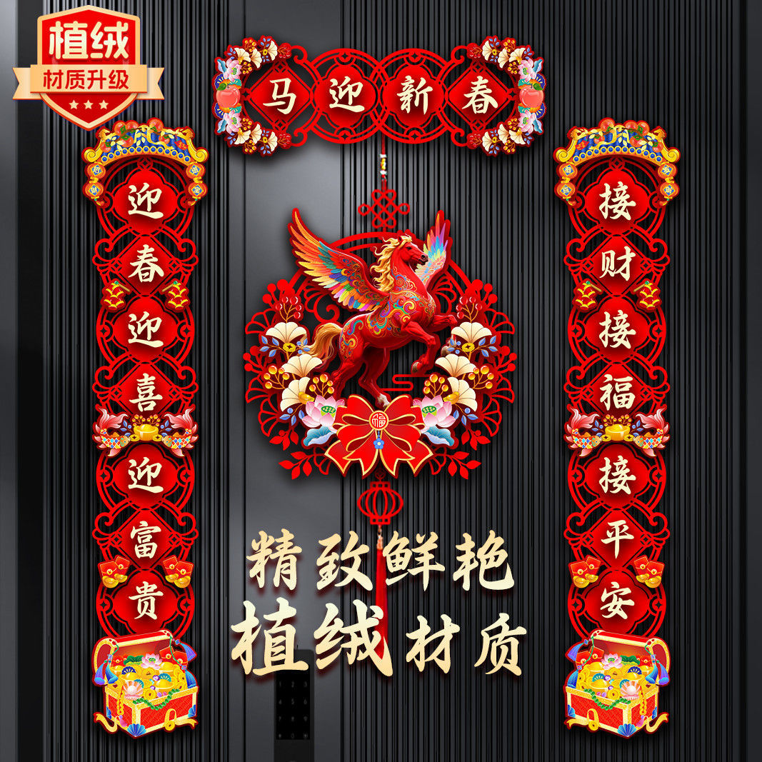 植绒对联2026马年新款春节家用过年大门布置新年门贴装传统春联