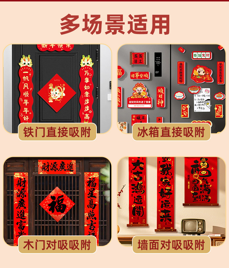 ✅对联磁吸贴片2026马年贴春联乔迁新年对联贴入户门铁门木门
