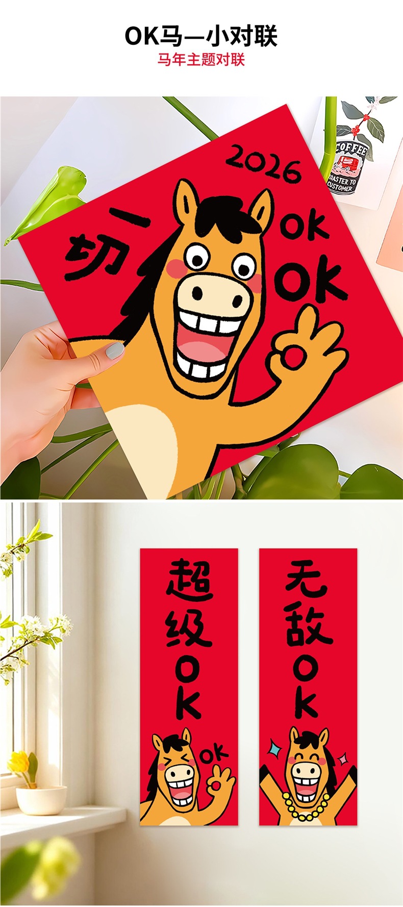 2026马年新款搞笑对联创意春联春节装饰OK办公室出租屋小对联其他