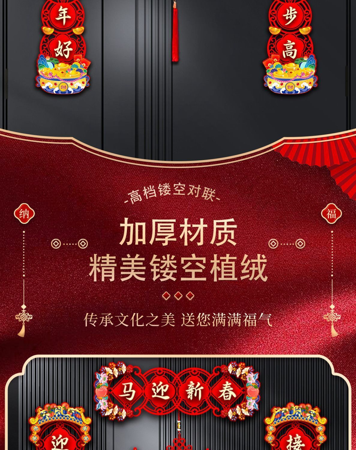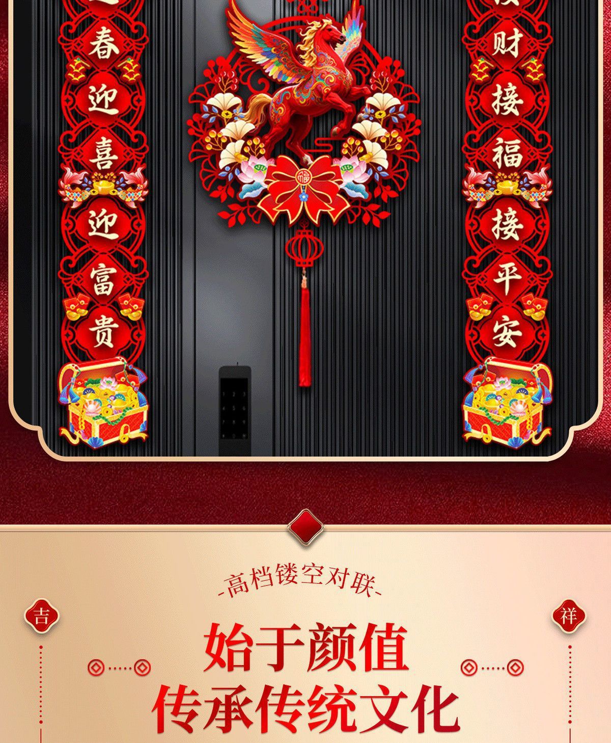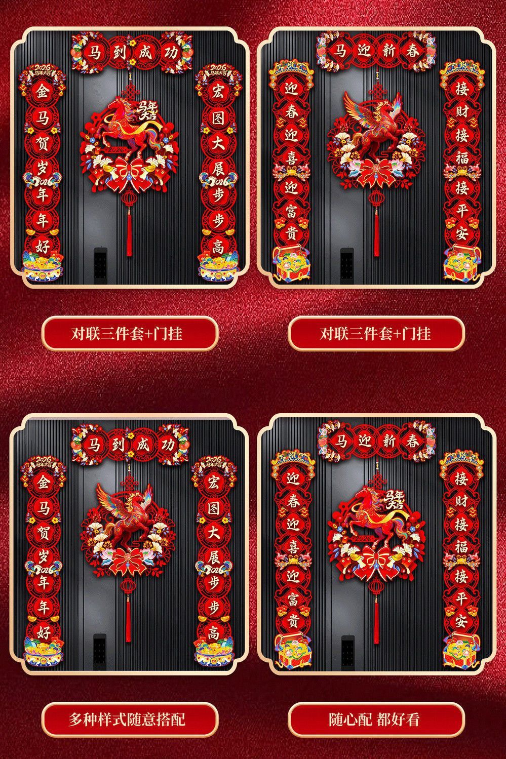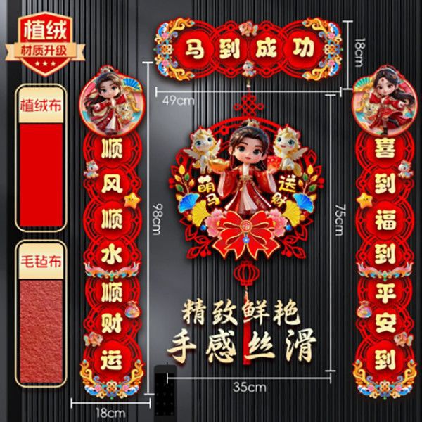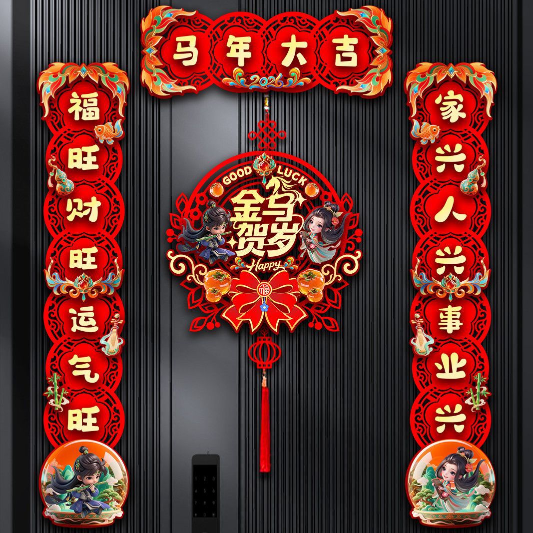 植绒对联2026马年新款春节家用过年大门布置新年门贴装饰磁吸春联