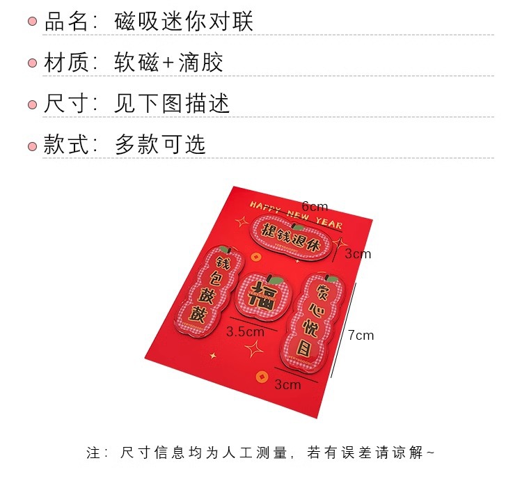 小对联冰箱贴磁贴宿舍新年春节恭喜发财福字节日磁吸贴片新年装饰