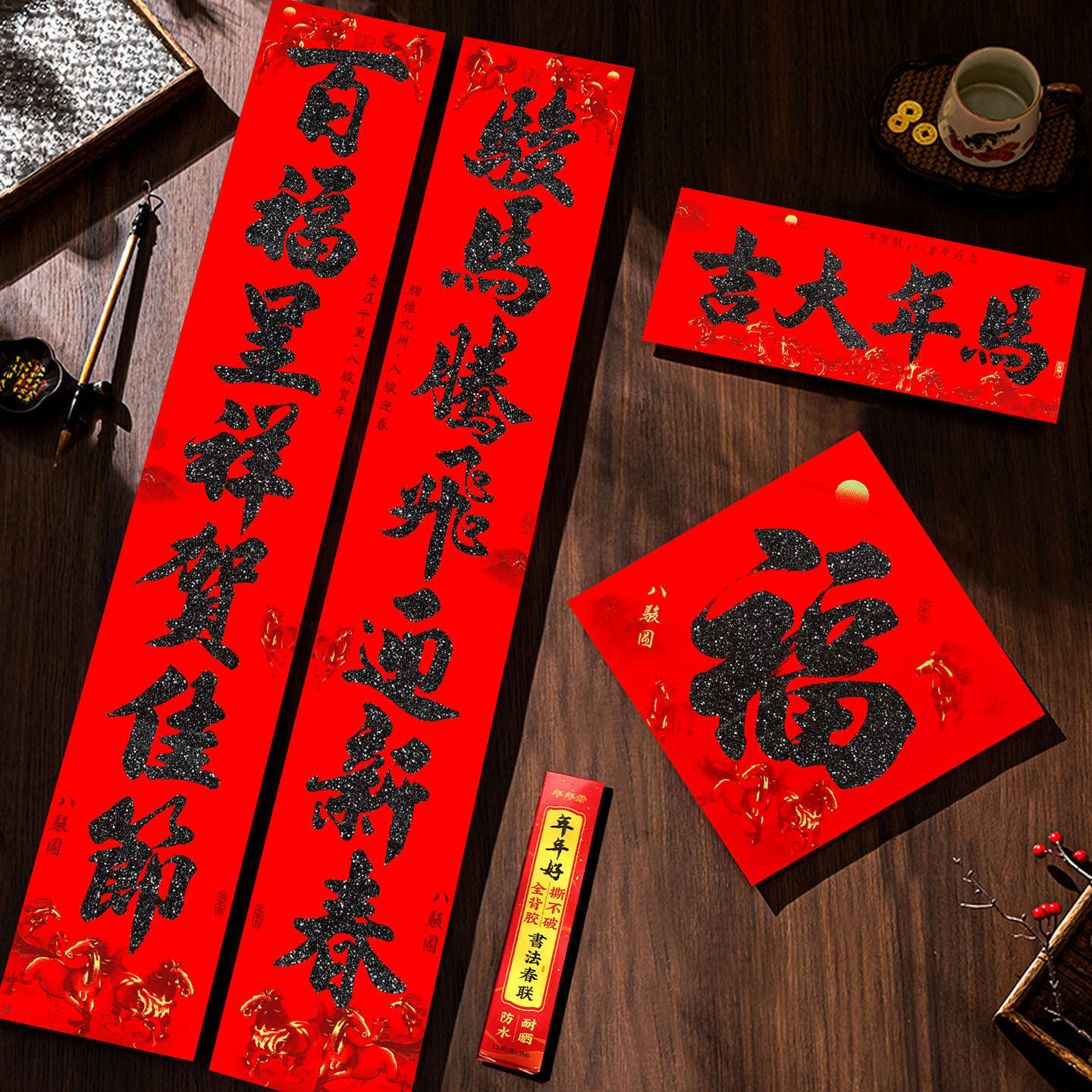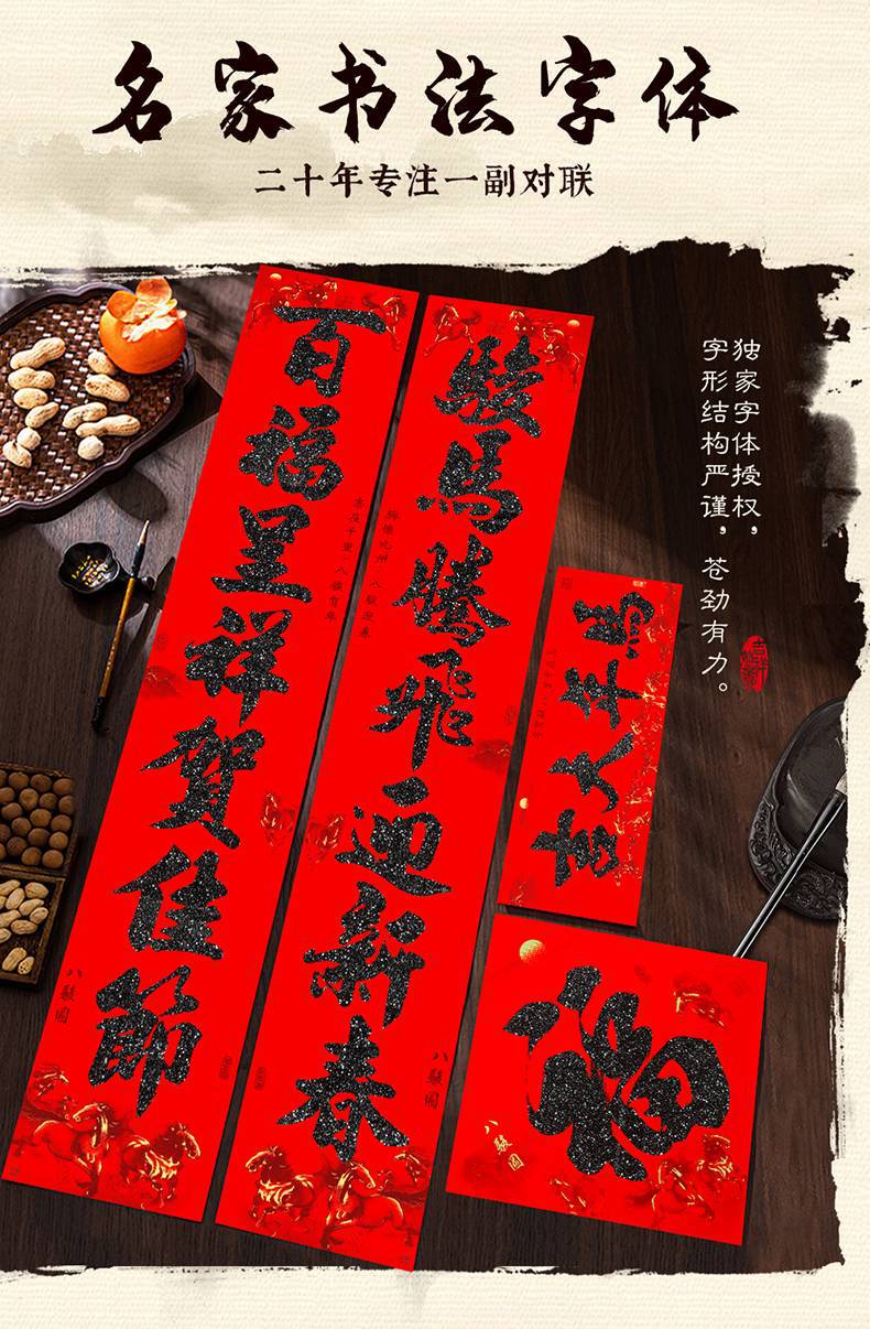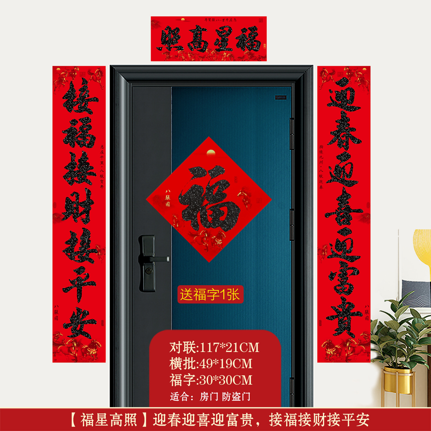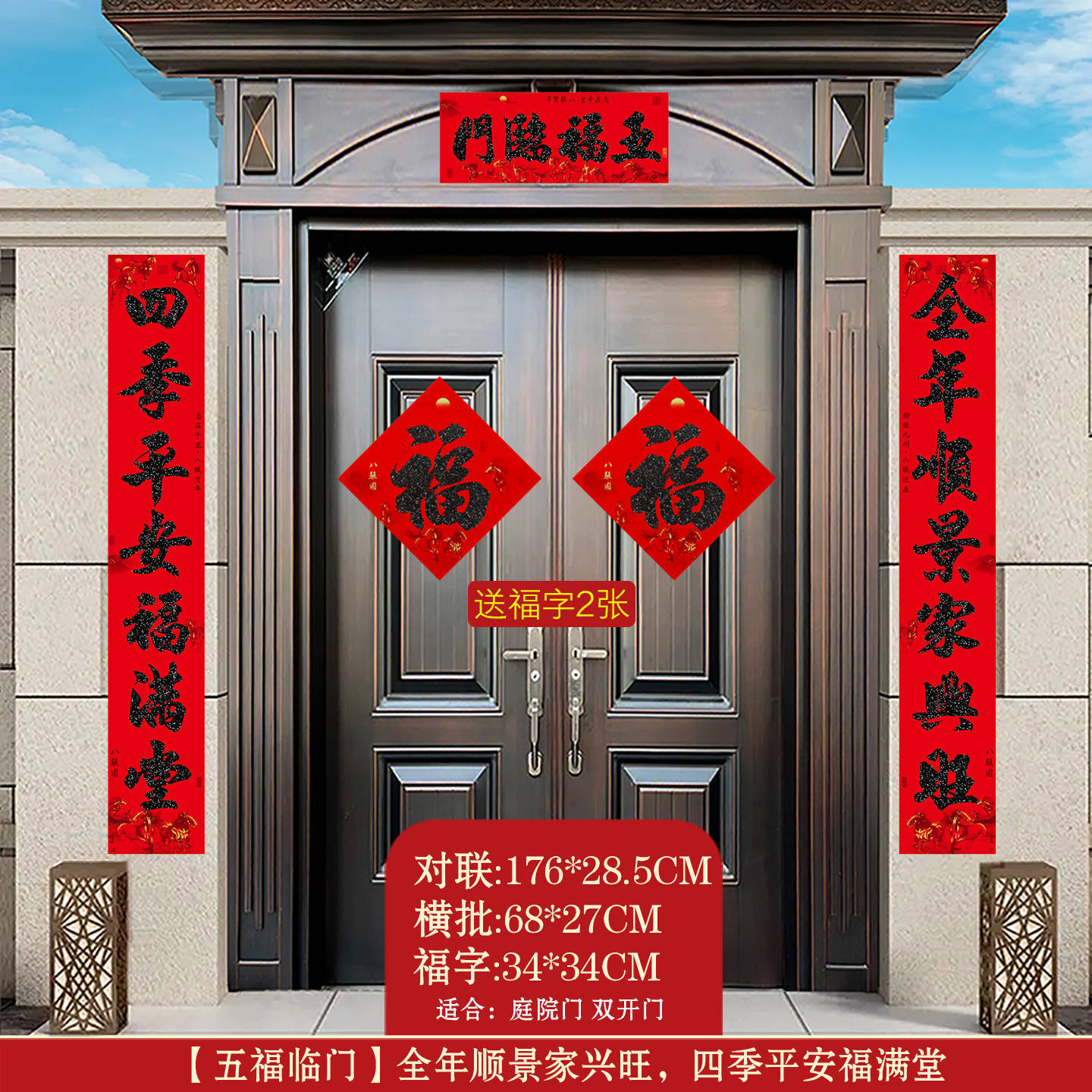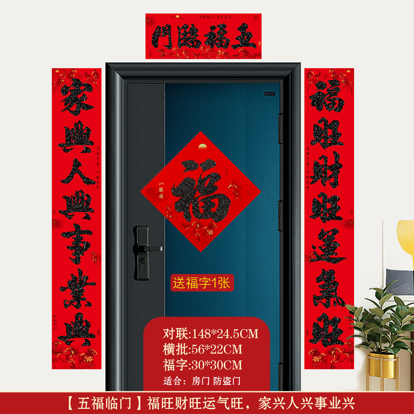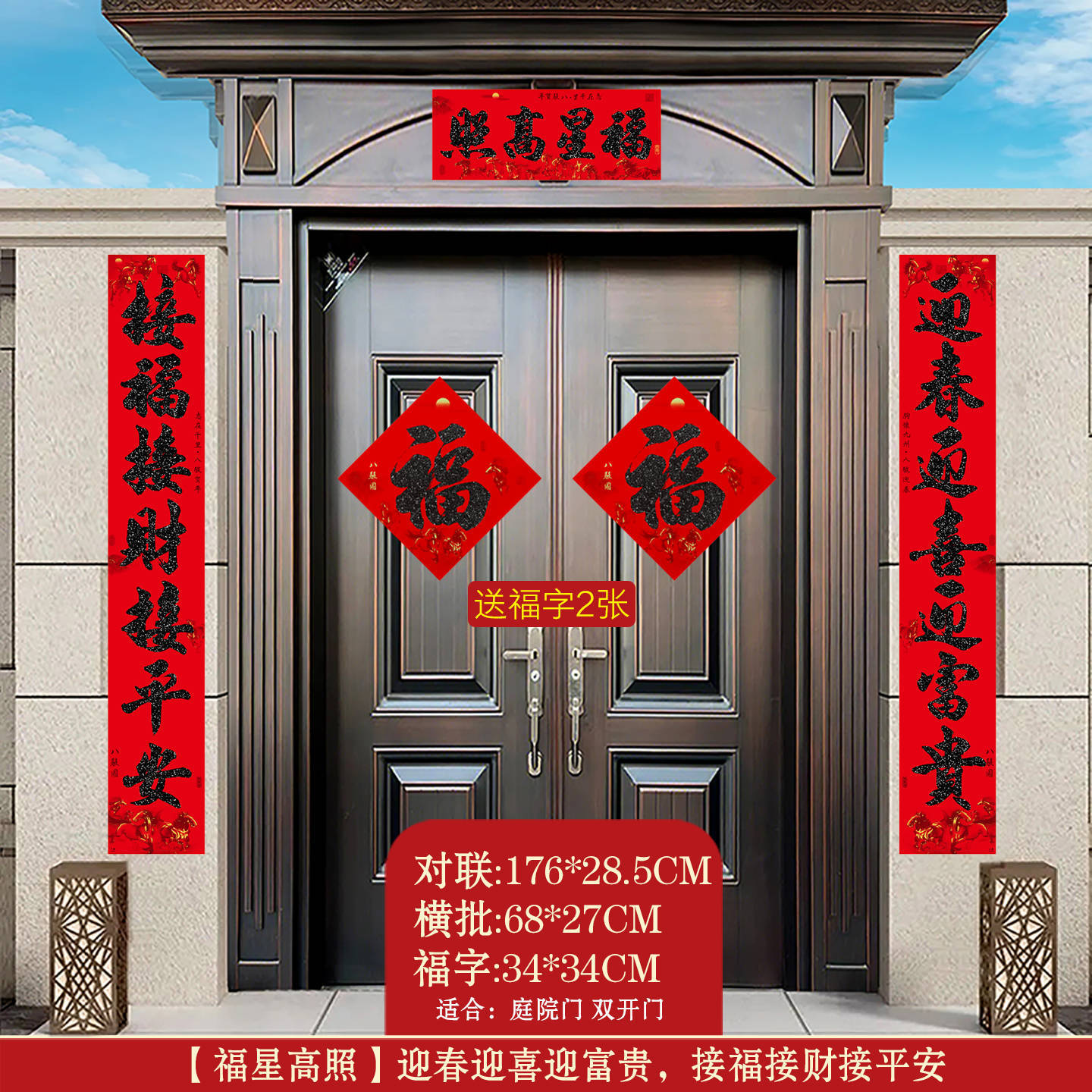 马年黑金粉字对联门贴全背胶入户门福字套装新年春节装饰自粘春联