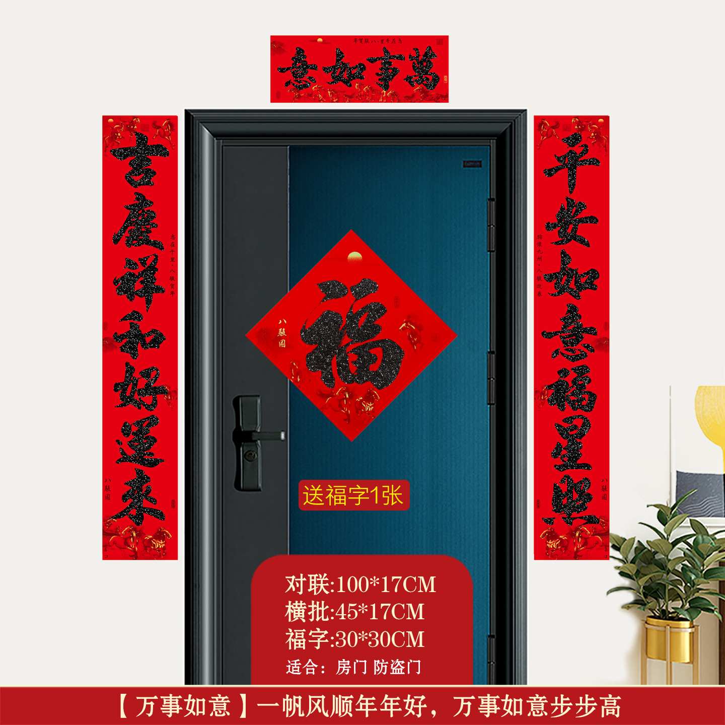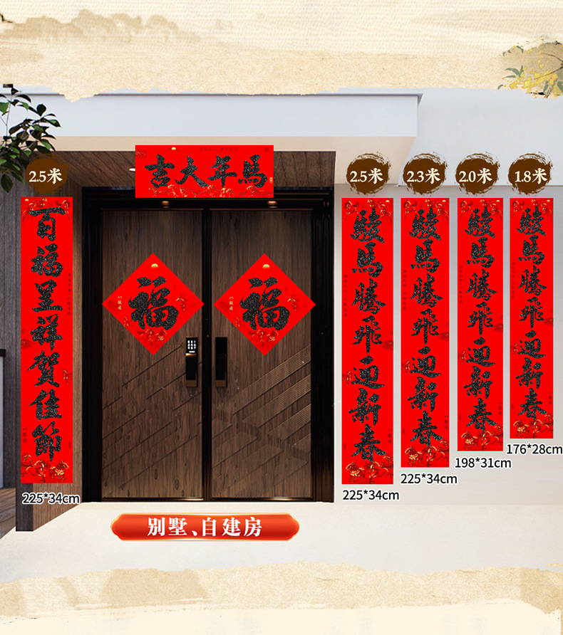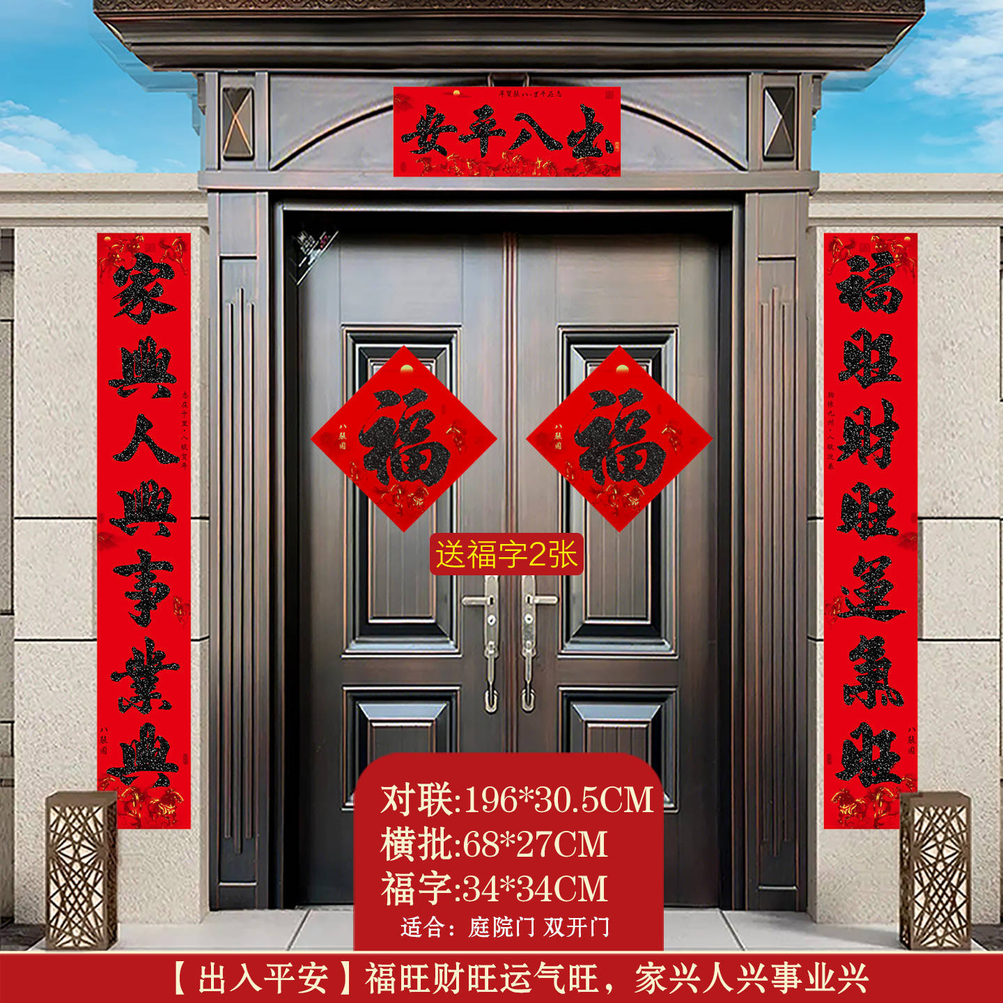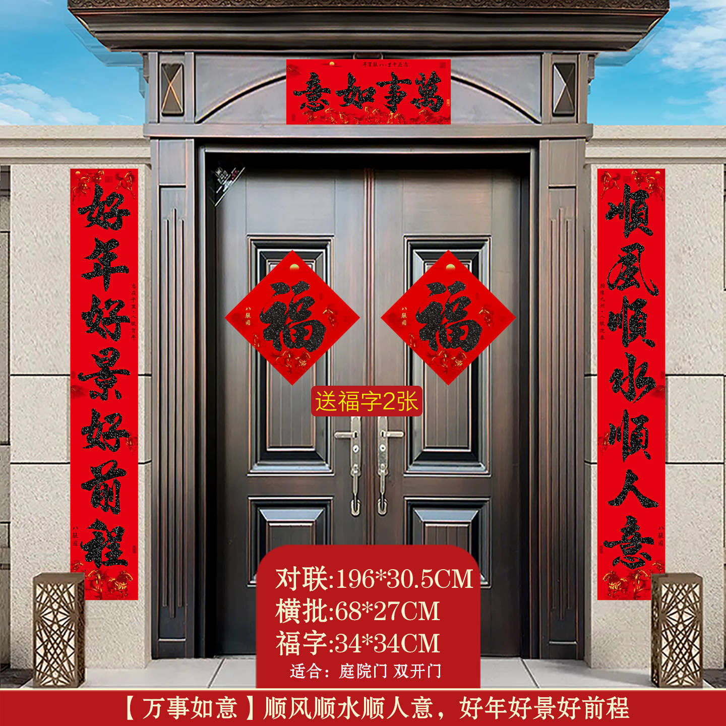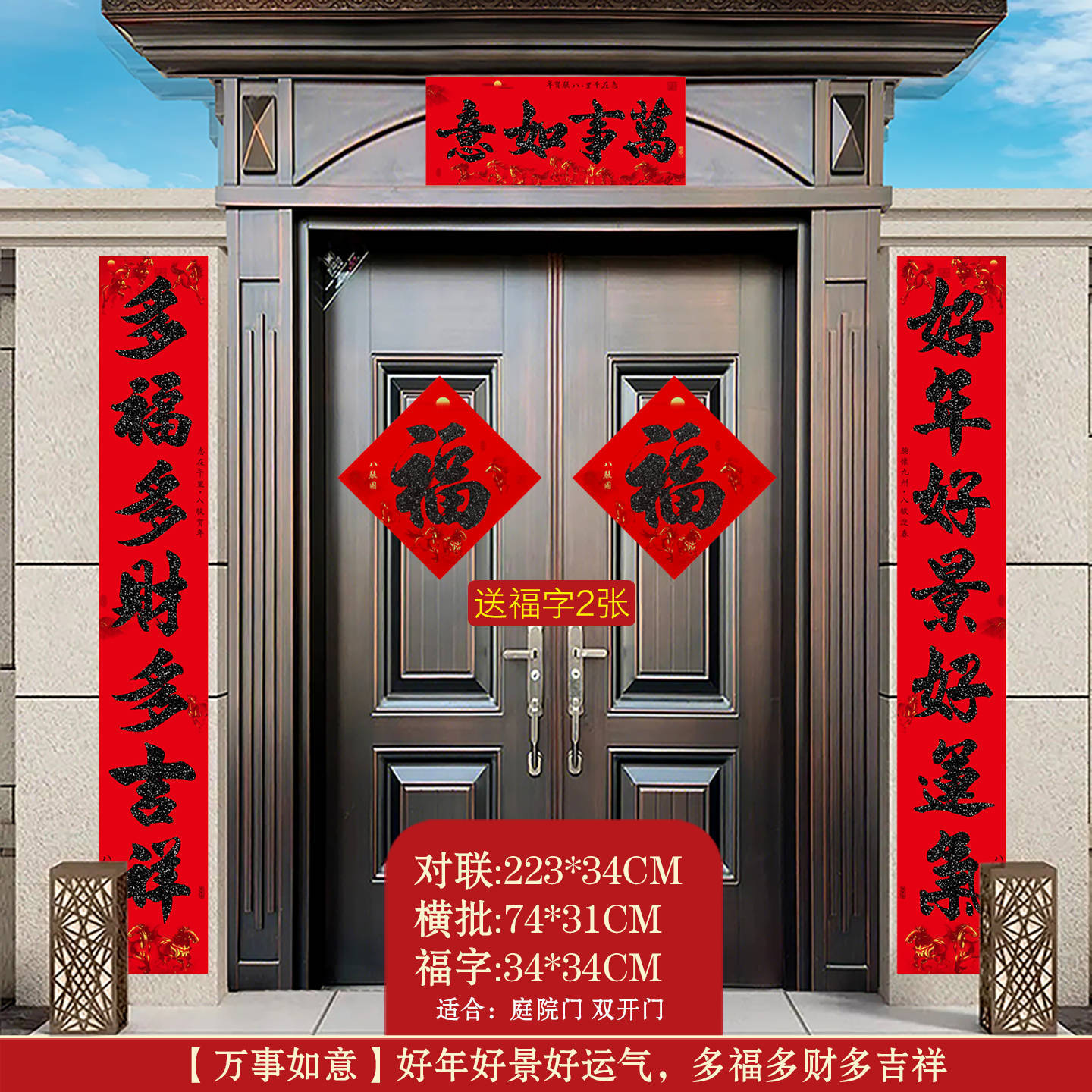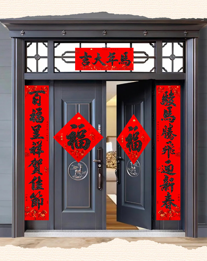 马年黑金粉字对联门贴全背胶入户门福字套装新年春节装饰自粘春联