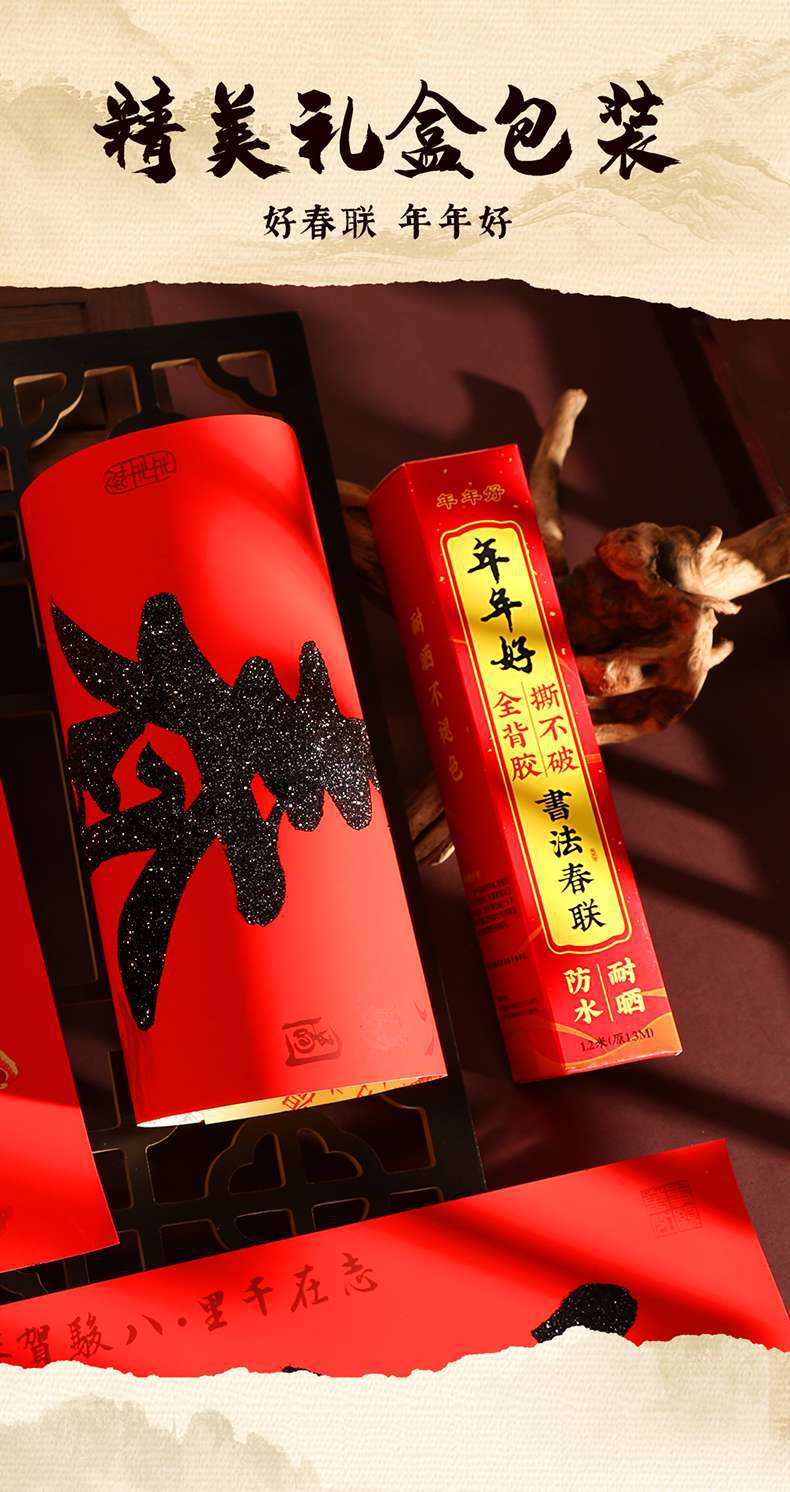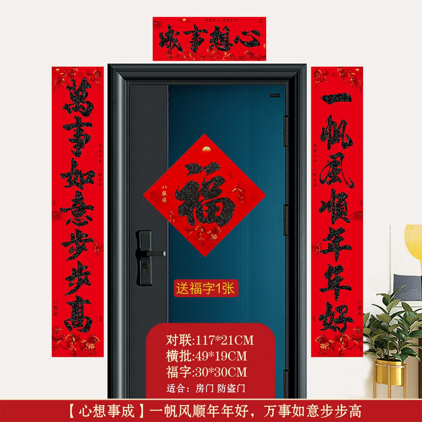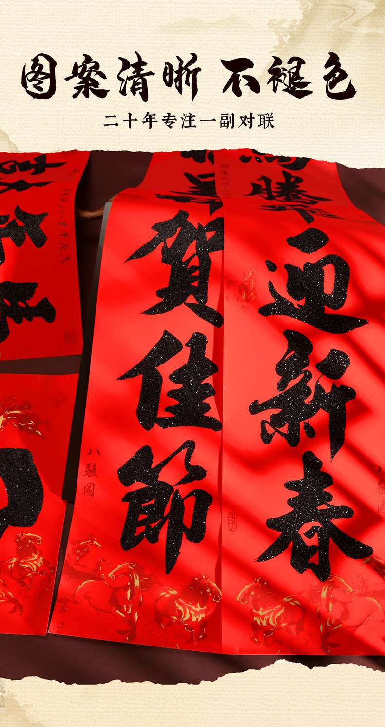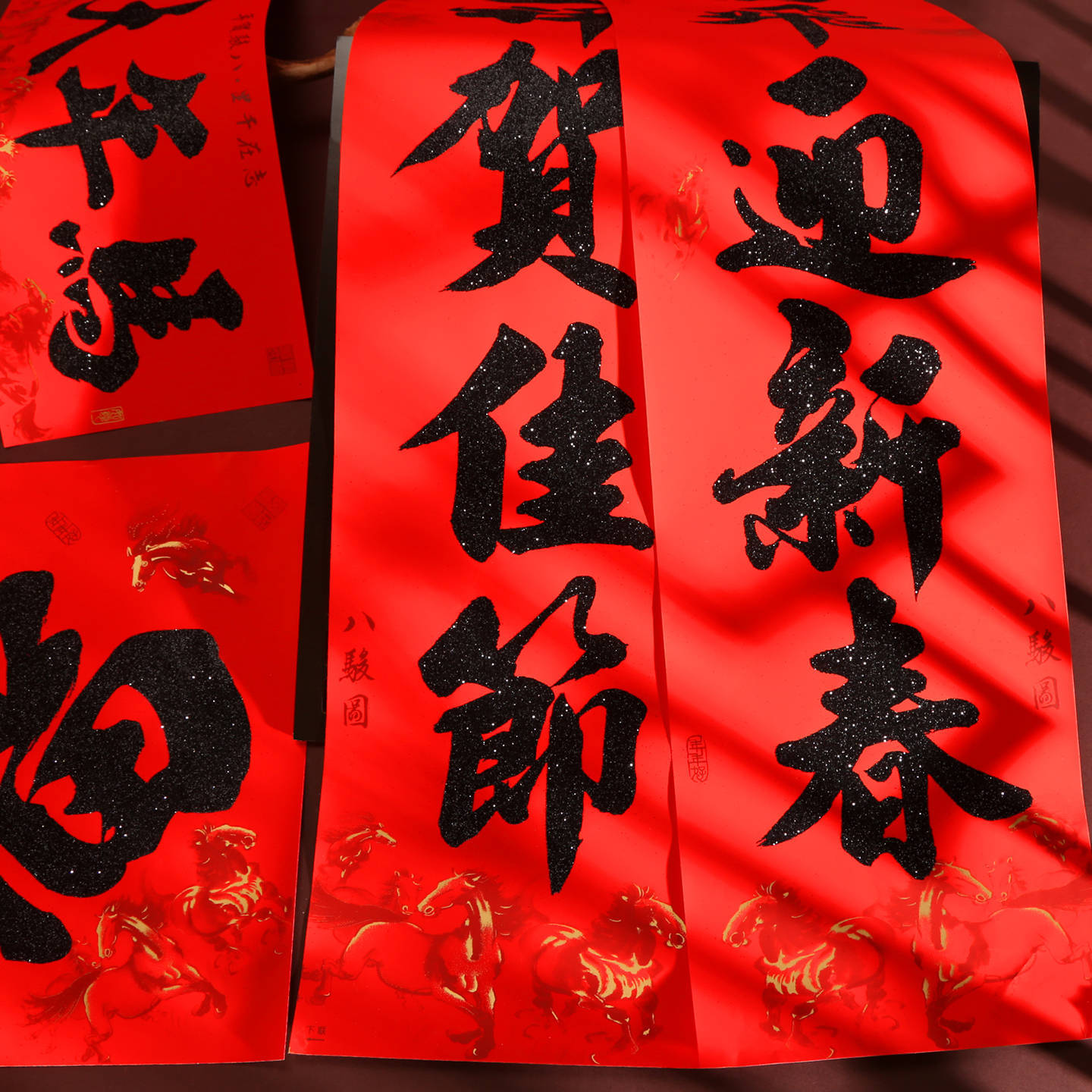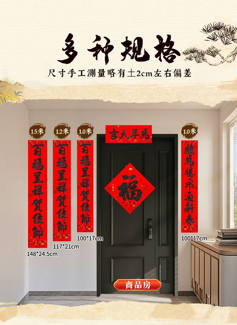 马年黑金粉字对联门贴全背胶入户门福字套装新年春节装饰自粘春联