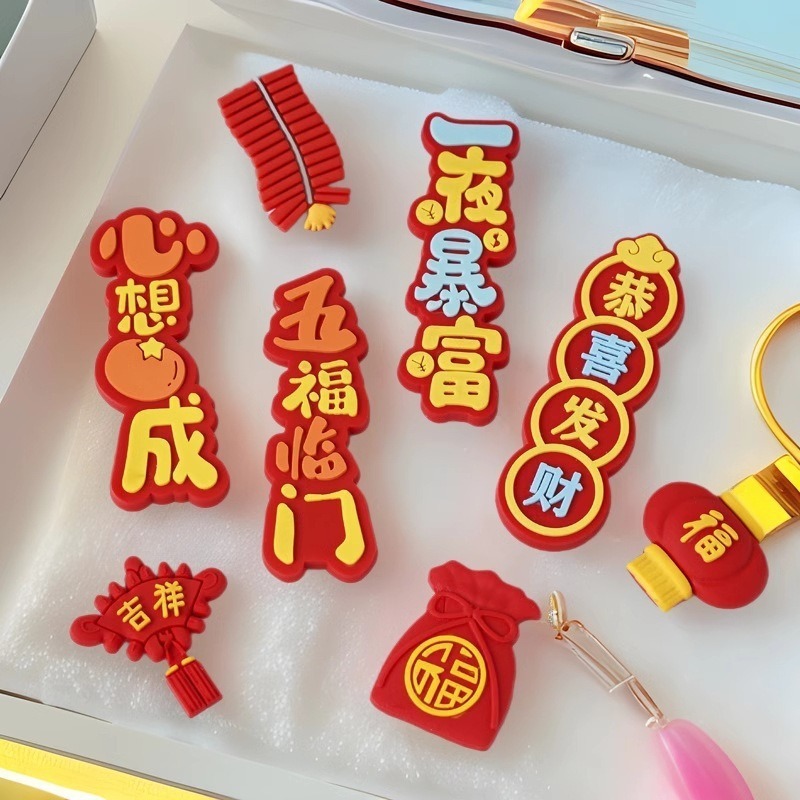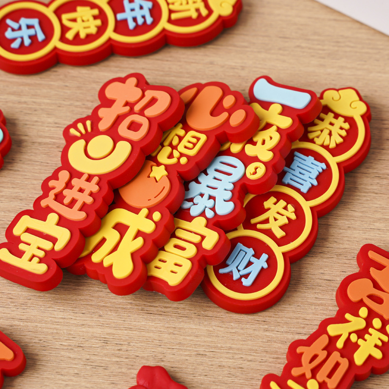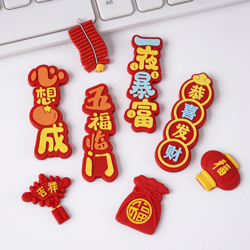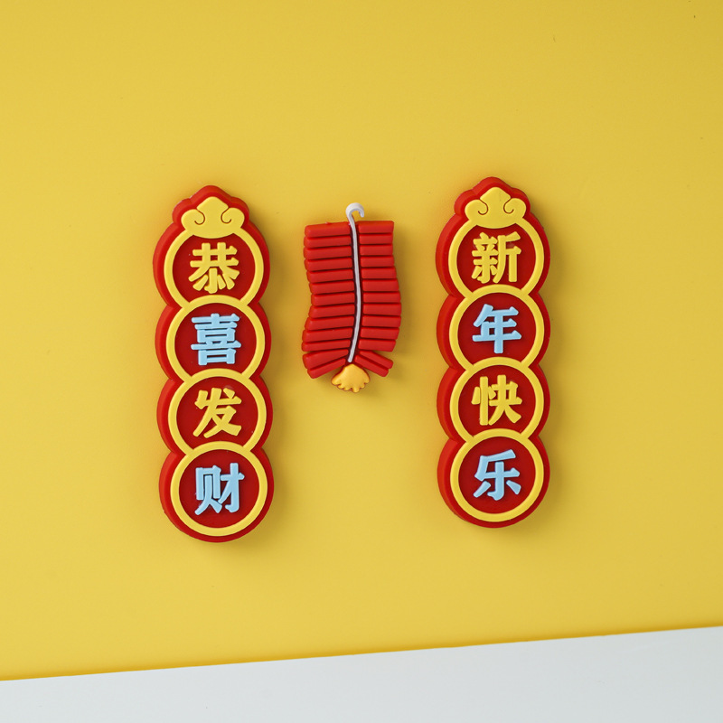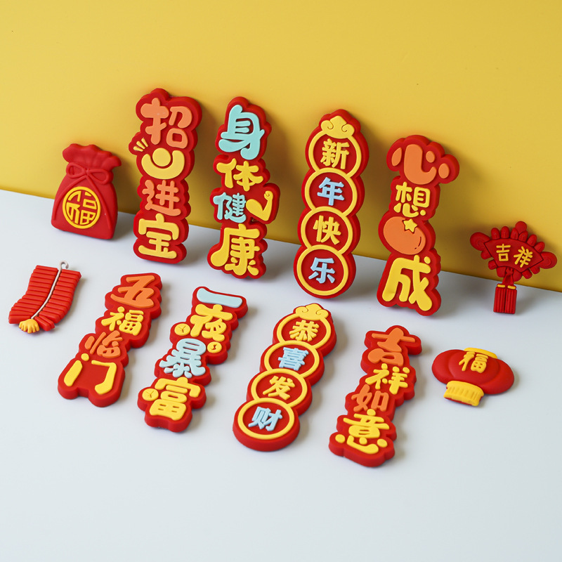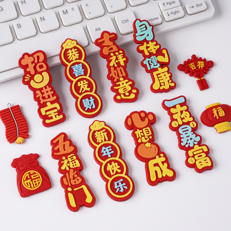 新年快乐吉祥如意恭喜发财软胶祝福贴片软磁磁吸冰箱贴对联装饰