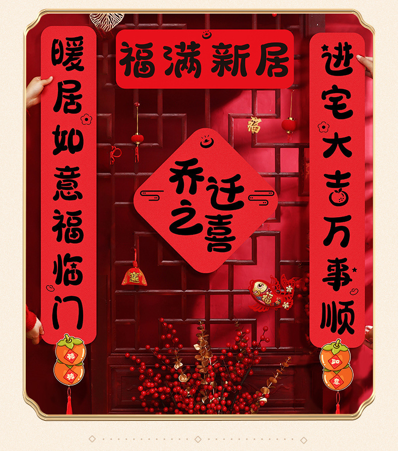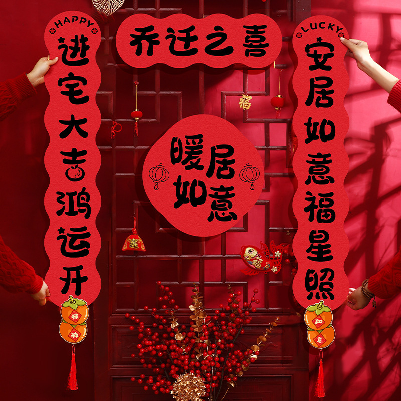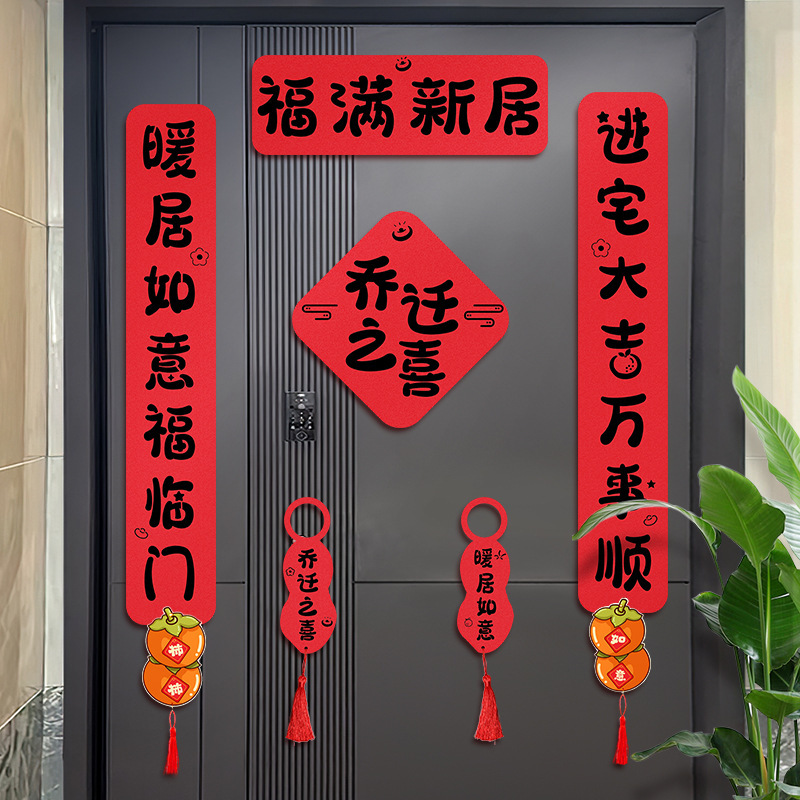 乔迁之喜加厚双层哈哈哈毛毡对联搬家仪式氛围装饰入宅磁吸门贴