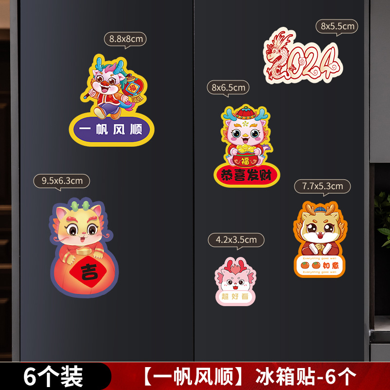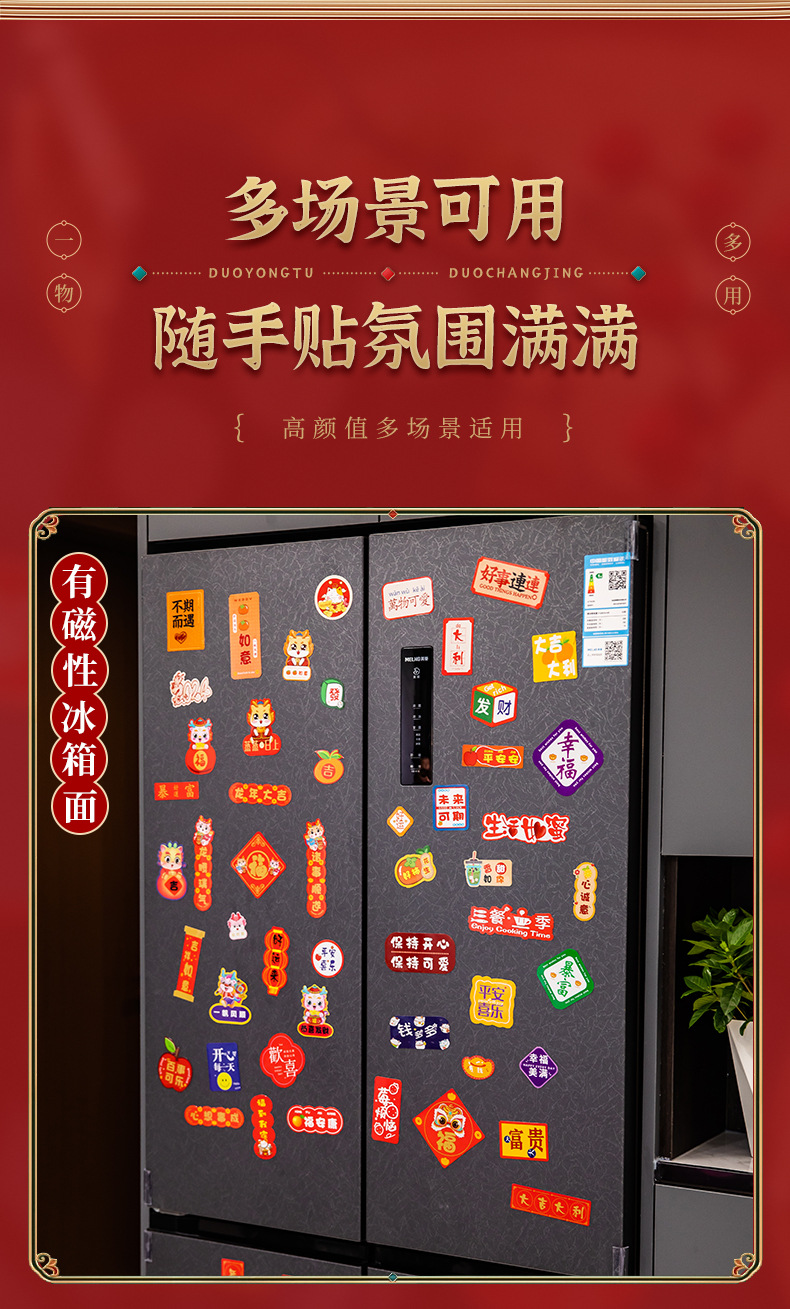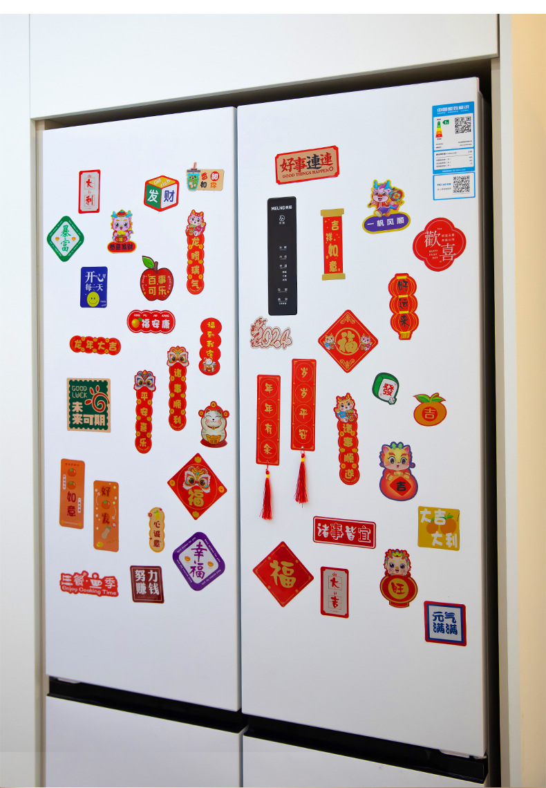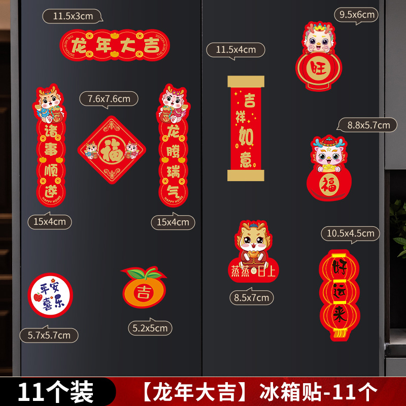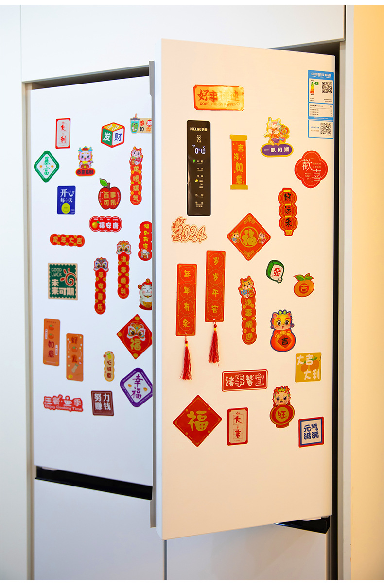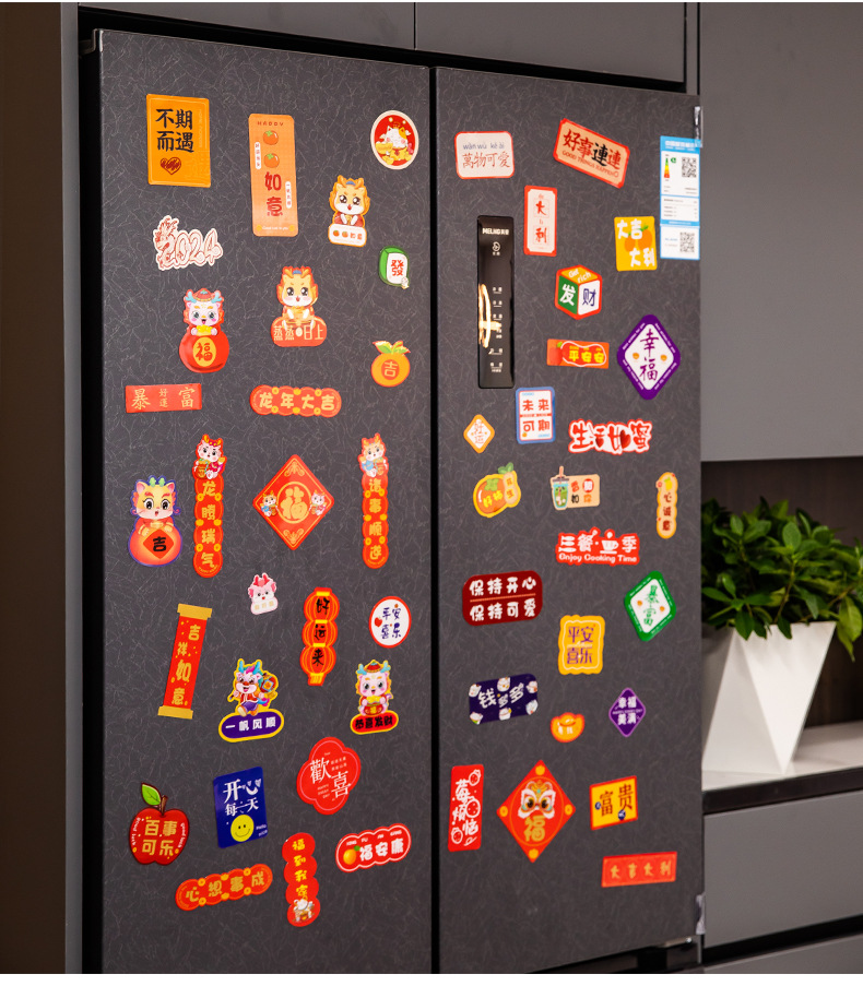 2024新年龙年过年冰箱贴磁贴片喜庆创意装饰卡通平安喜乐磁吸对联