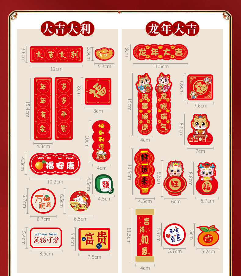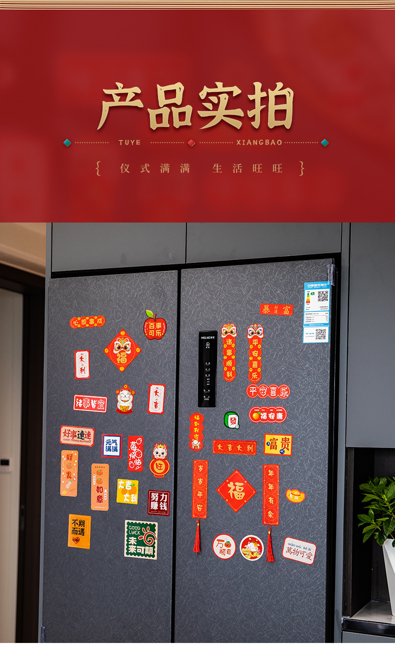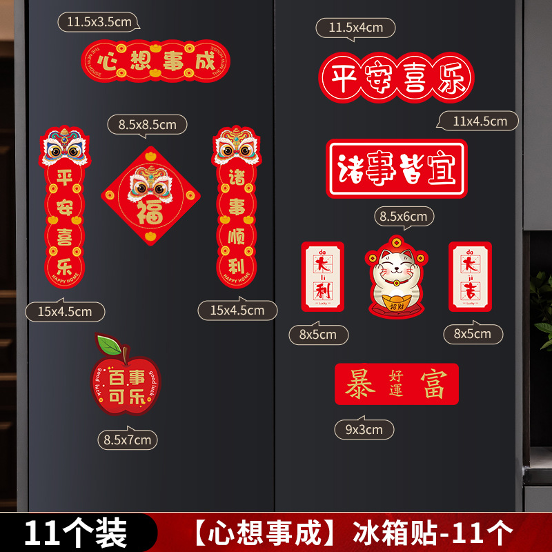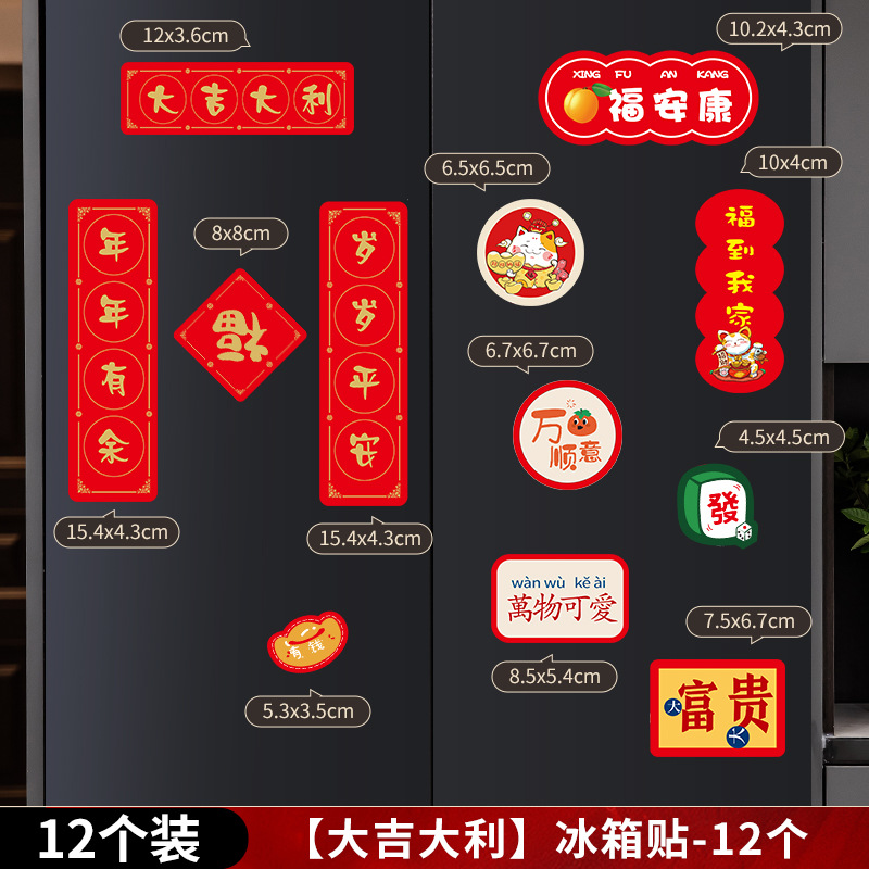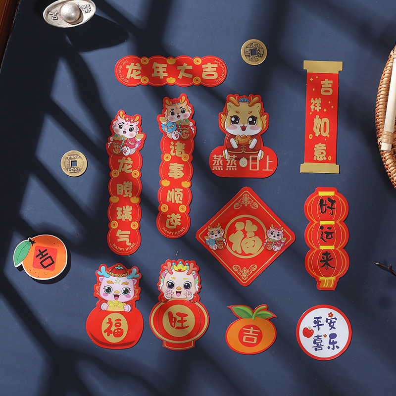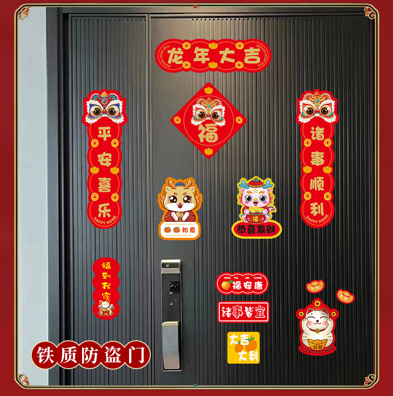 2024新年龙年过年冰箱贴磁贴片喜庆创意装饰卡通平安喜乐磁吸对联