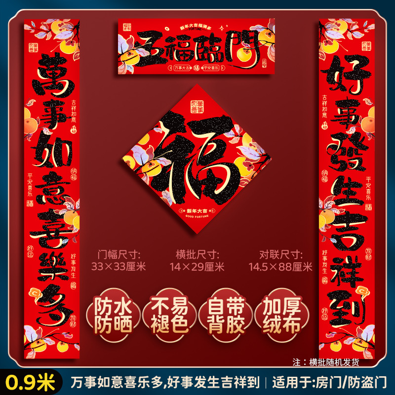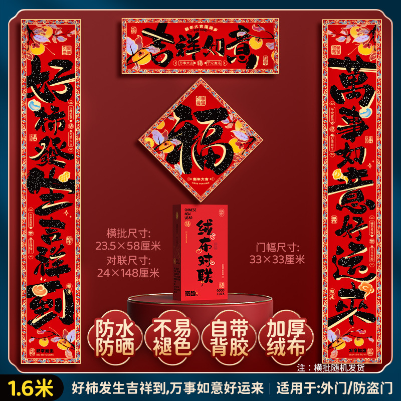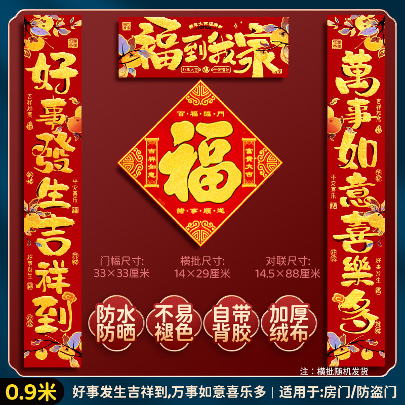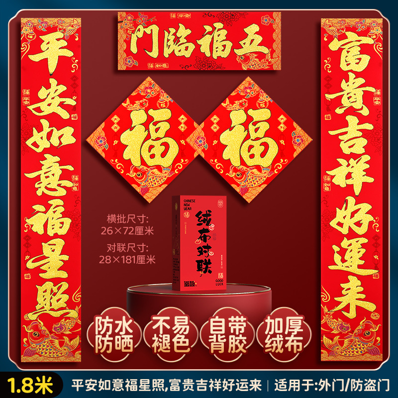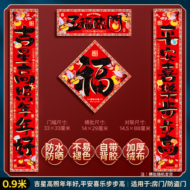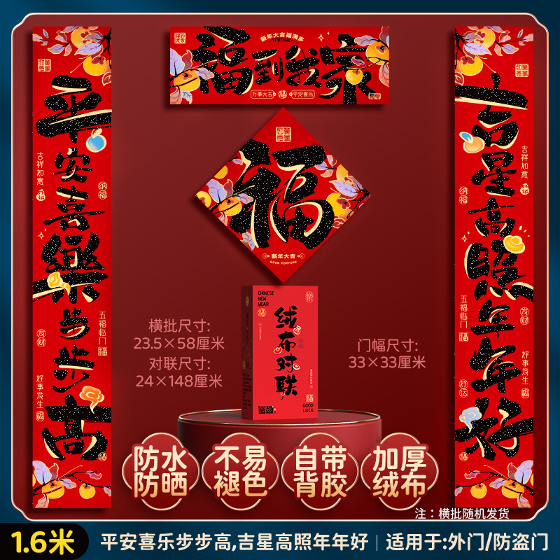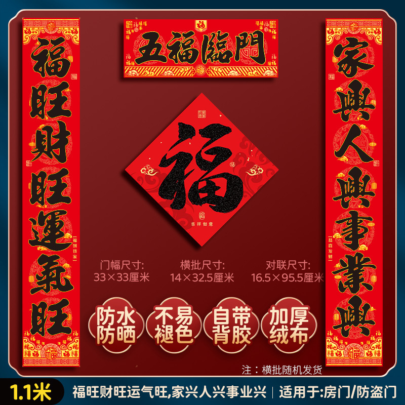 | 含福字门贴-【自带背胶/绒布对联】 | USD $1.2 | 9999 piece available |