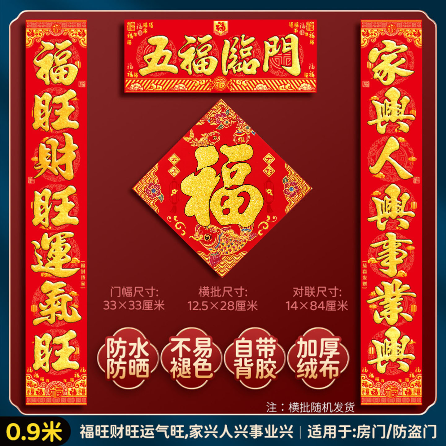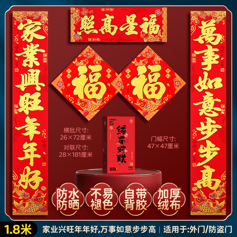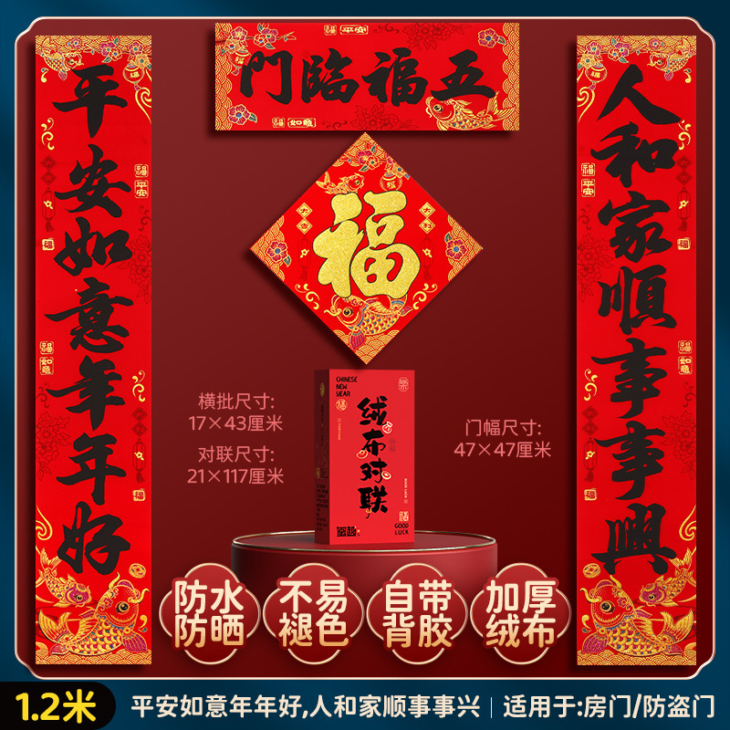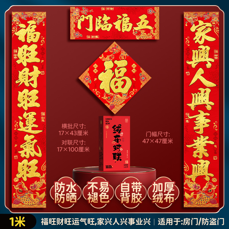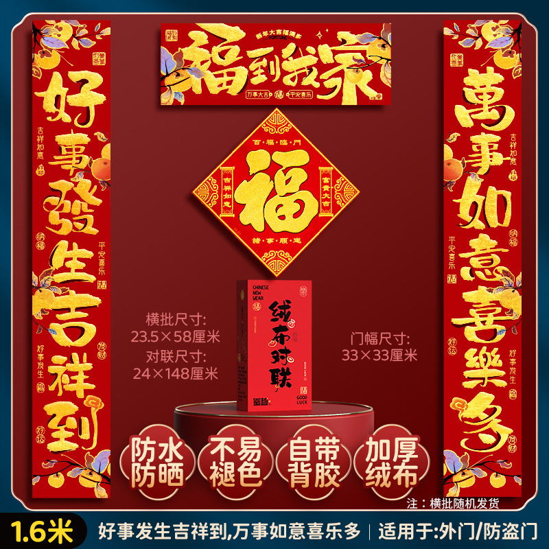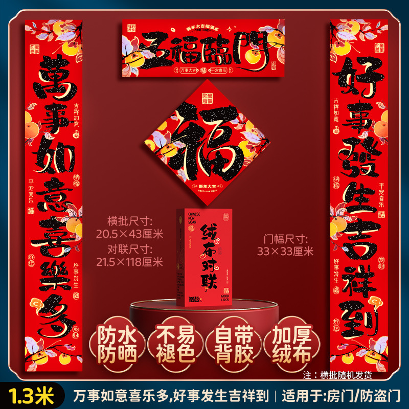 | 含福字门贴-【自带背胶/绒布对联】 | USD $1.2 | 9999 piece available |