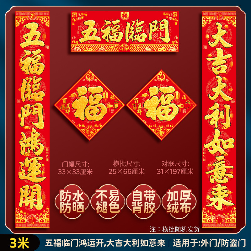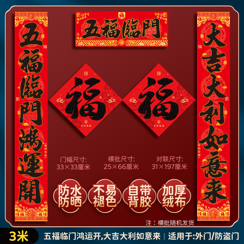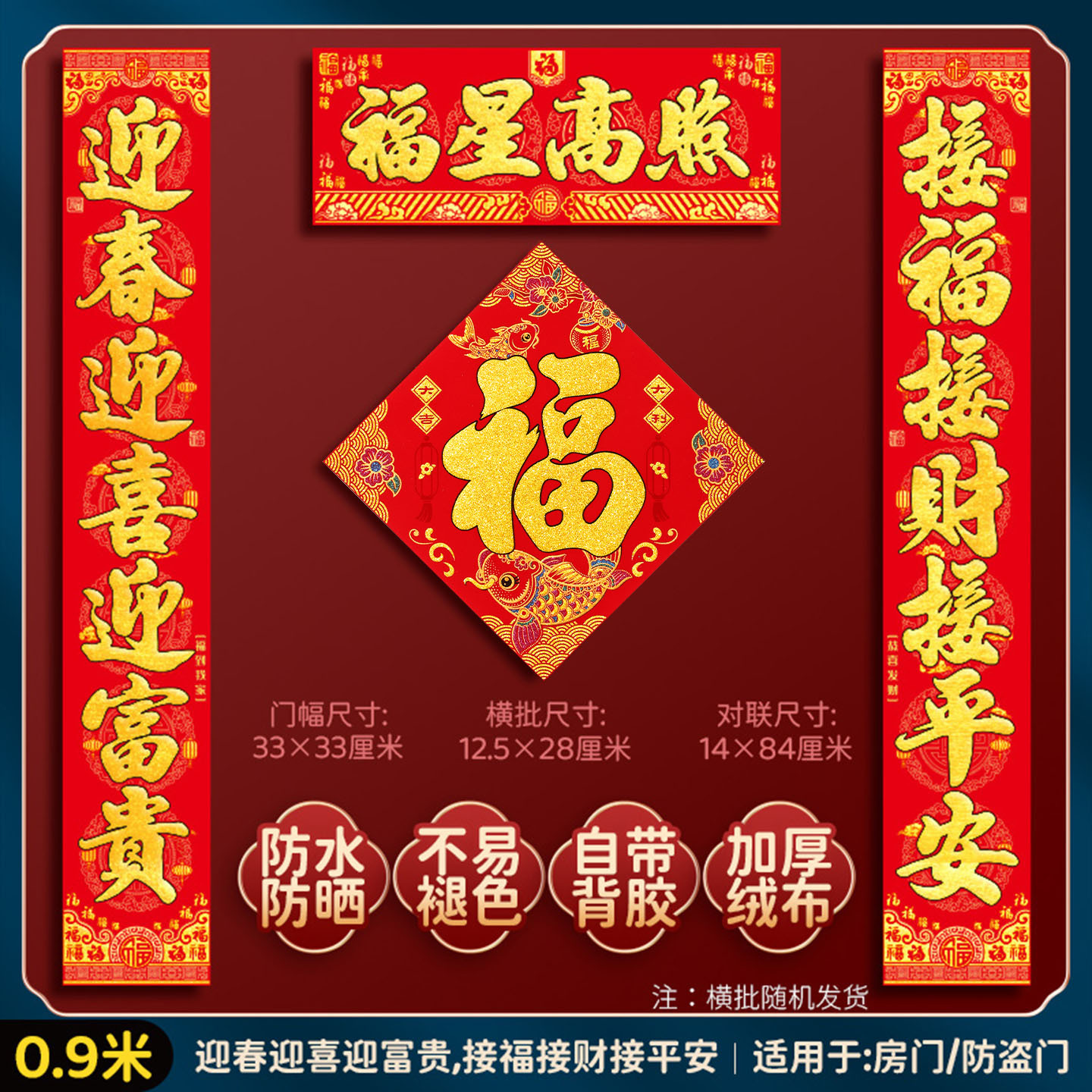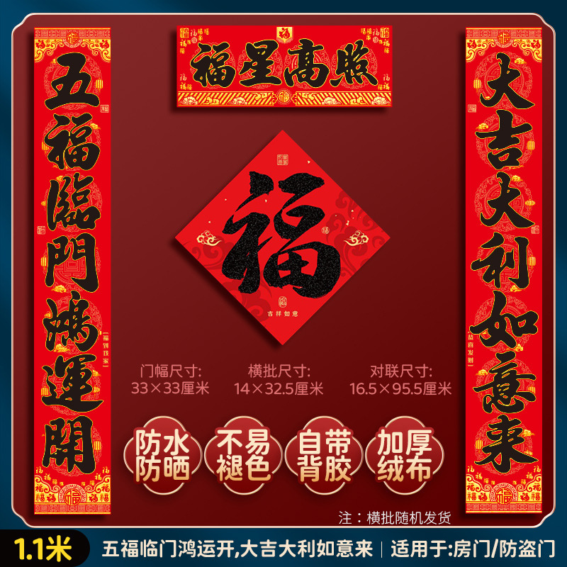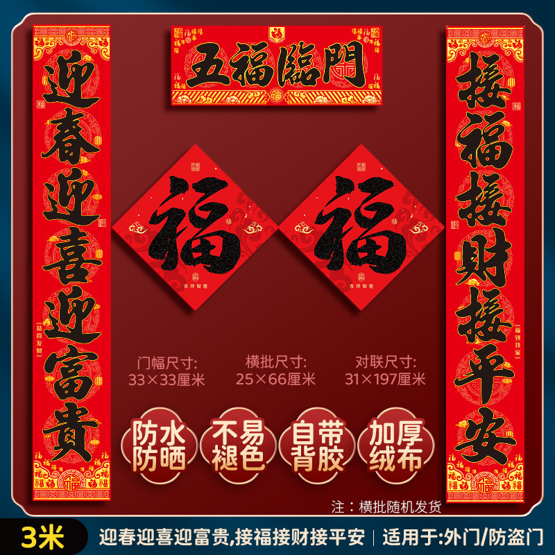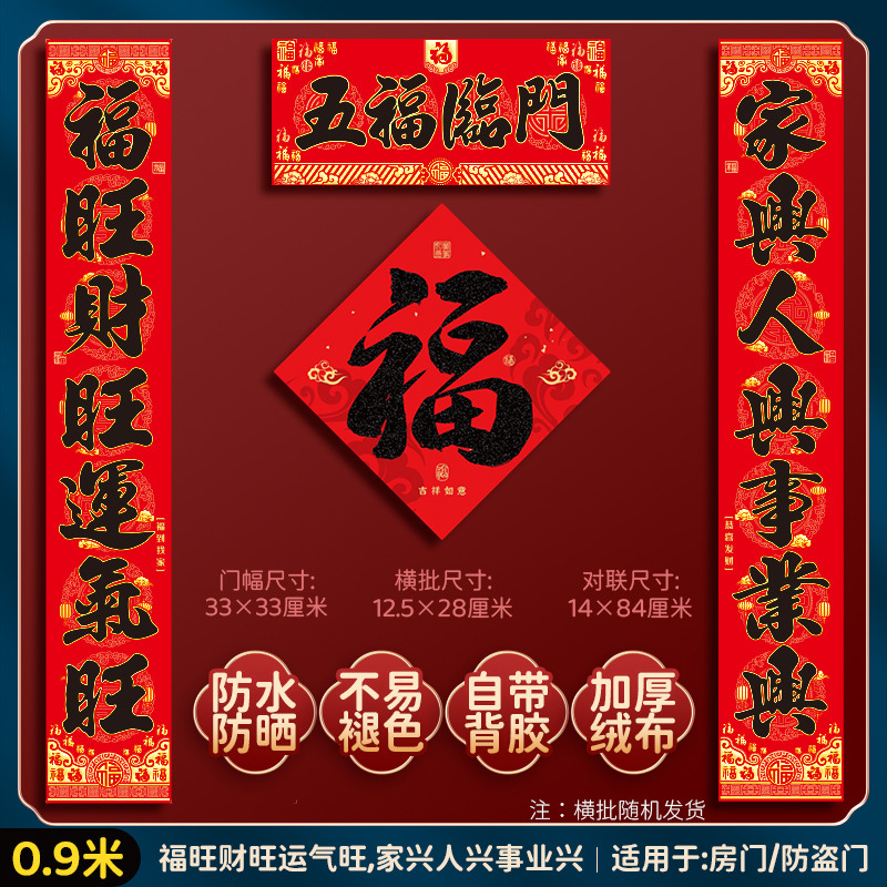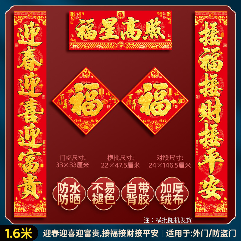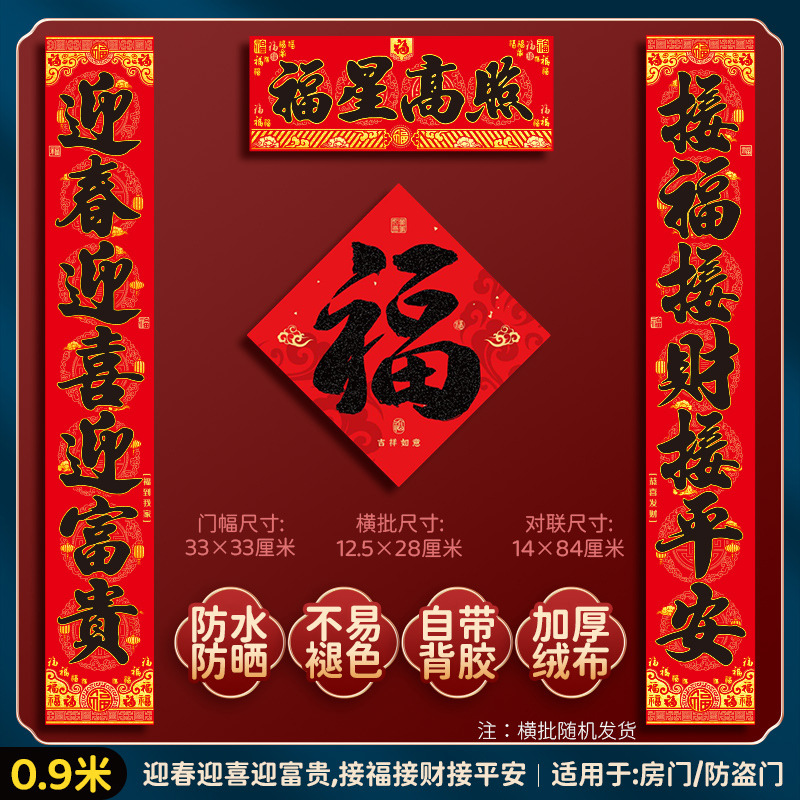 | 含福字门贴-【自带背胶/绒布对联】 | USD $1.7 | 9999 piece available |