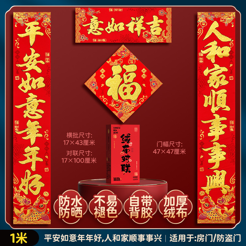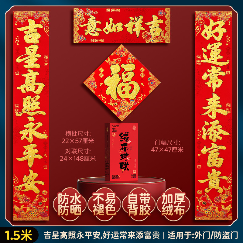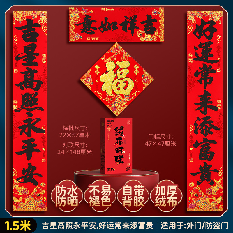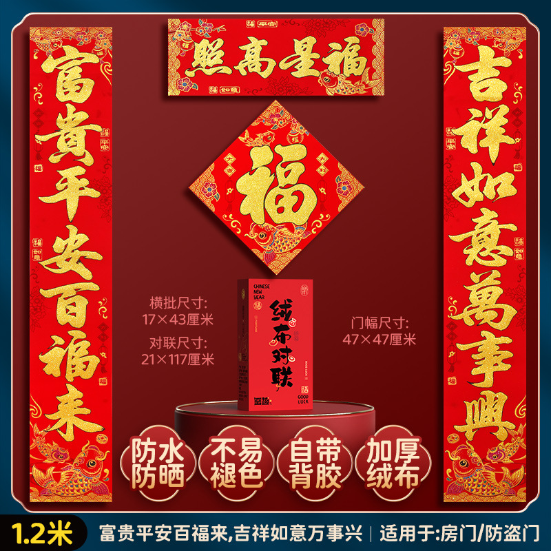 | 不含福字门贴-【自带背胶/绒布对联】 | USD $1.16 | 9997 piece available |