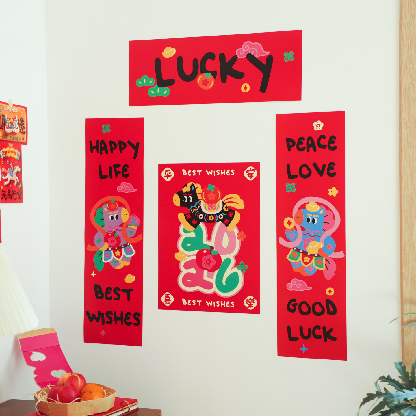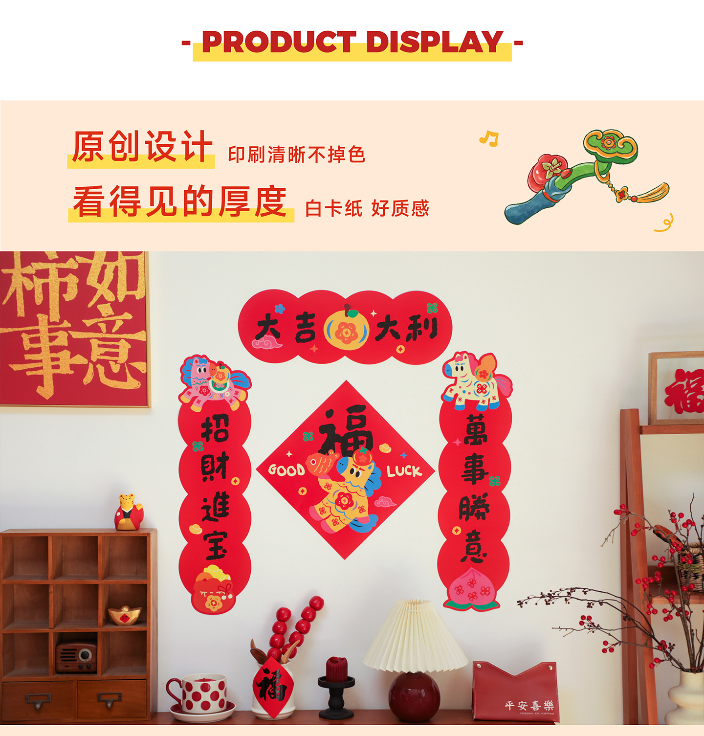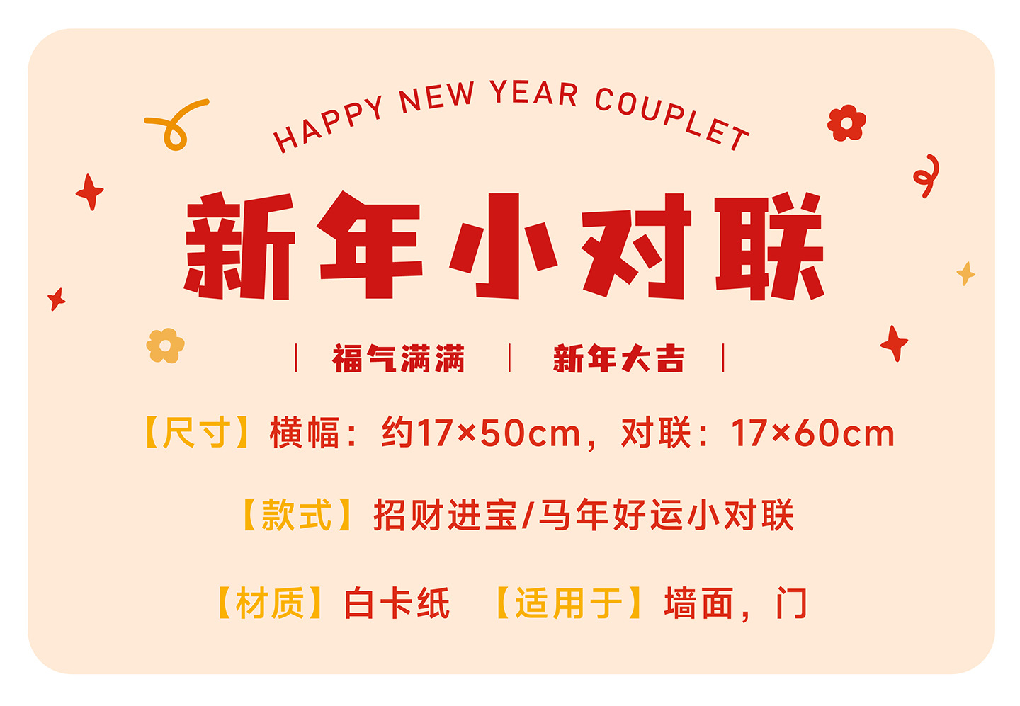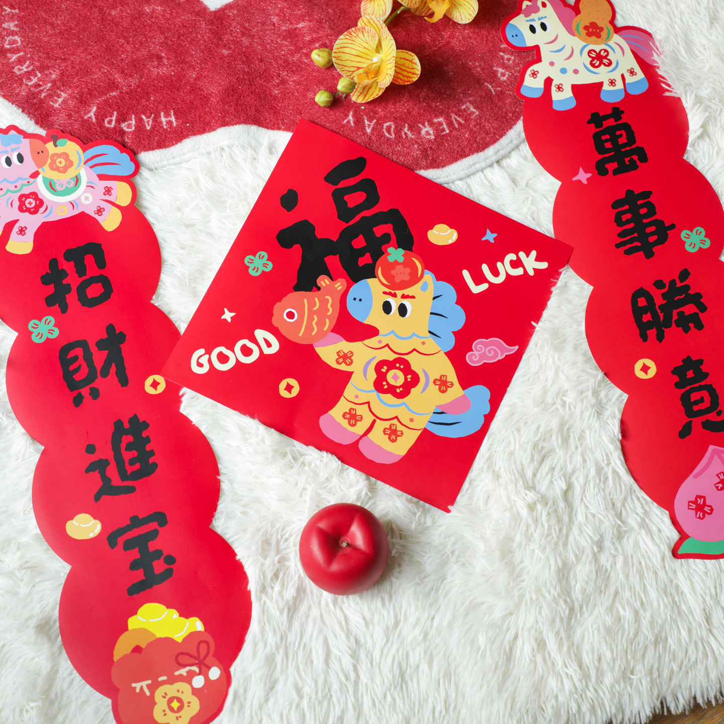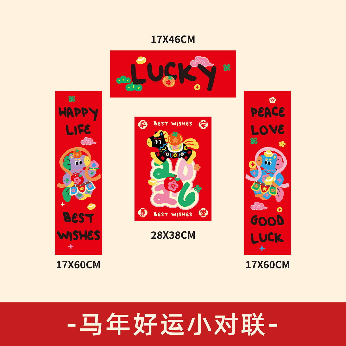 马年小对联新年春节装饰门贴卡通可爱小马创意纸质对联小号福字贴