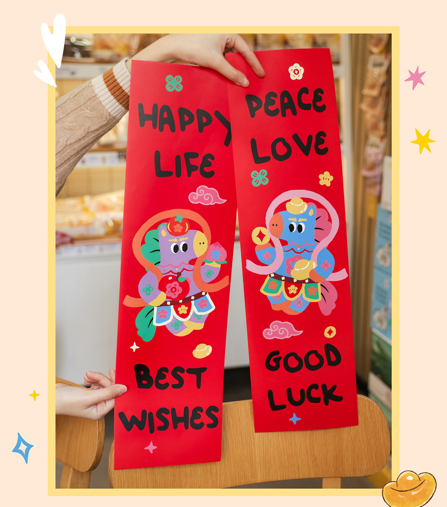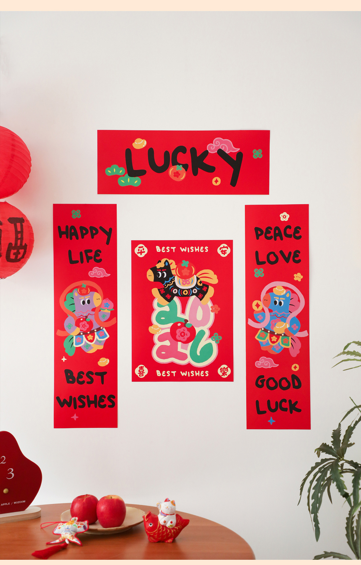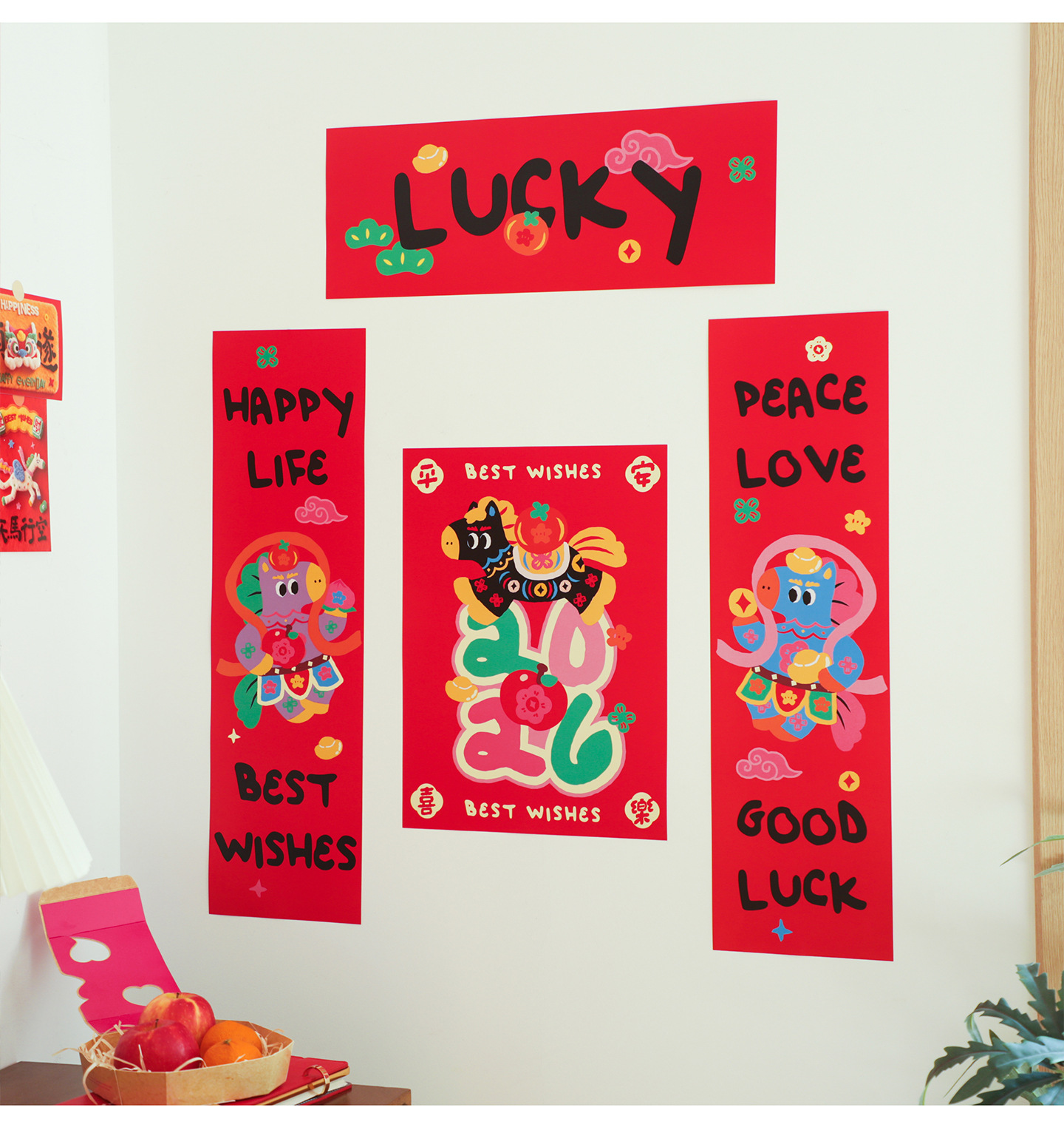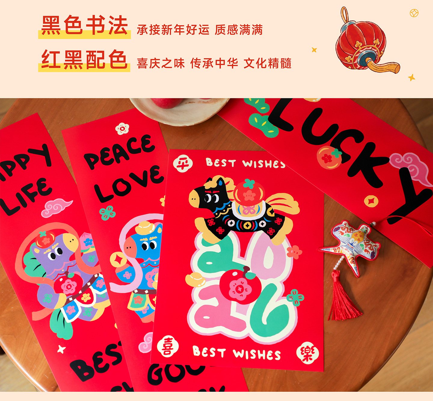 马年小对联新年春节装饰门贴卡通可爱小马创意纸质对联小号福字贴