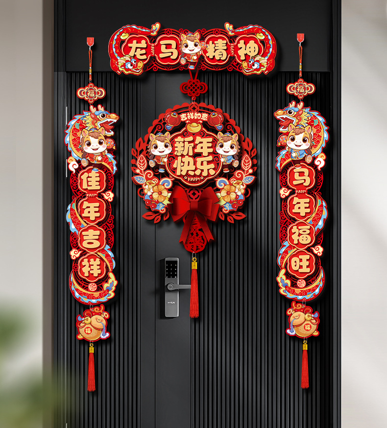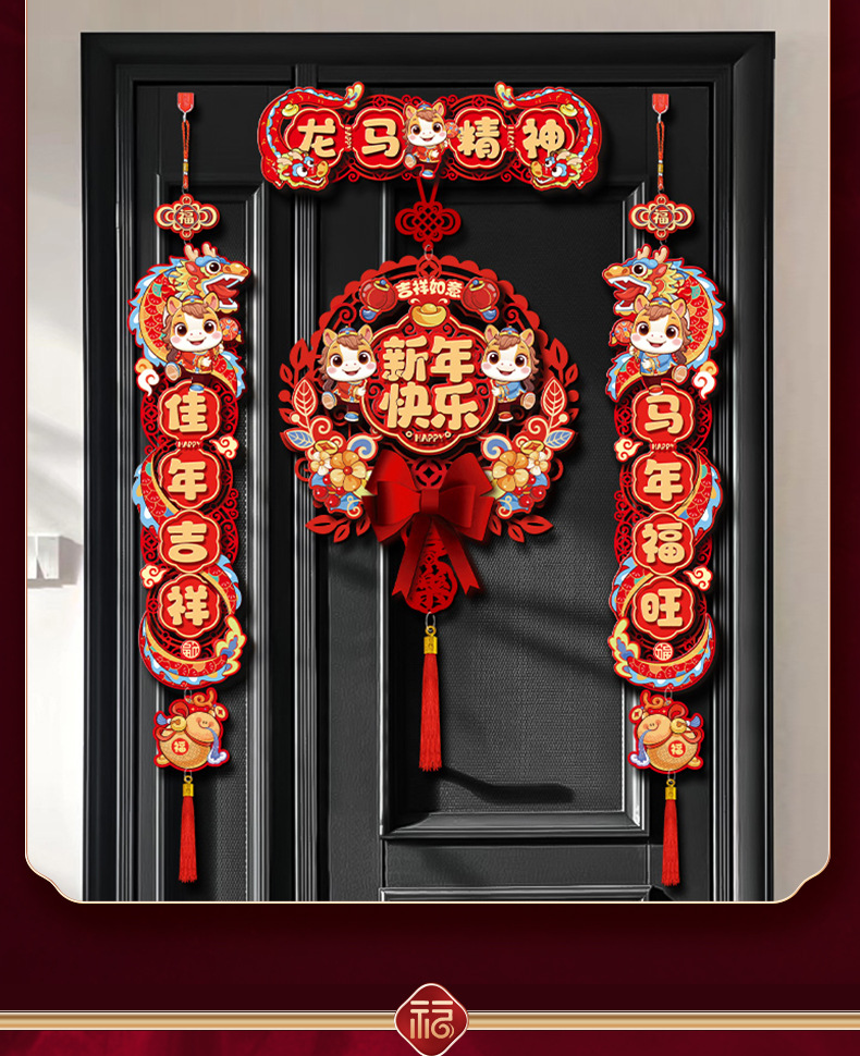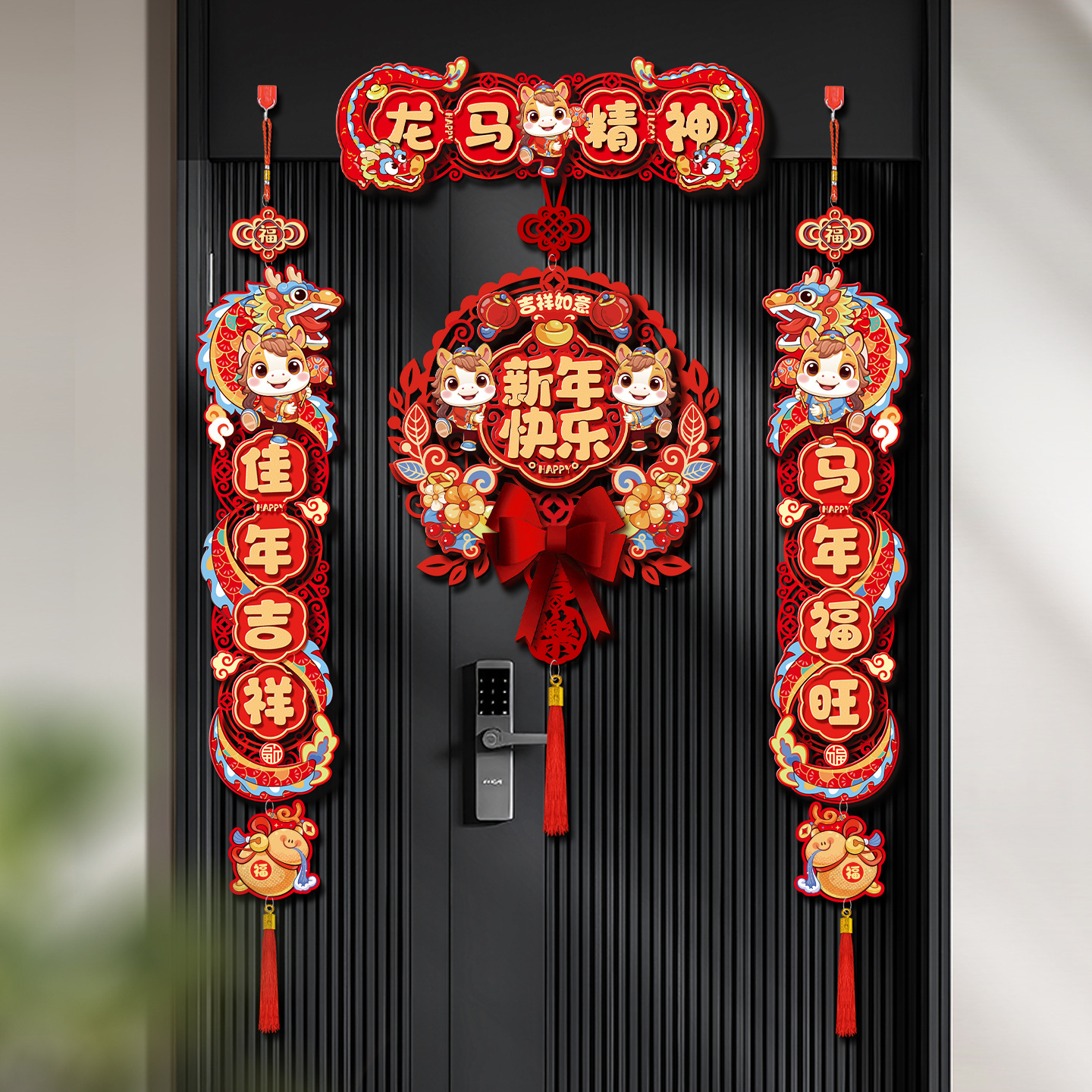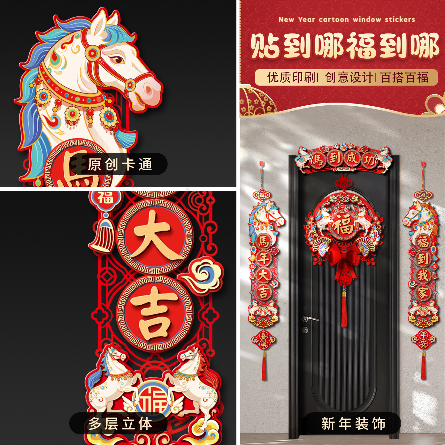 2026新款春节新年对联过年入户门布置马年春联毛毡磁吸装饰福字贴