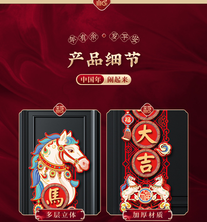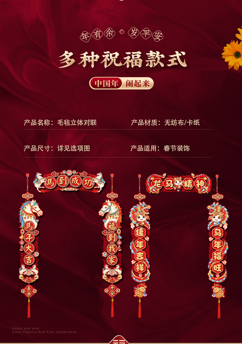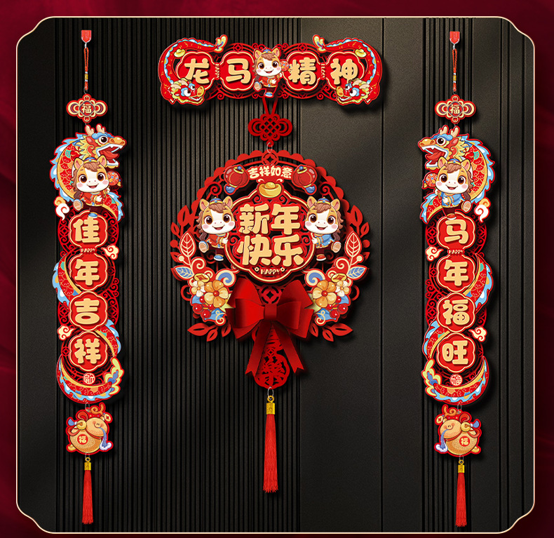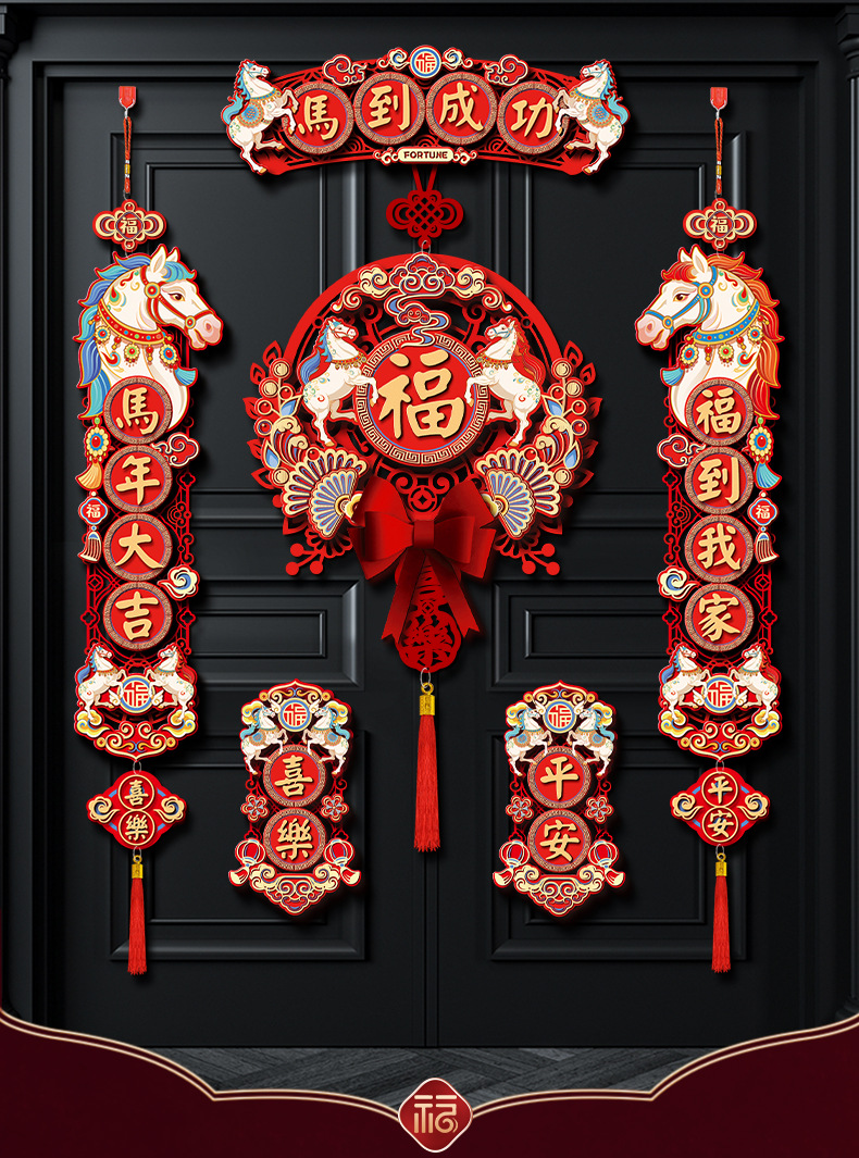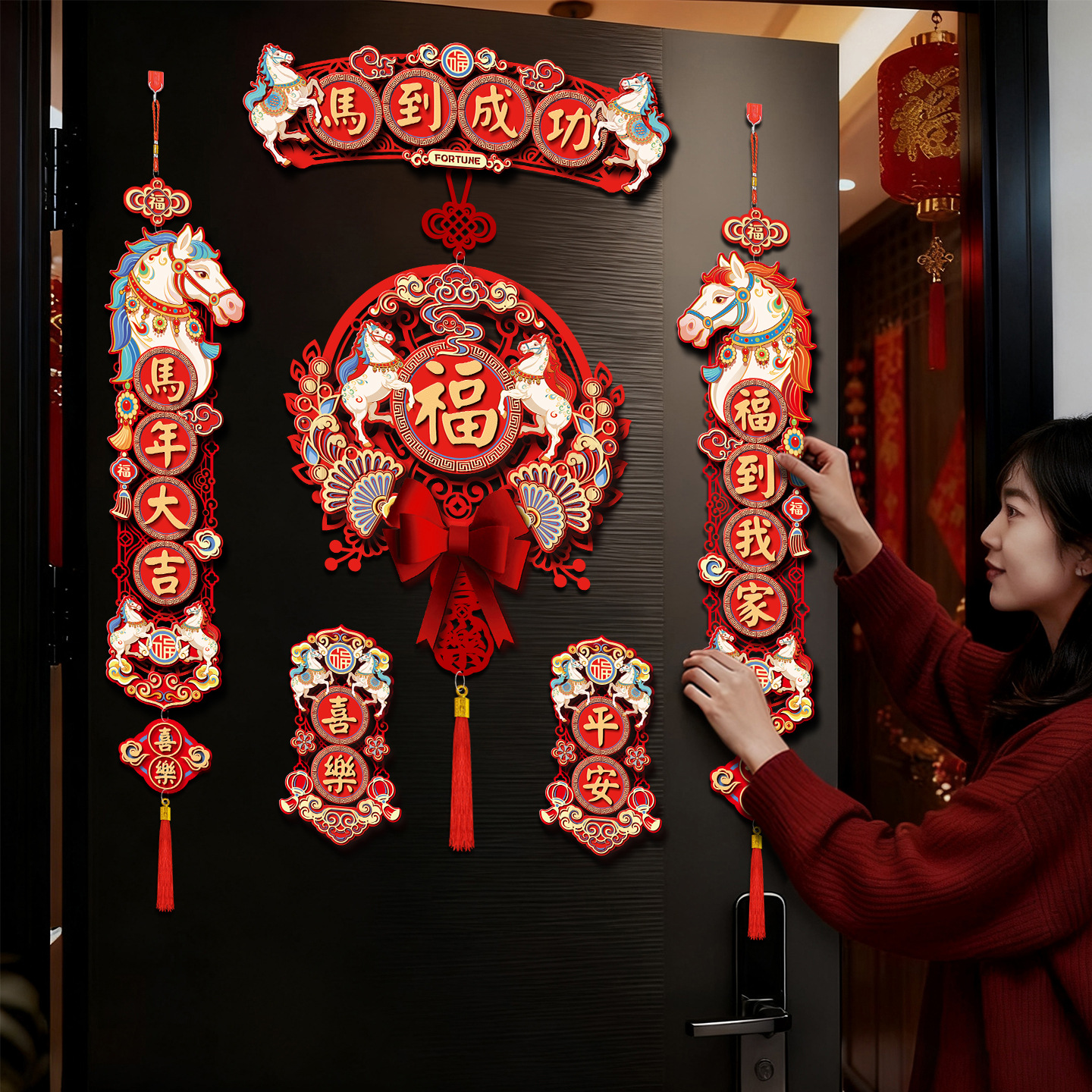 2026新款春节新年对联过年入户门布置马年春联毛毡磁吸装饰福字贴
