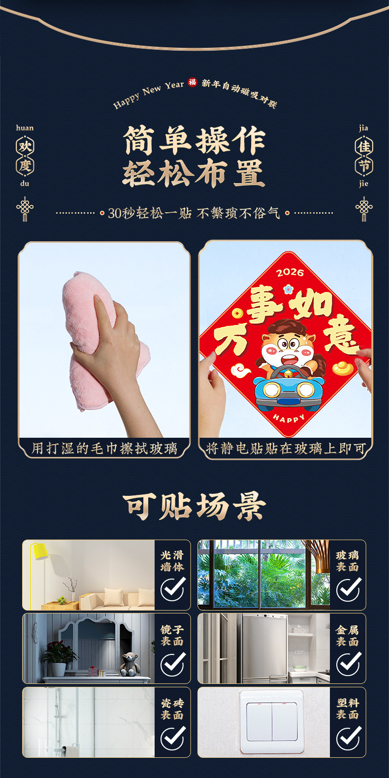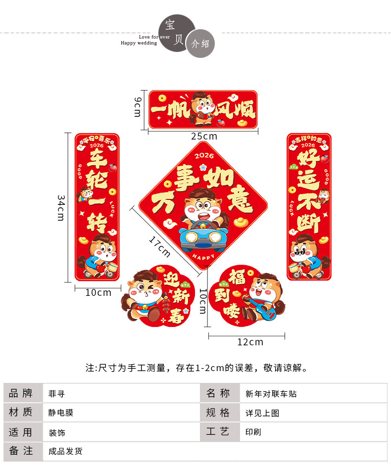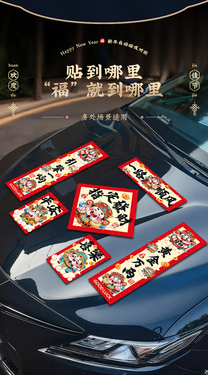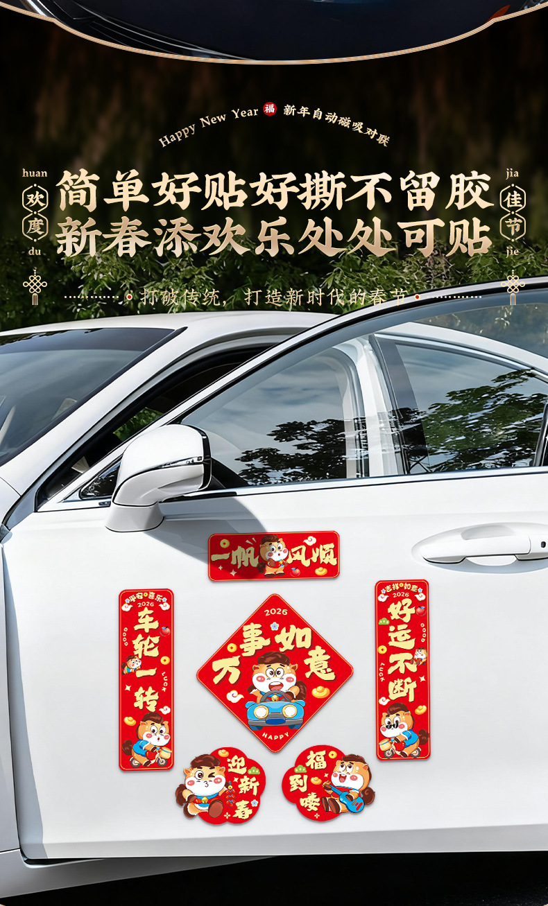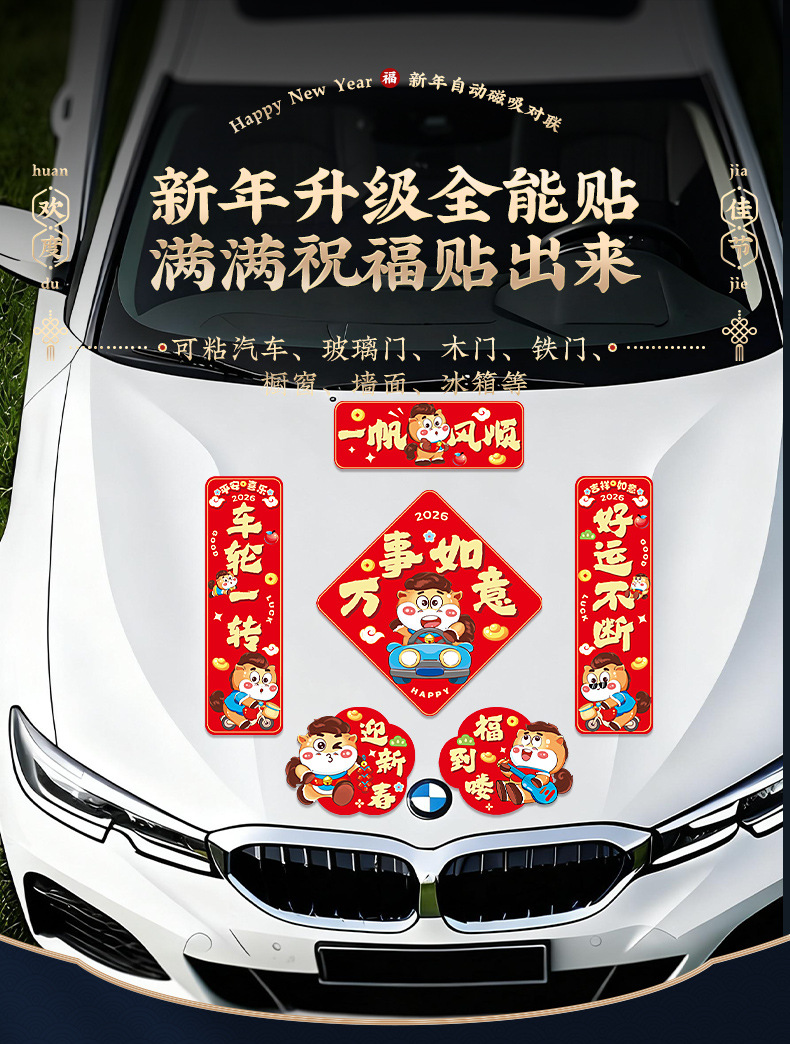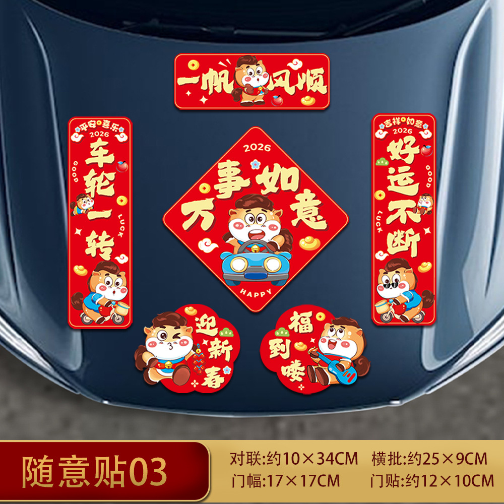 2026马年迷你车对联车用随意贴车贴小春联出入平安春节过年汽车贴