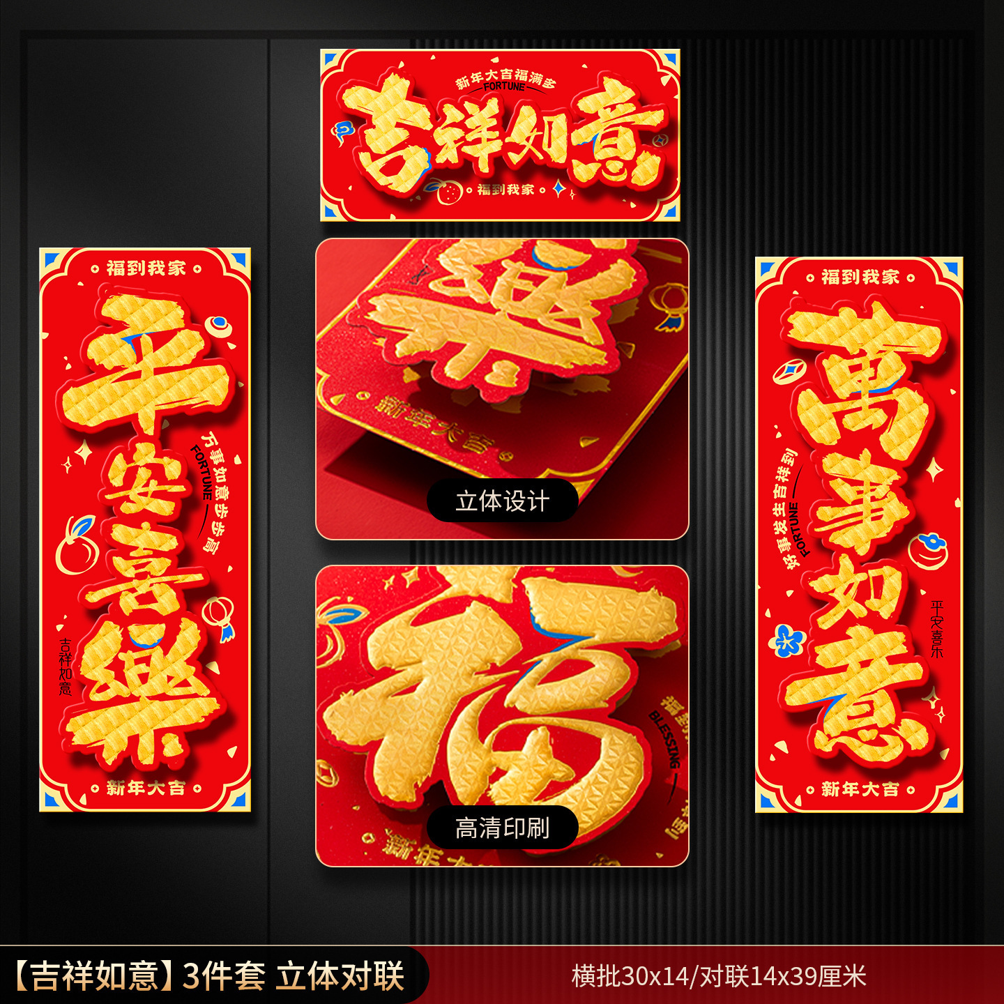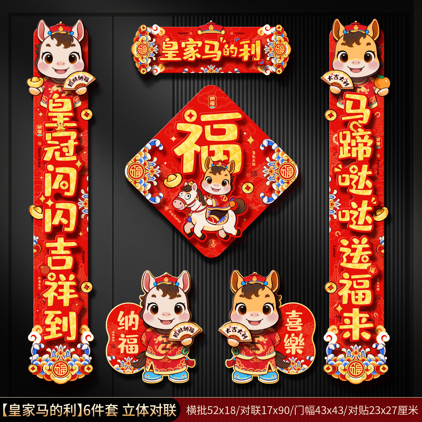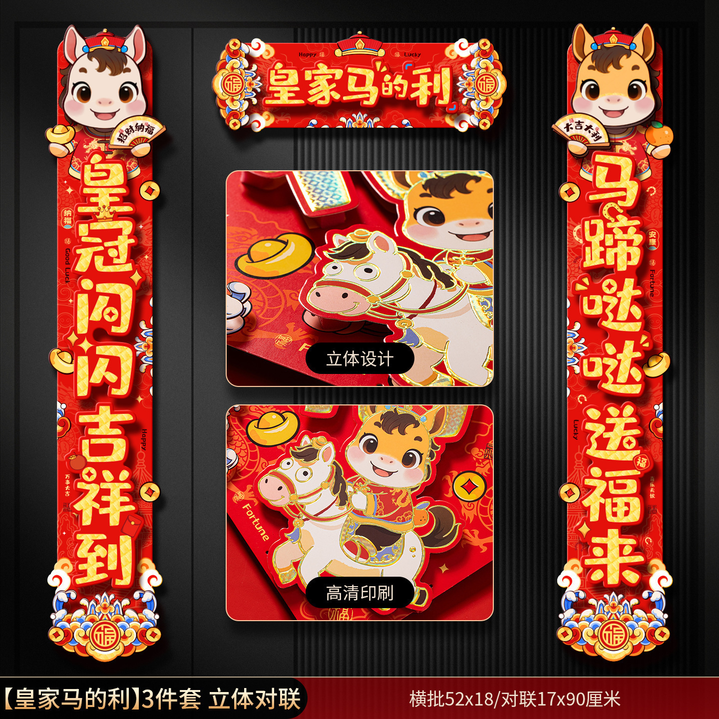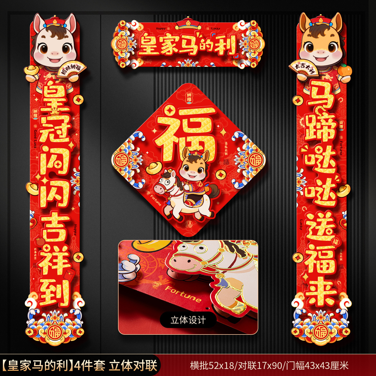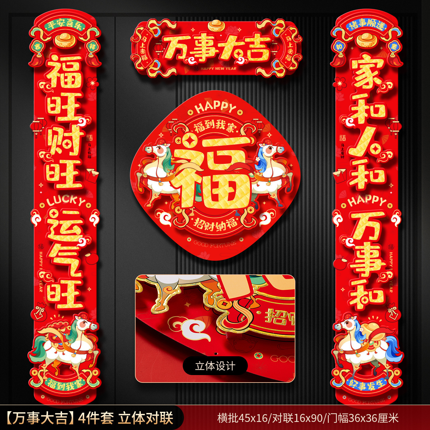 2026马年春联批发新款立体对联过年春节年货入户大门福字贴装饰品