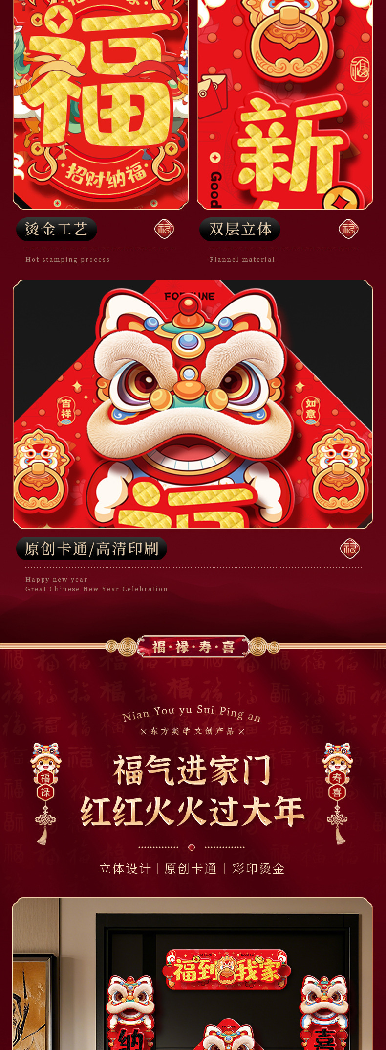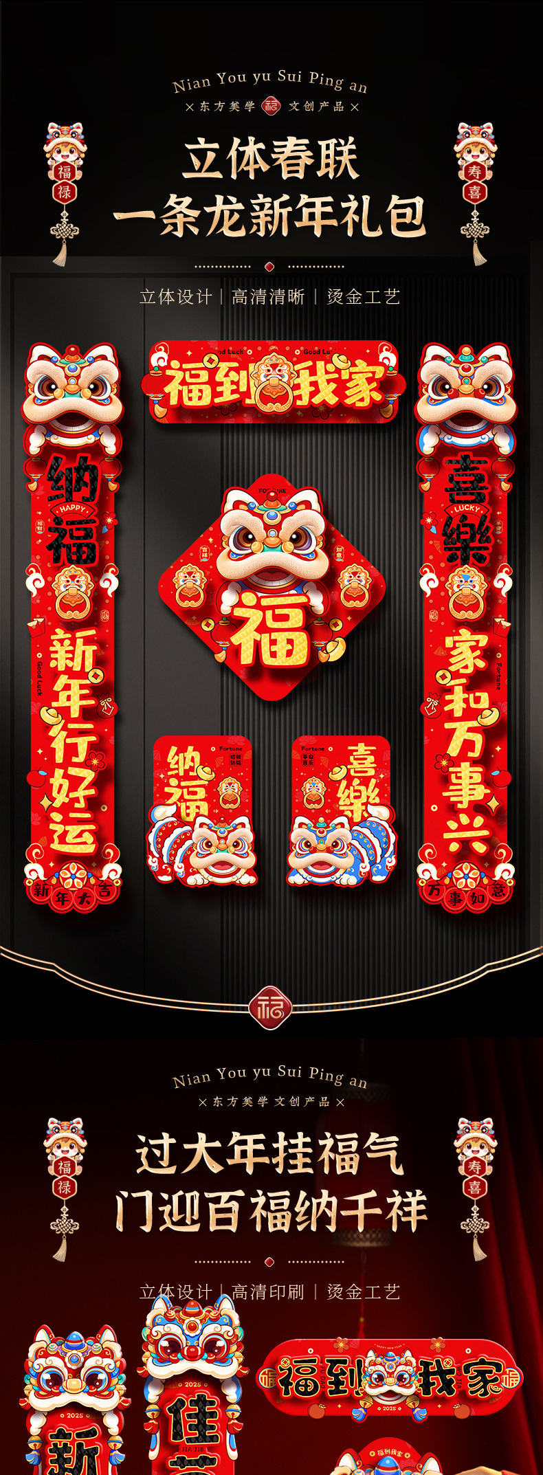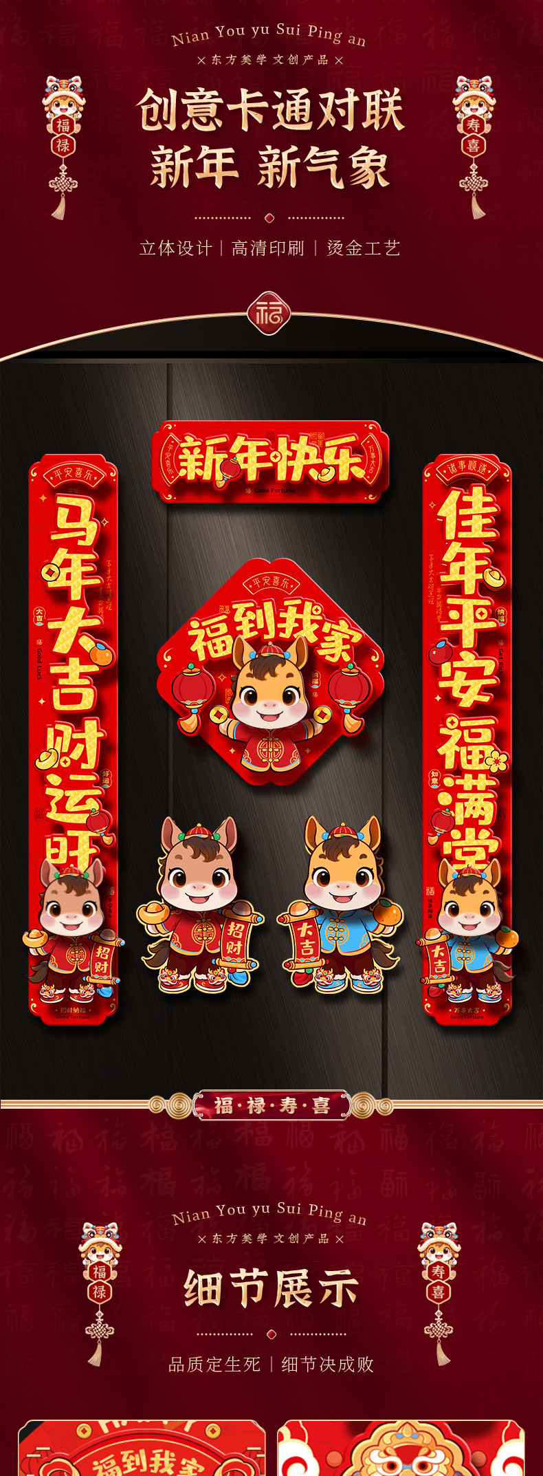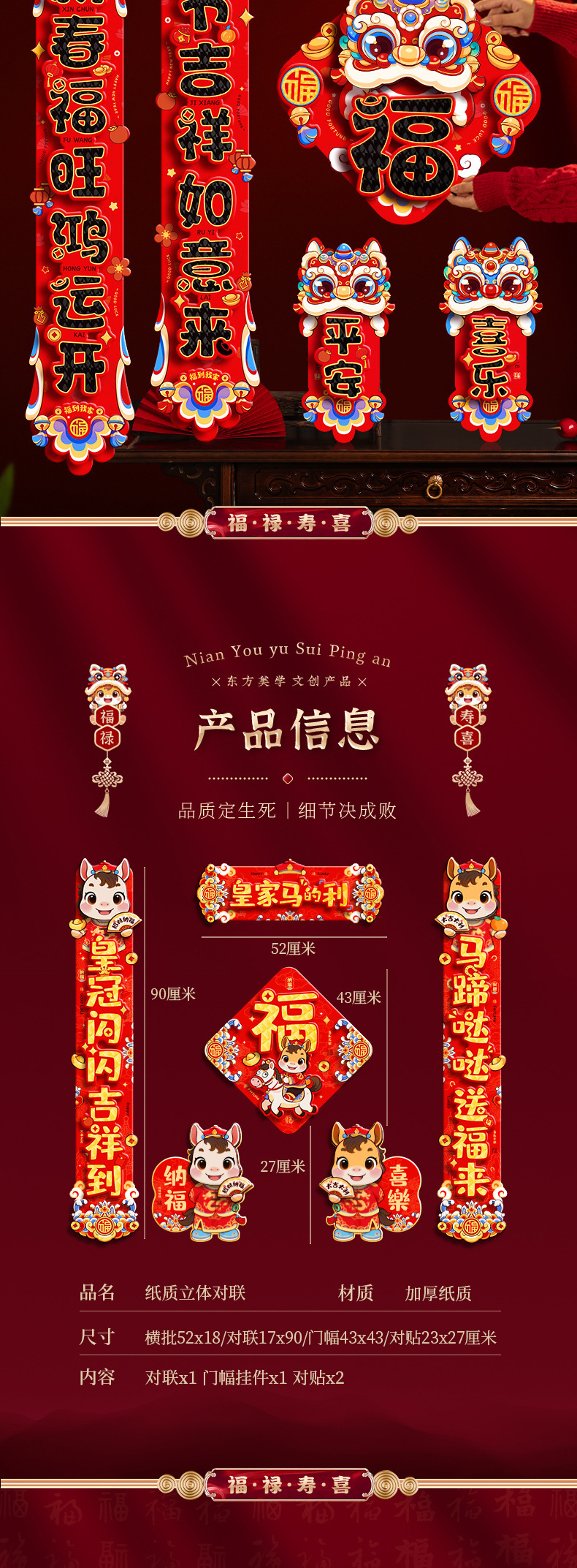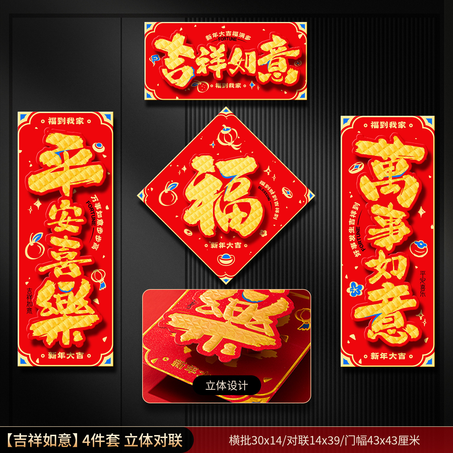 2026马年春联批发新款立体对联过年春节年货入户大门福字贴装饰品