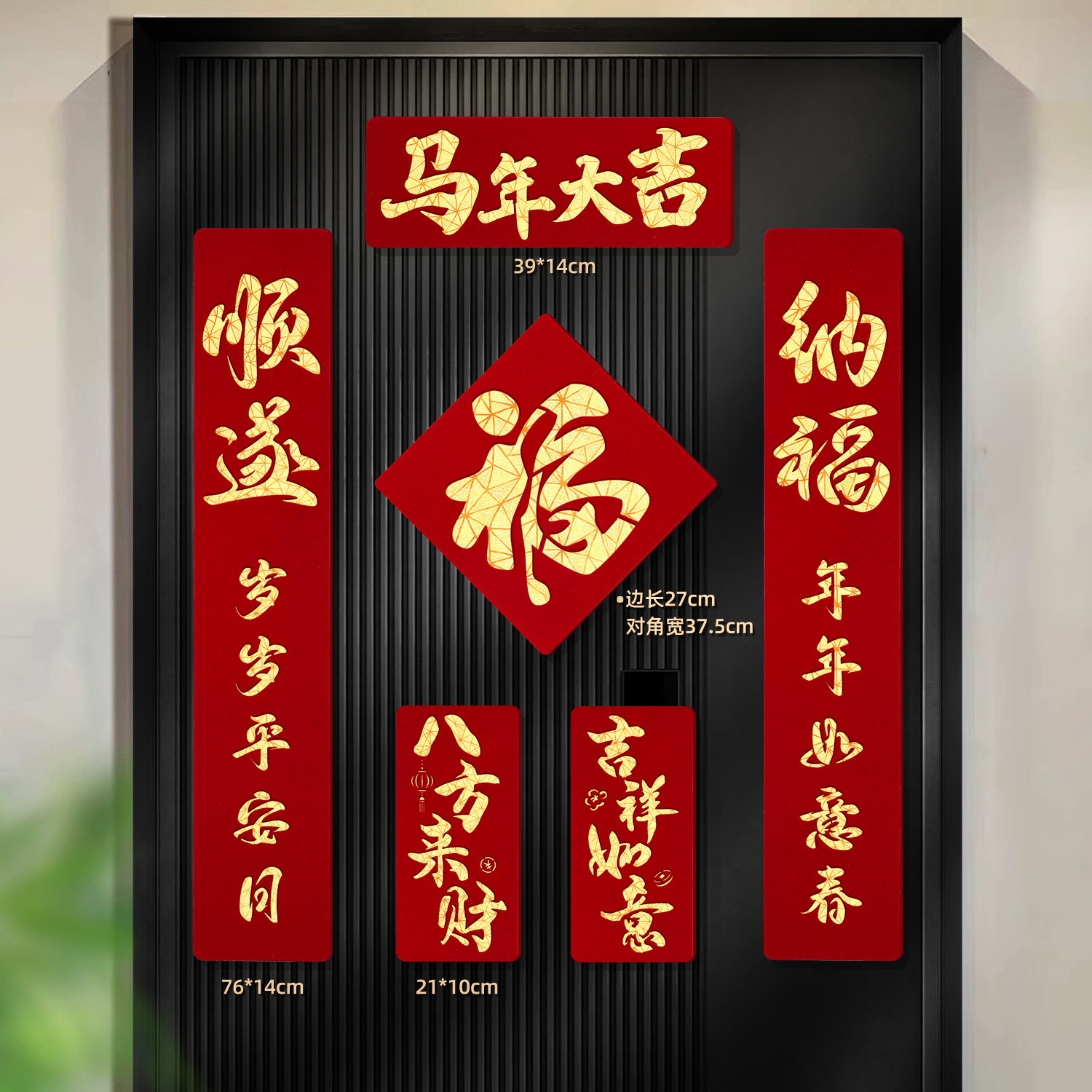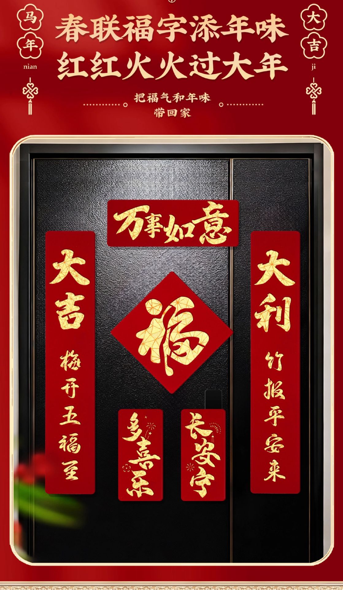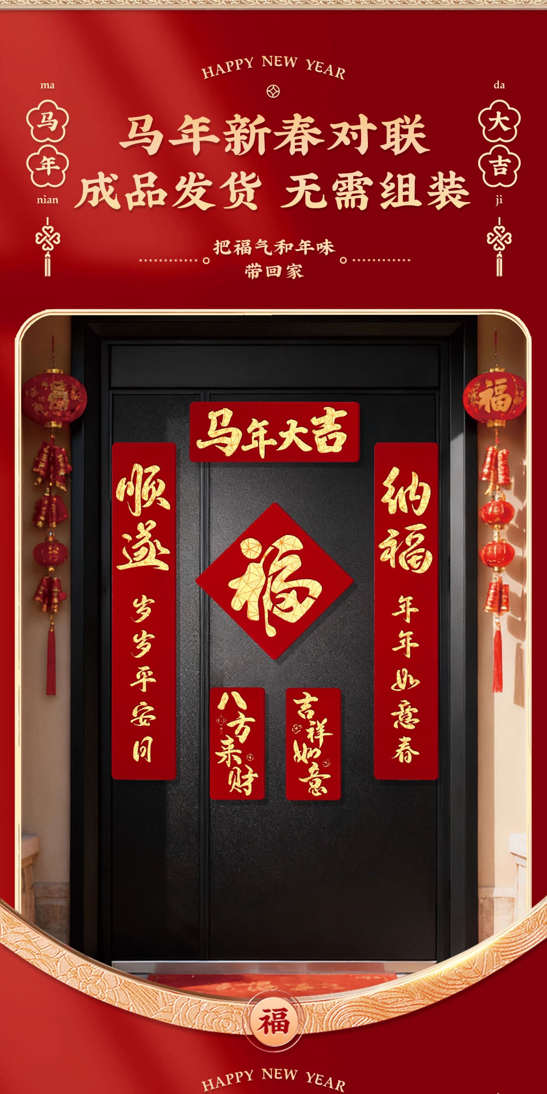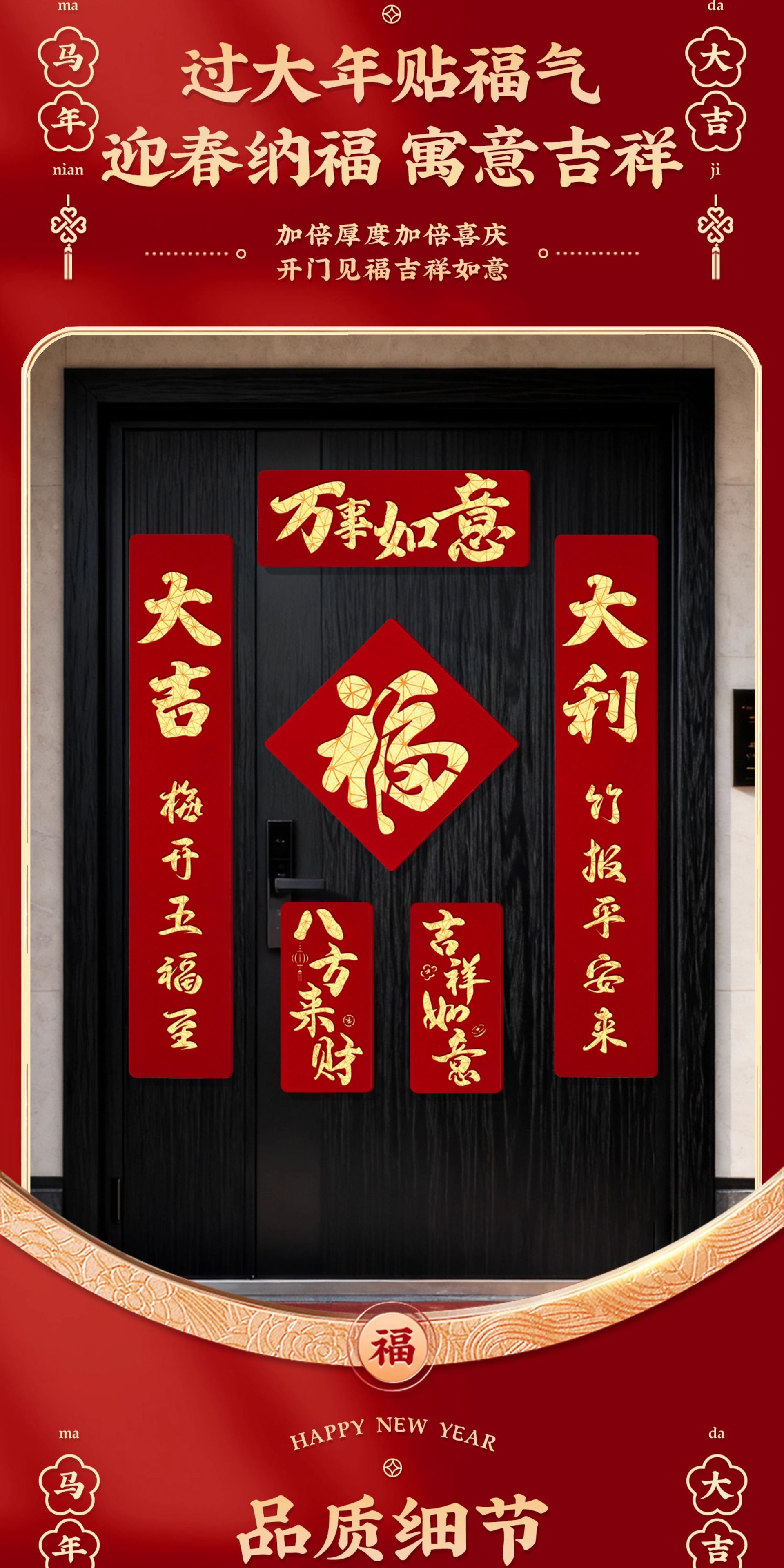 2026马年磁吸对联新年装饰春联新款双层植绒布门对子过年门福字贴