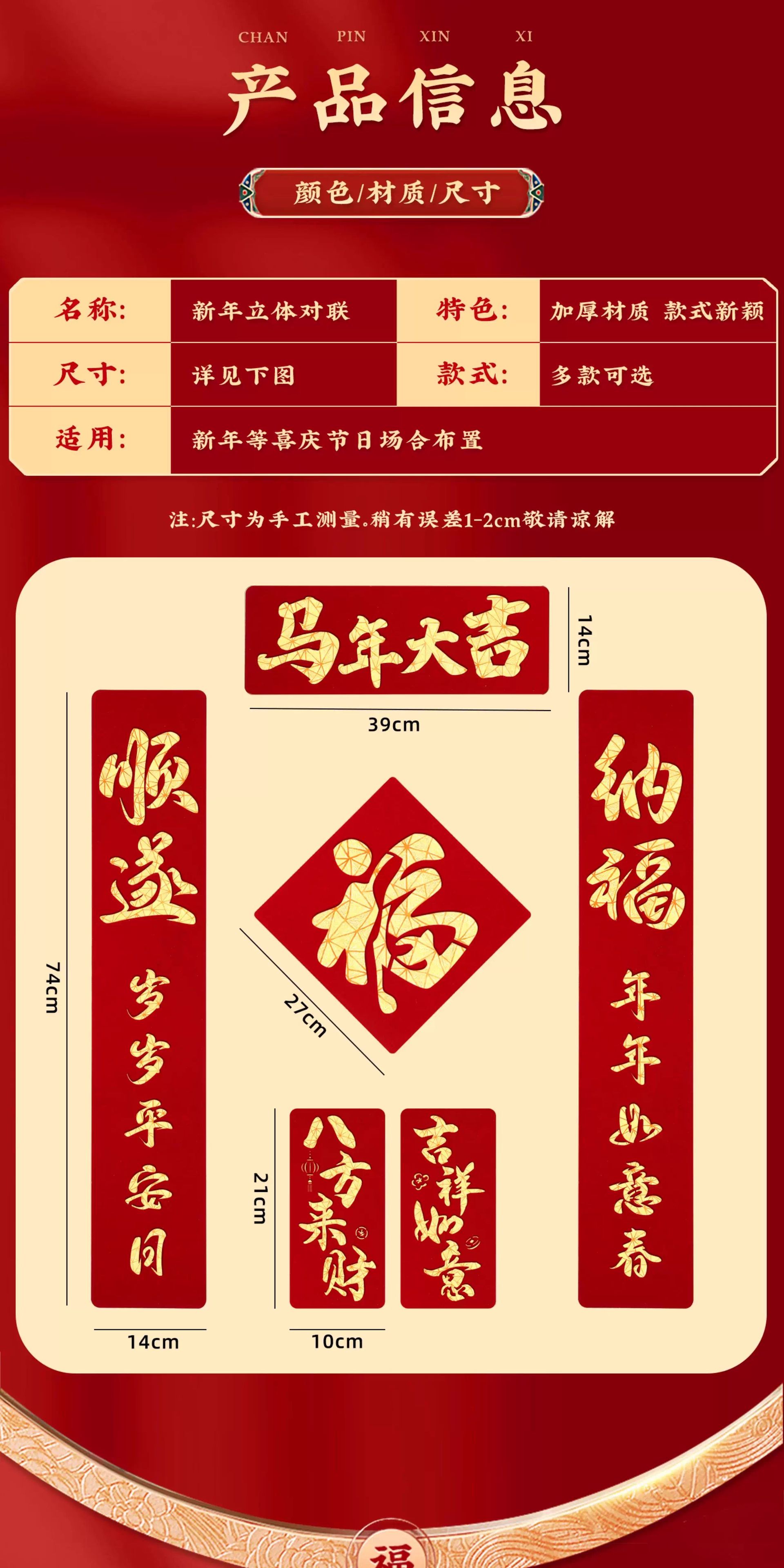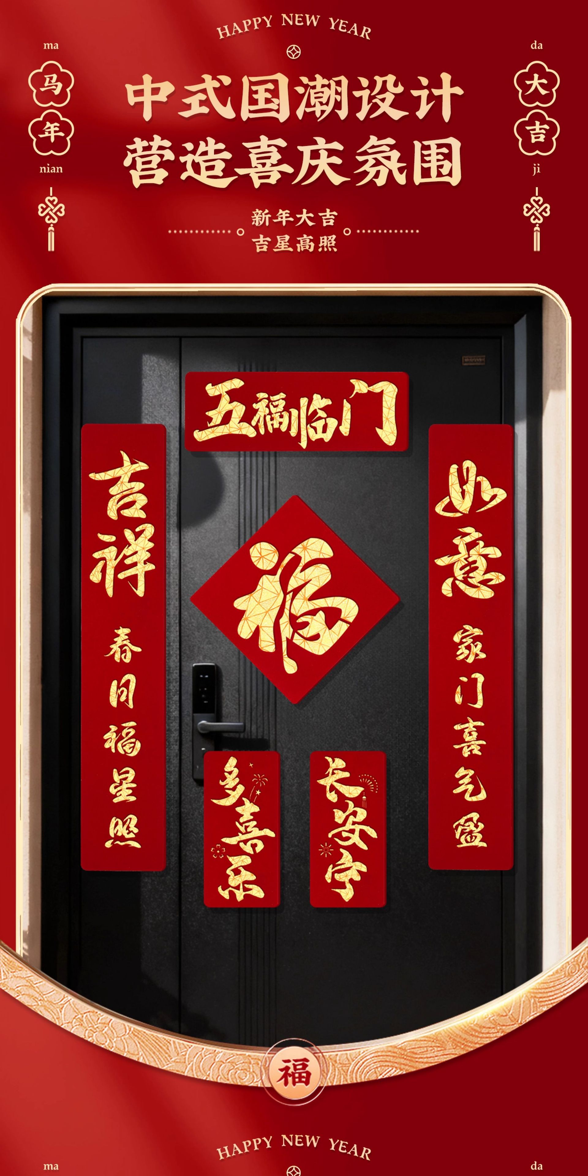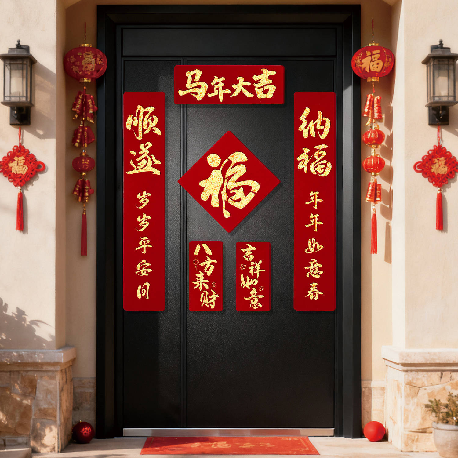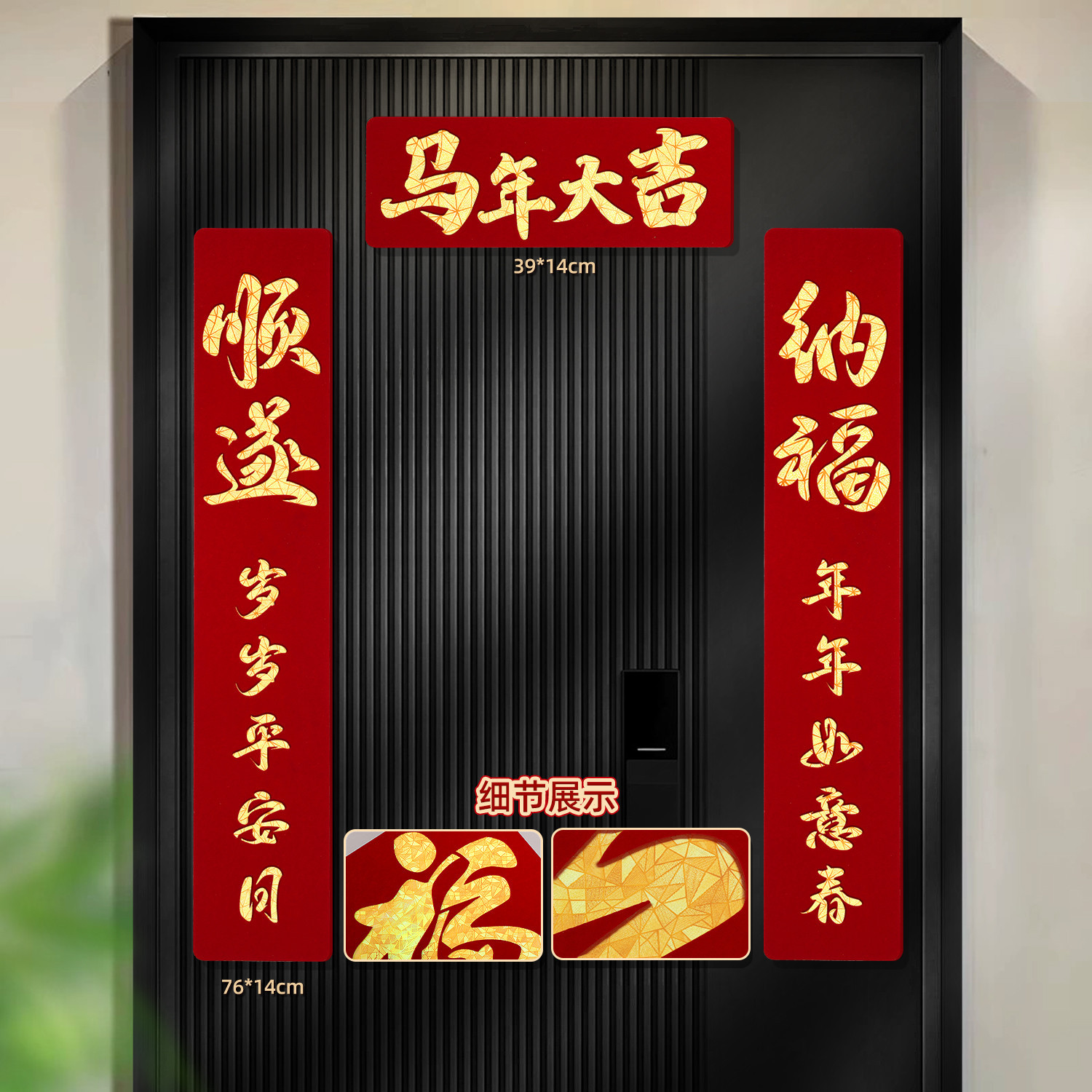 2026马年磁吸对联新年装饰春联新款双层植绒布门对子过年门福字贴
