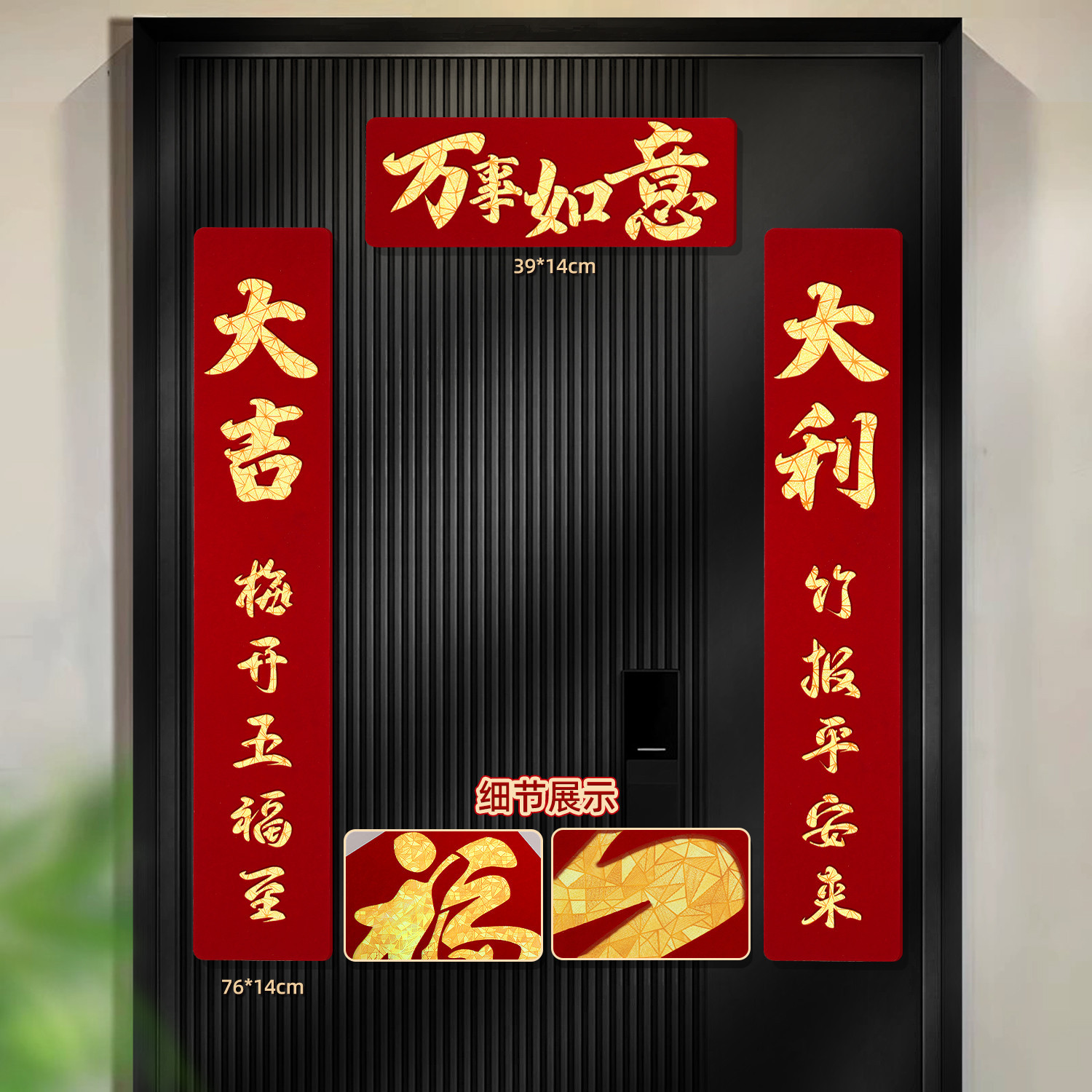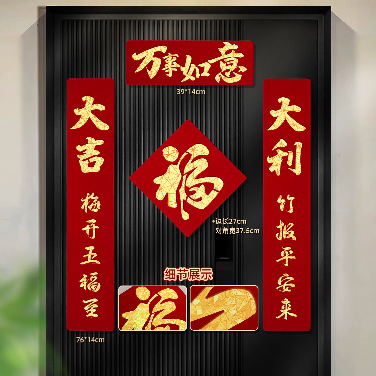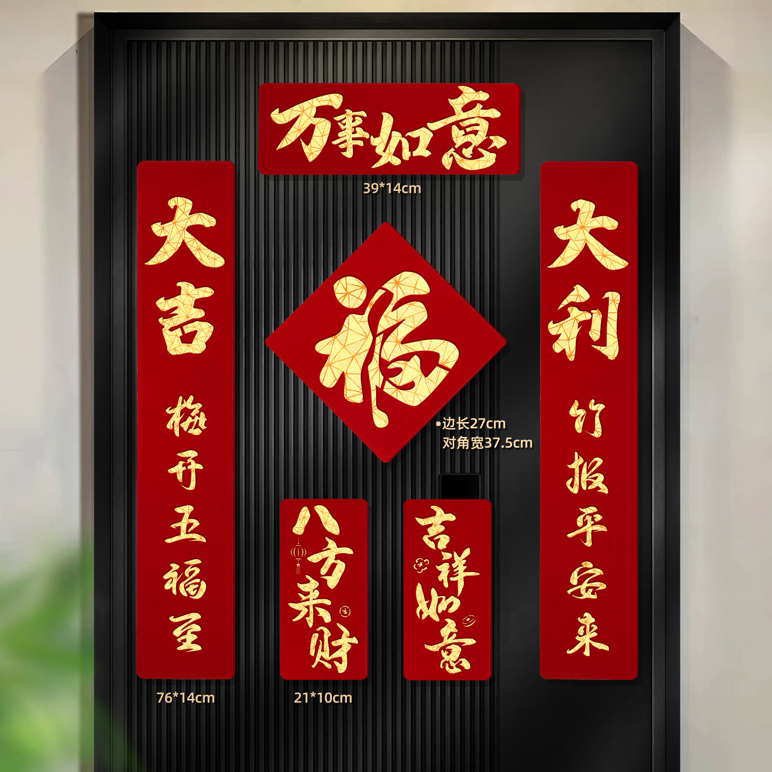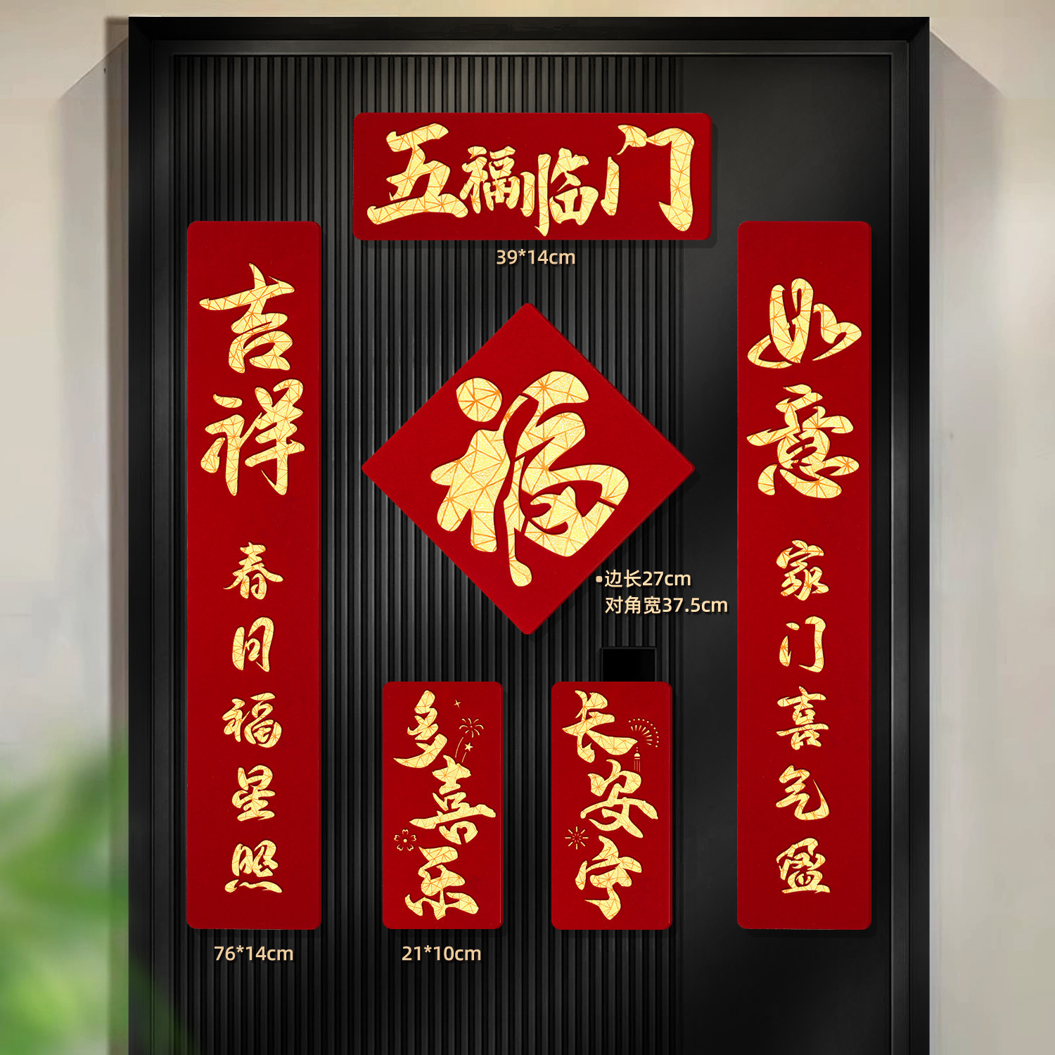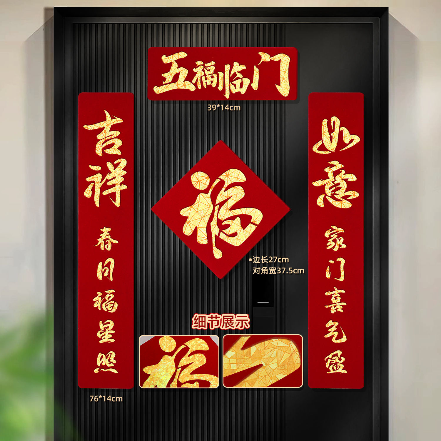 2026马年磁吸对联新年装饰春联新款双层植绒布门对子过年门福字贴