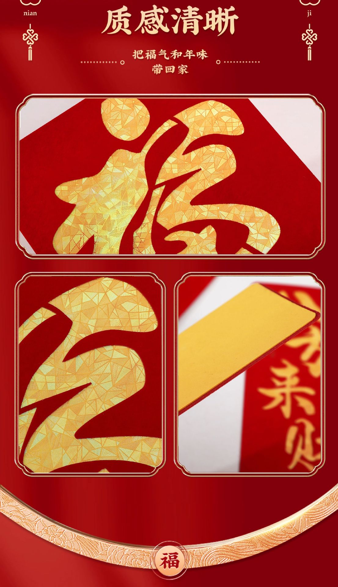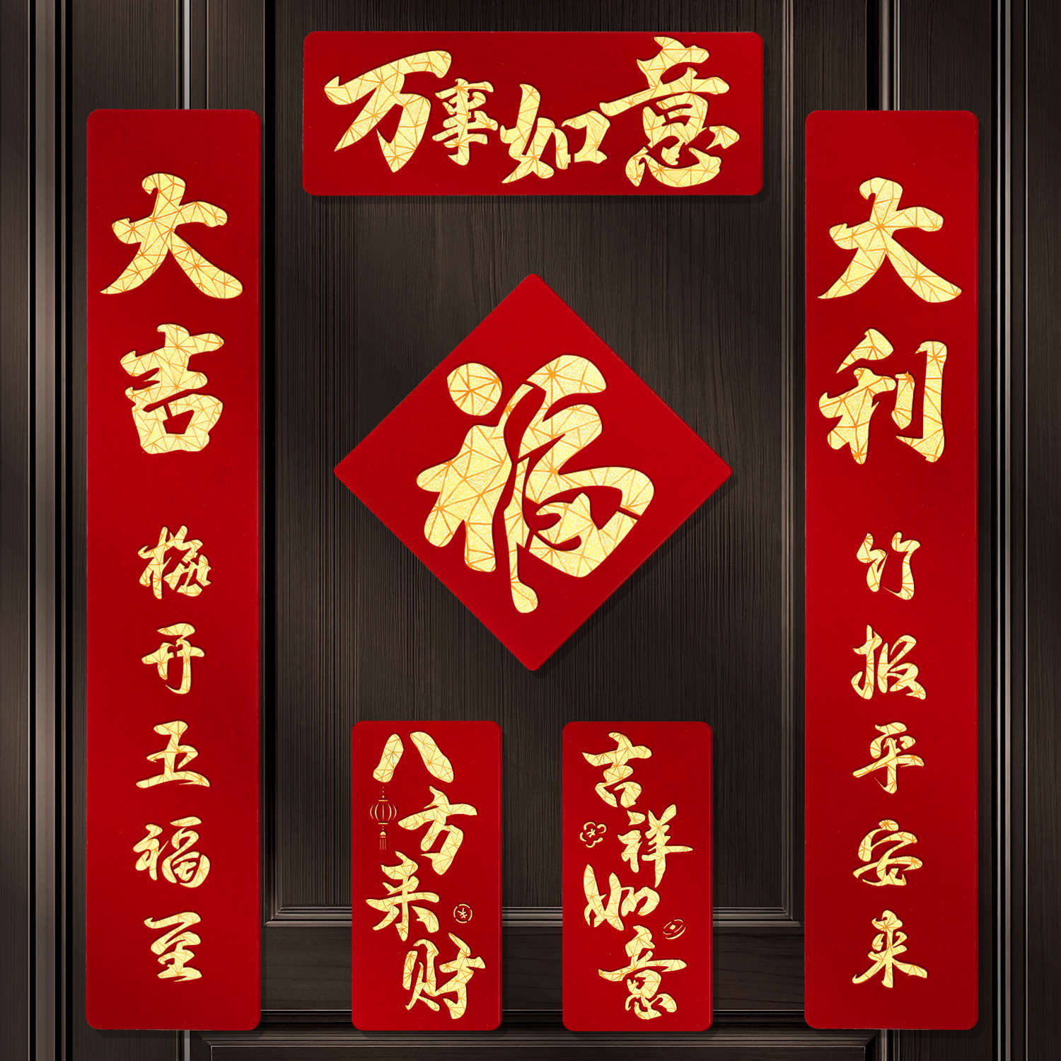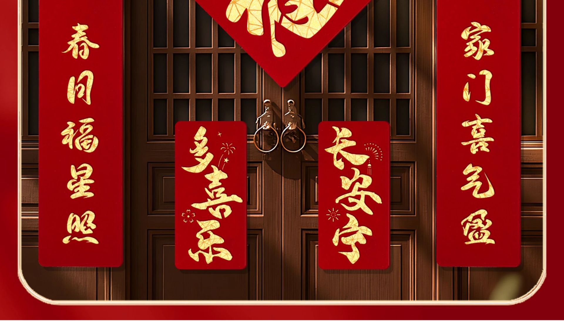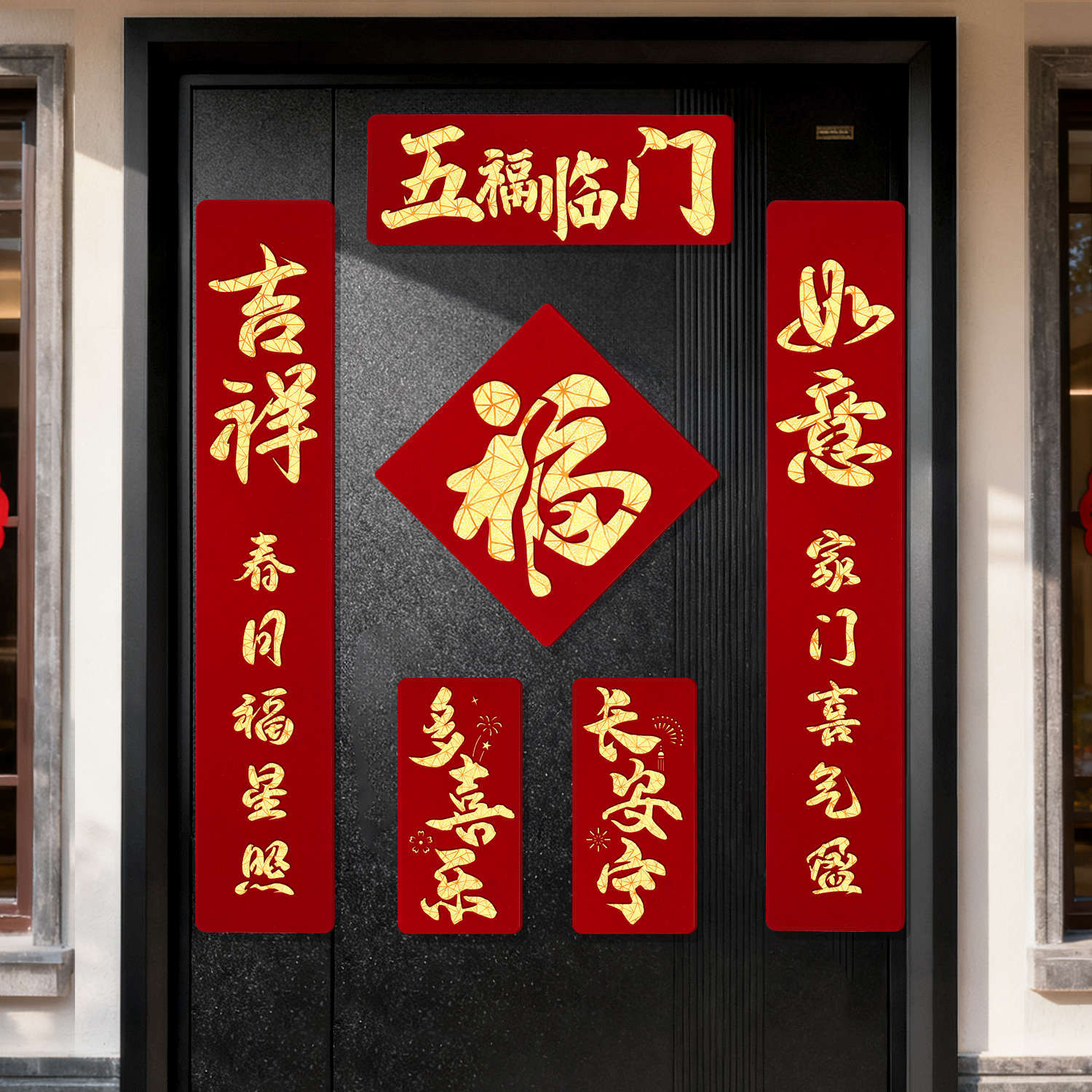 2026马年磁吸对联新年装饰春联新款双层植绒布门对子过年门福字贴