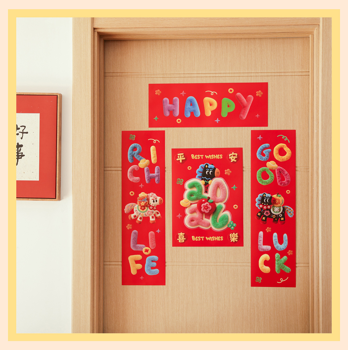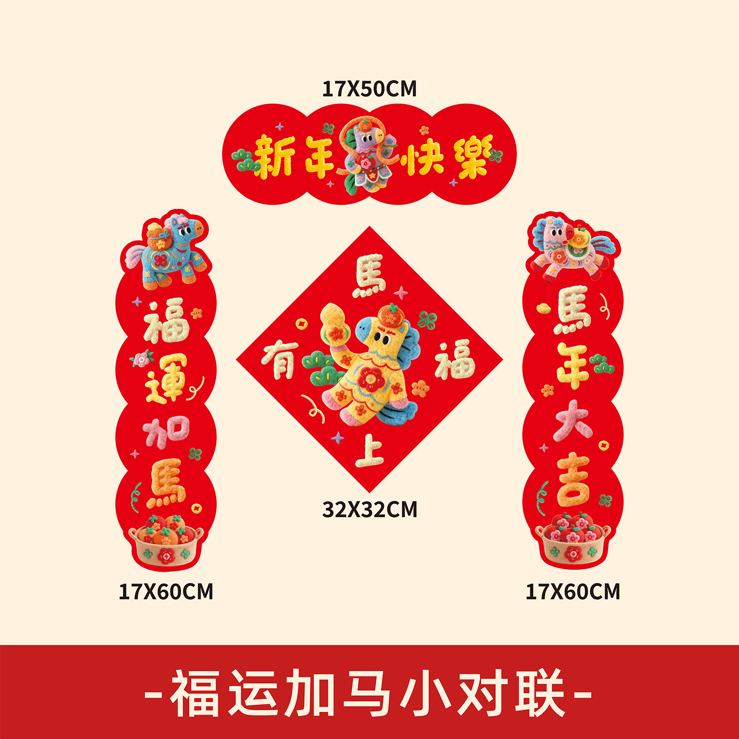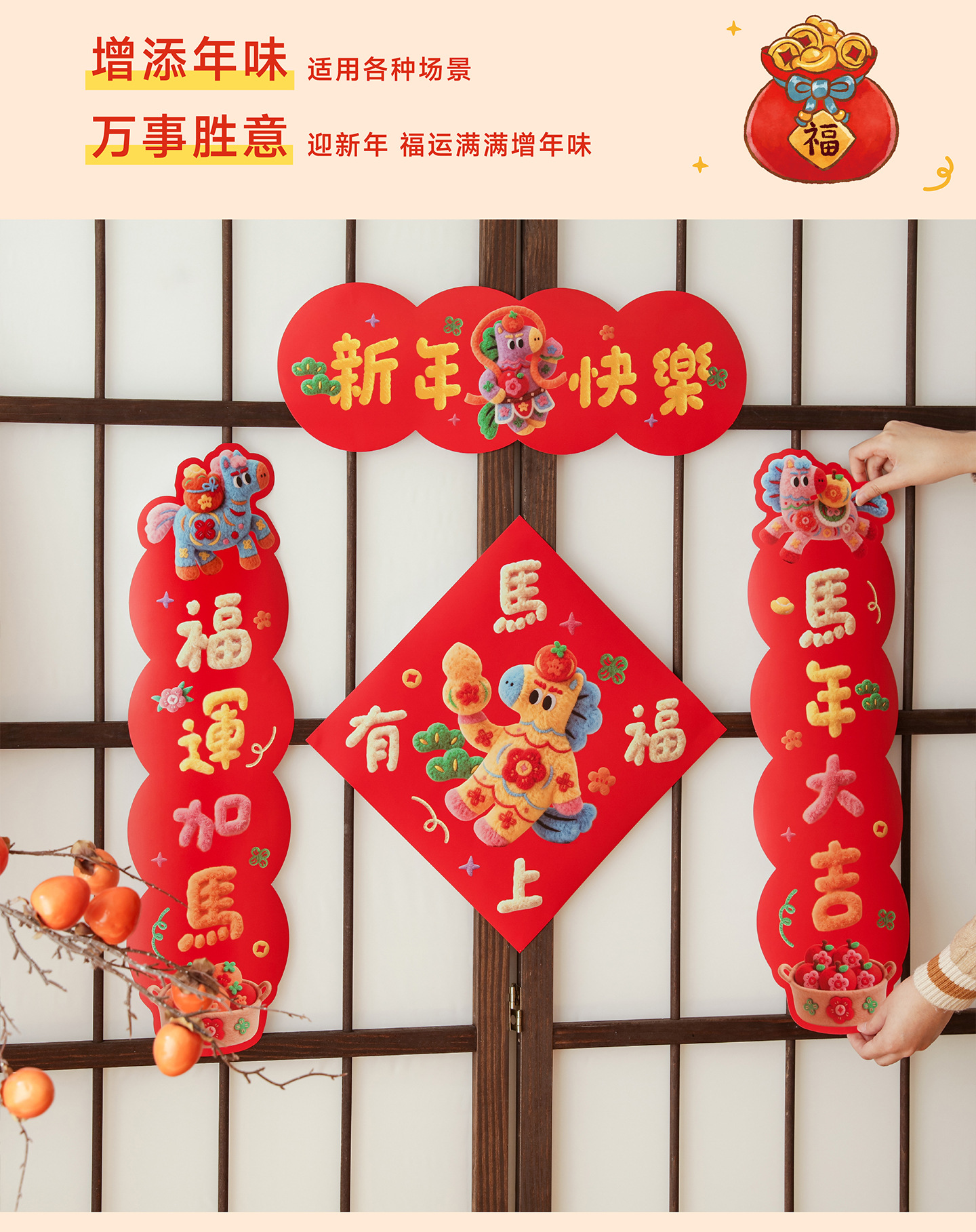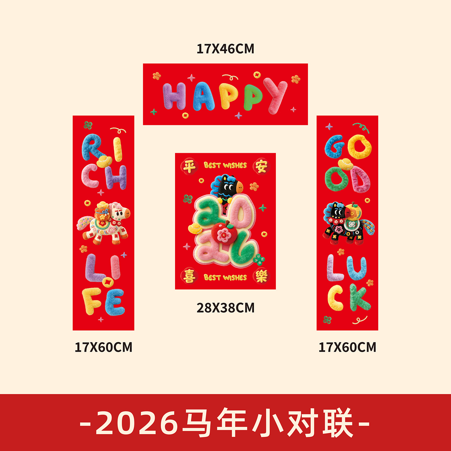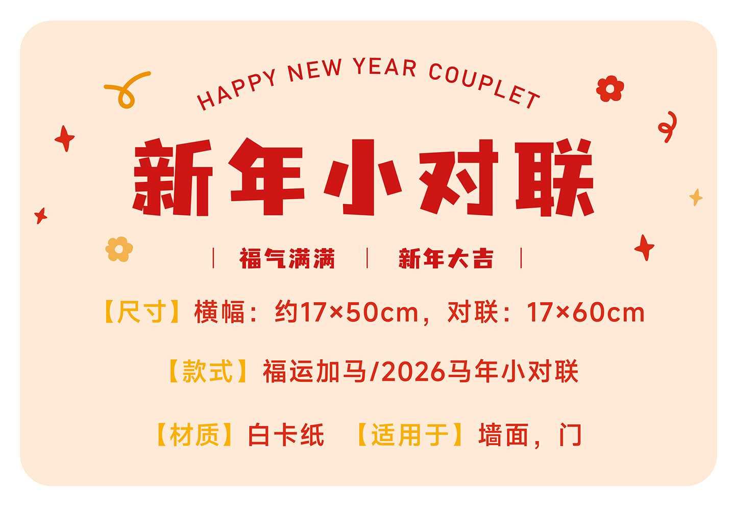 2026马年小对联福运加马新年小春联春节过年装饰门幅福字入户门贴
