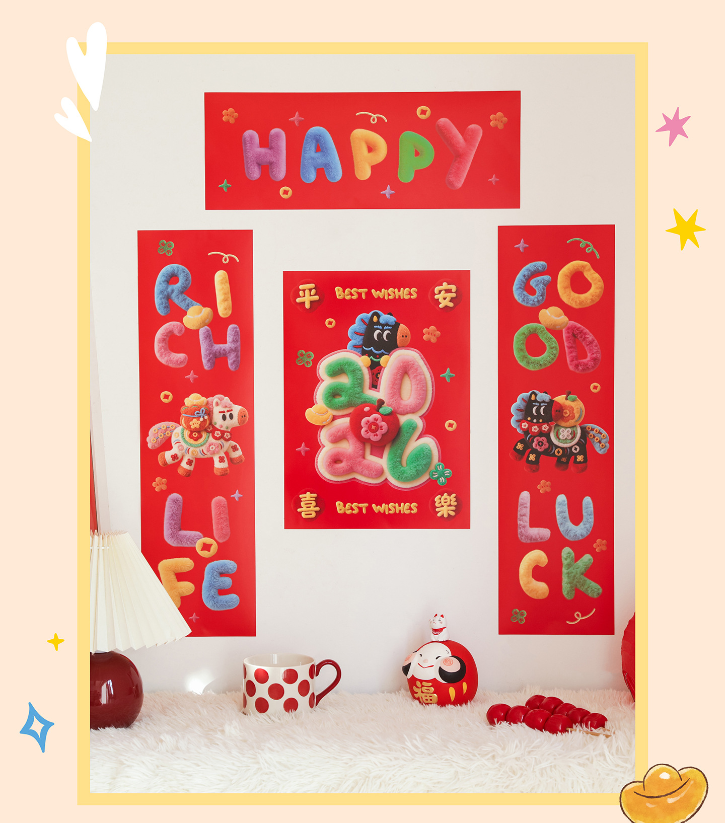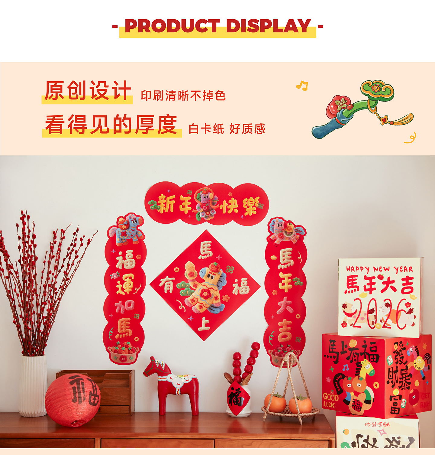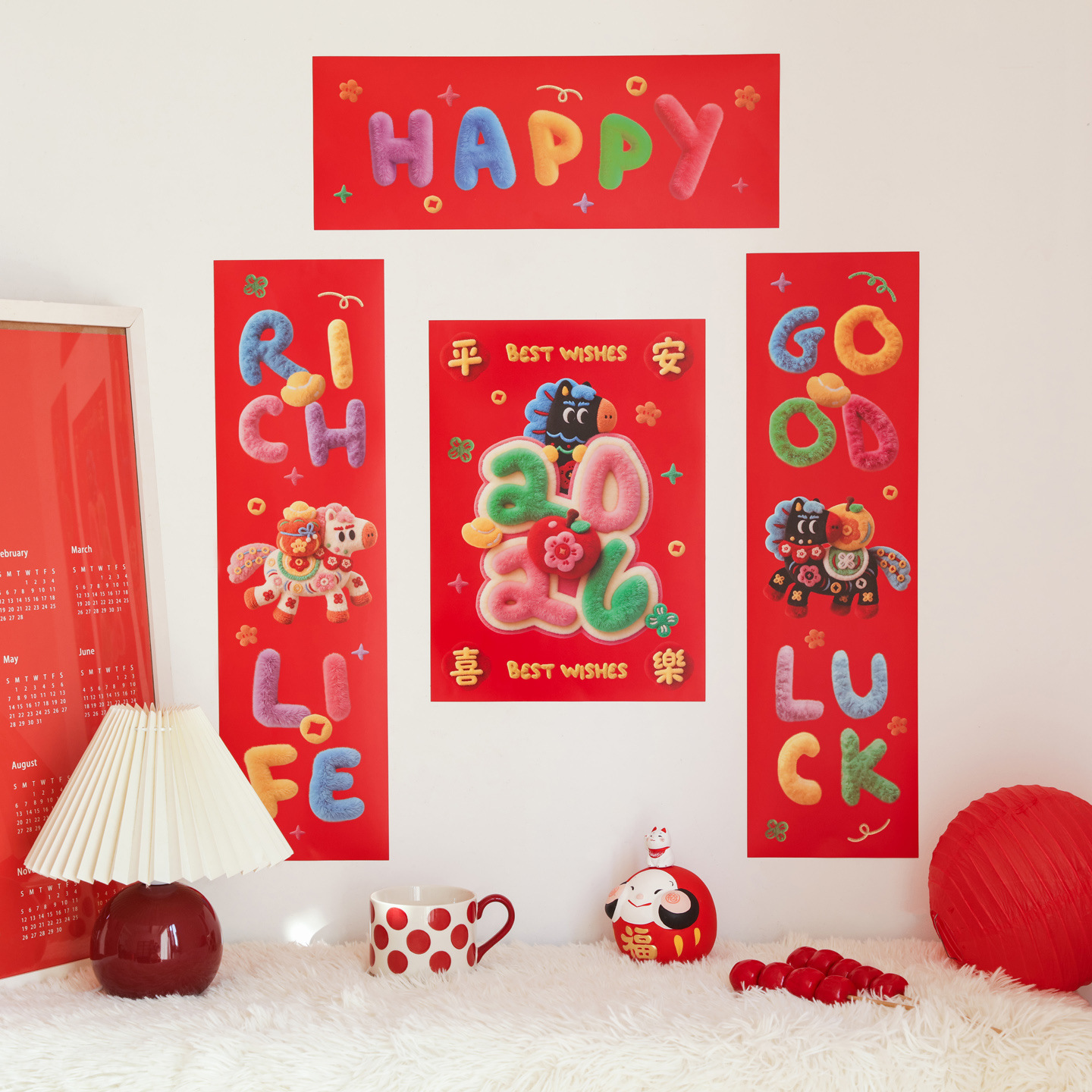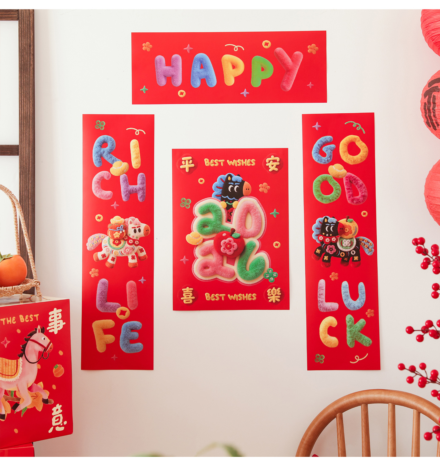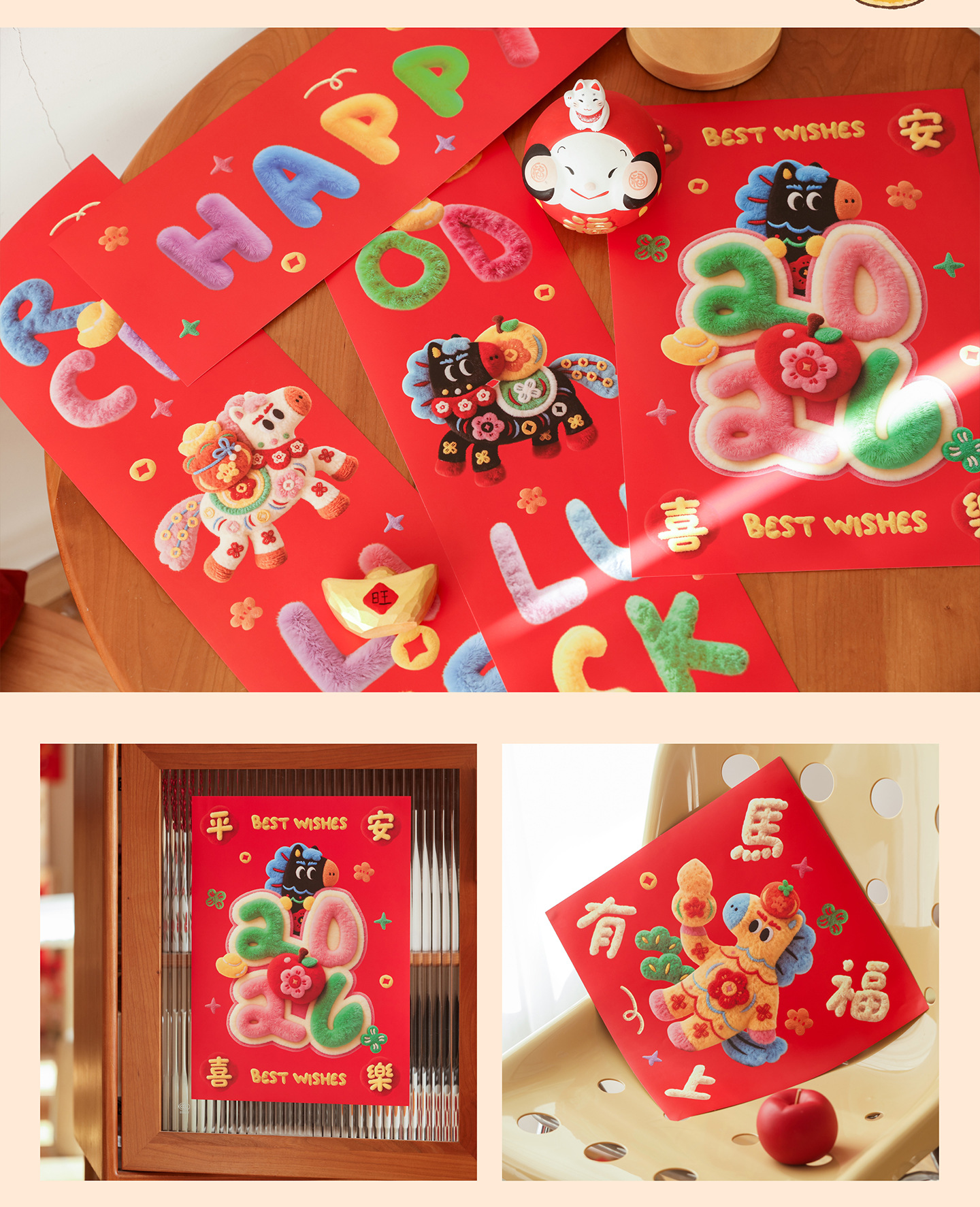 2026马年小对联福运加马新年小春联春节过年装饰门幅福字入户门贴