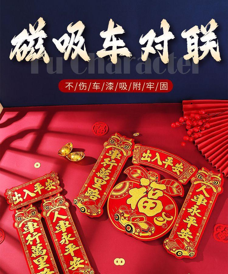 汽车对联2026新款磁吸车磁铁车贴福字春节对联用品新年车饰批发