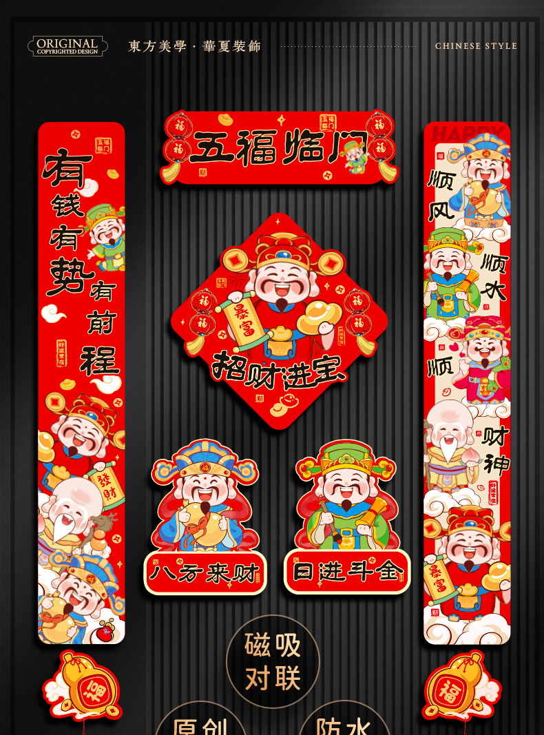 2026马年财神磁吸对联冰箱贴防盗门新年装饰用品过年春联新居门联