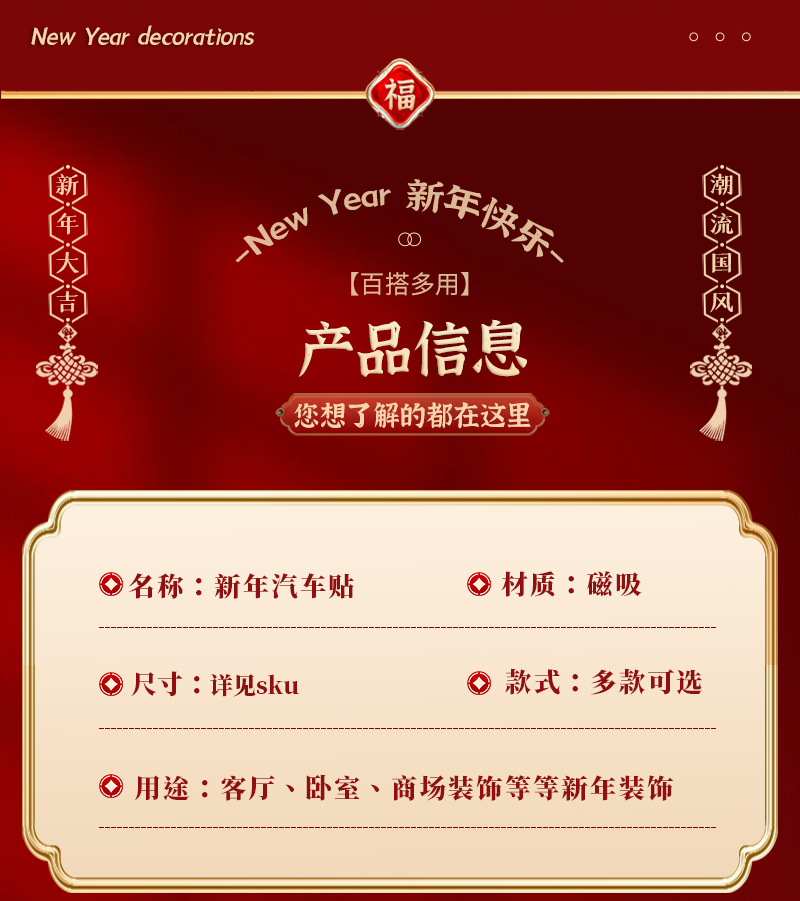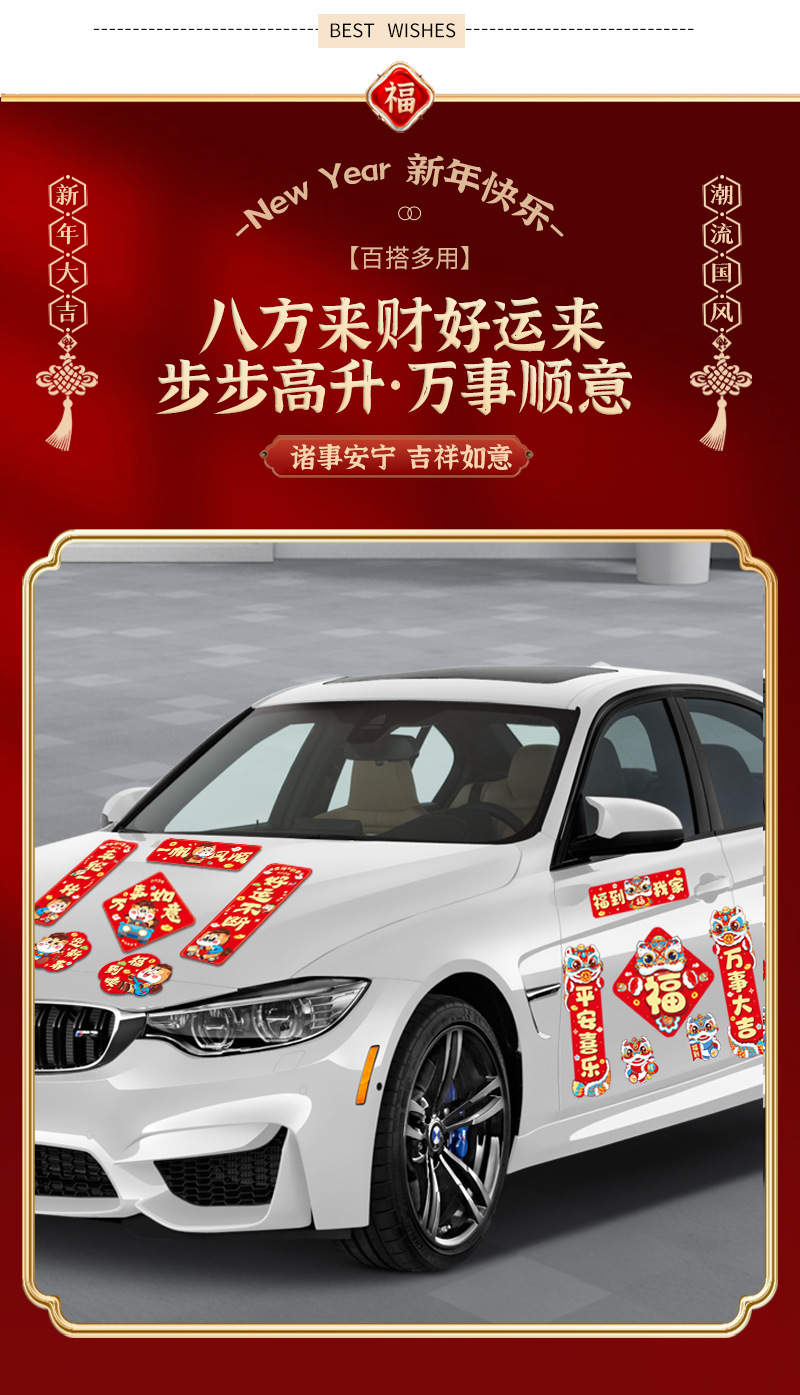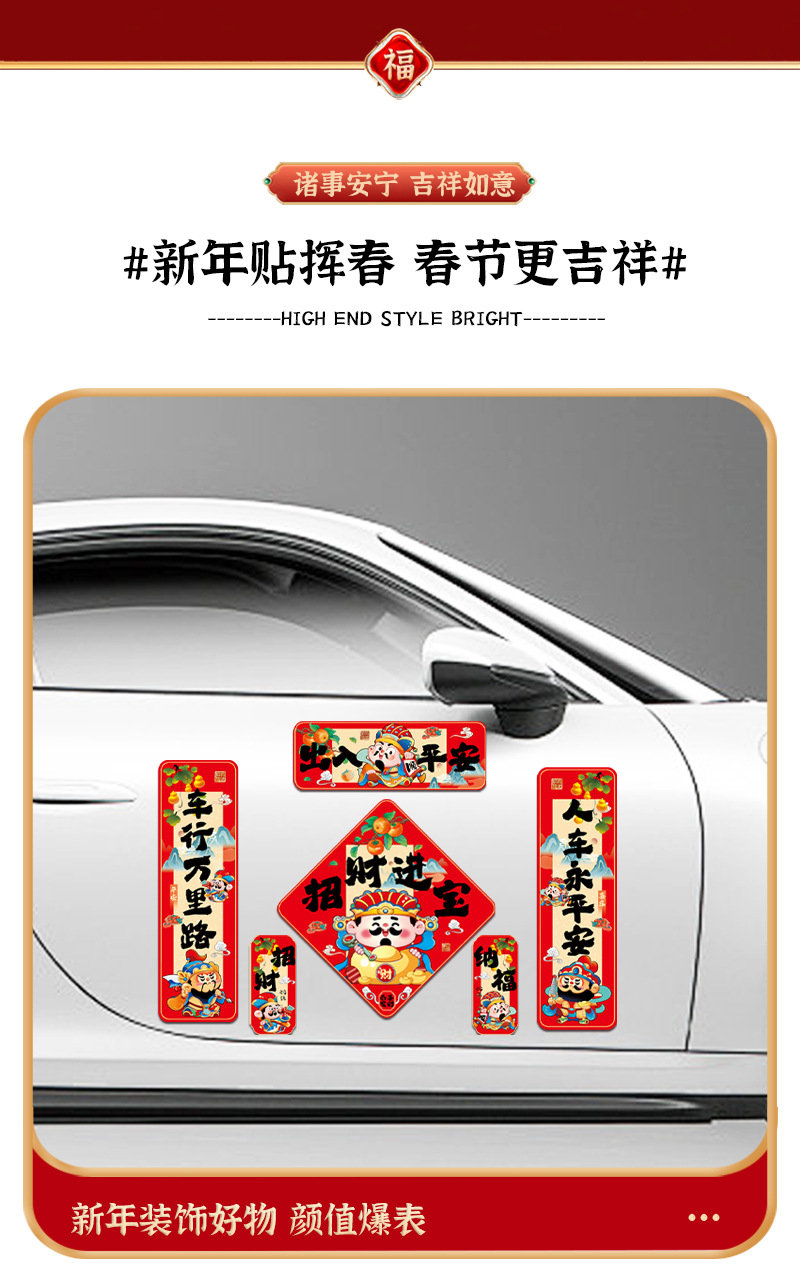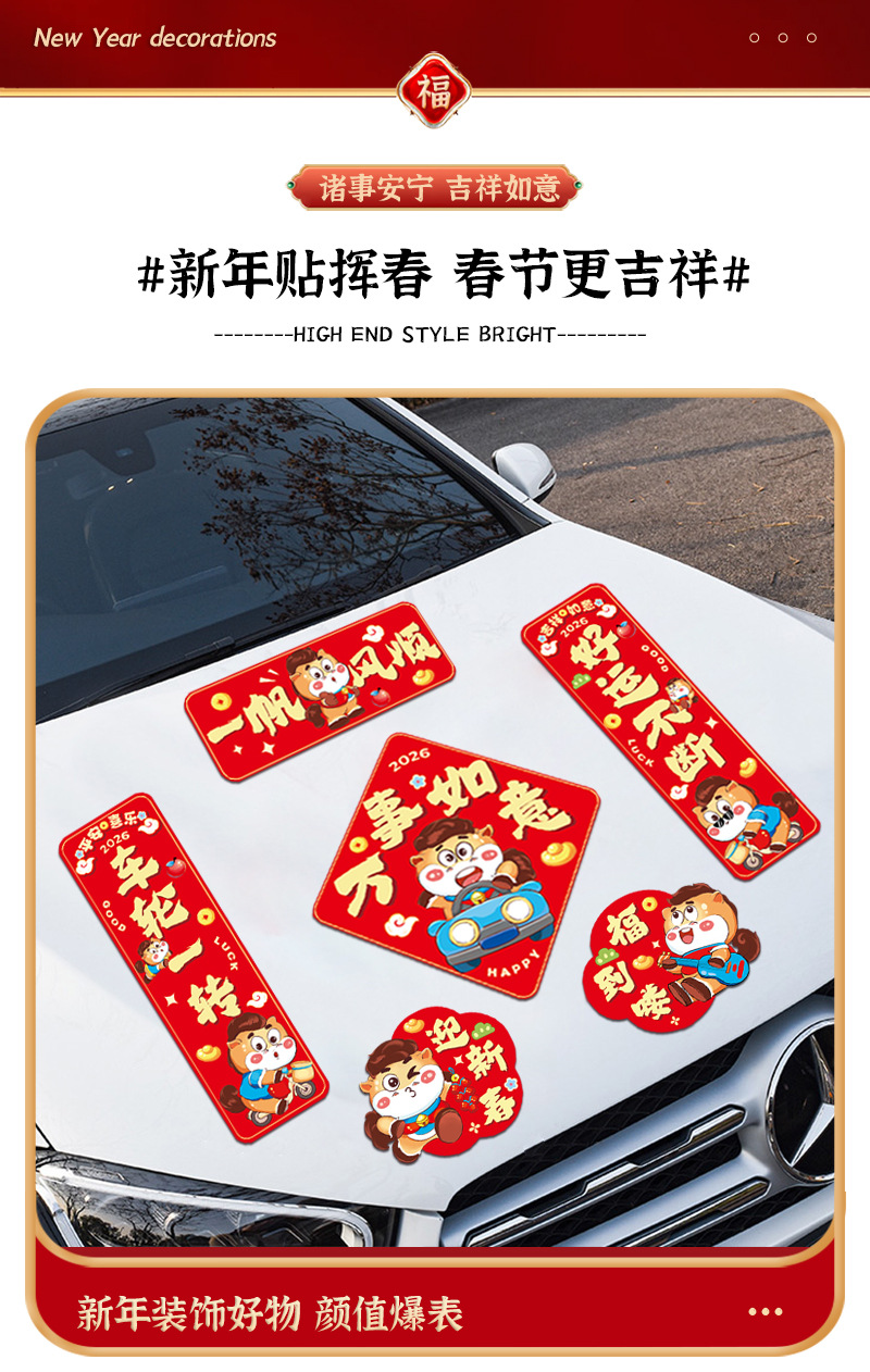2026马年春节磁吸车贴对联新年装饰品小春联喜庆场景装扮布置对贴