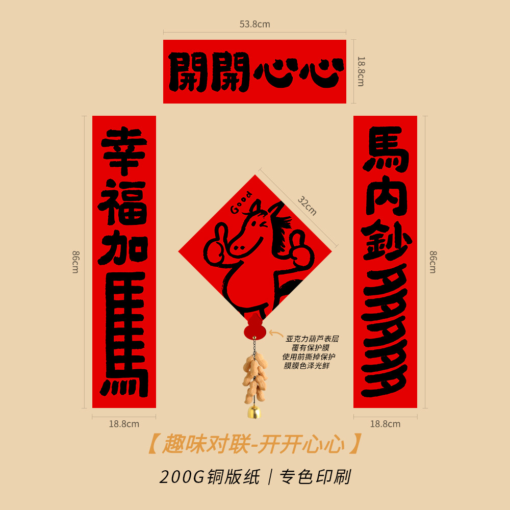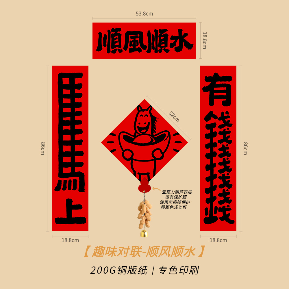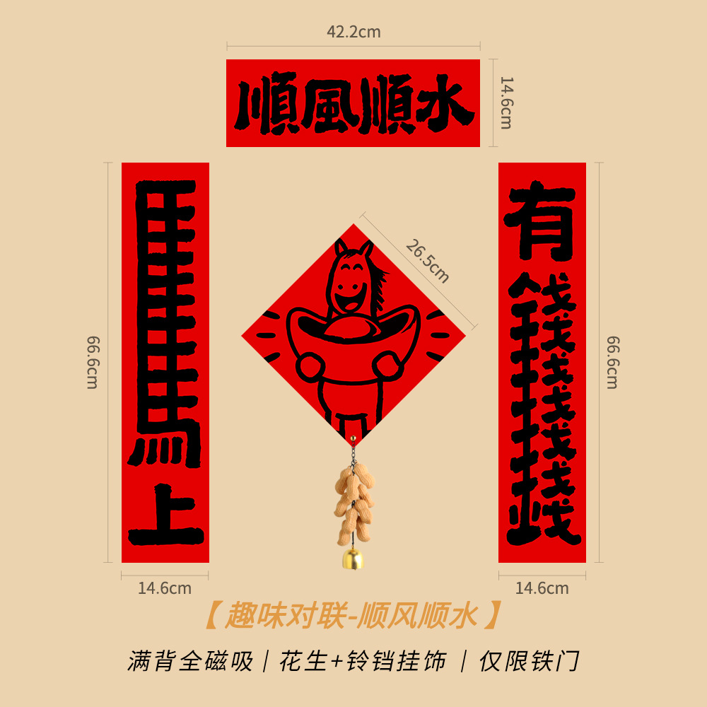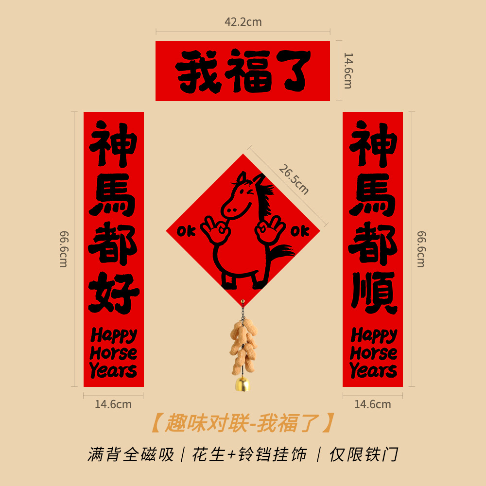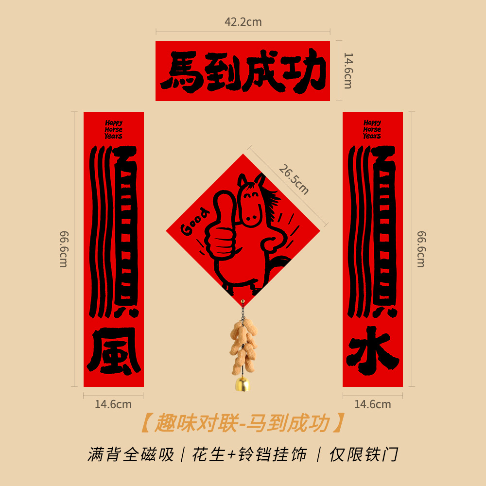 2026创意马年磁吸趣味对联可爱春联入户门福字贴布置装饰卡通新款