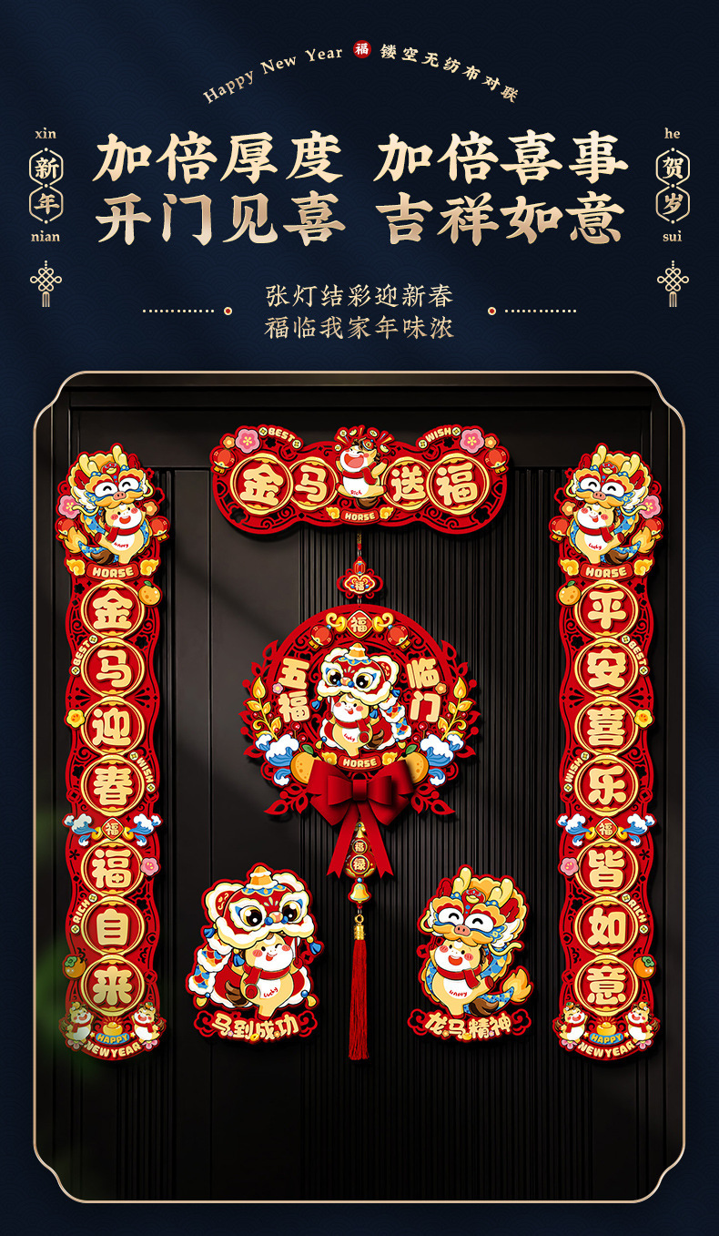 新年对联2026新款马年春节过年家用新春大门福字贴装饰品春联批发
