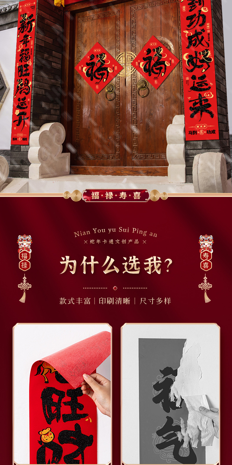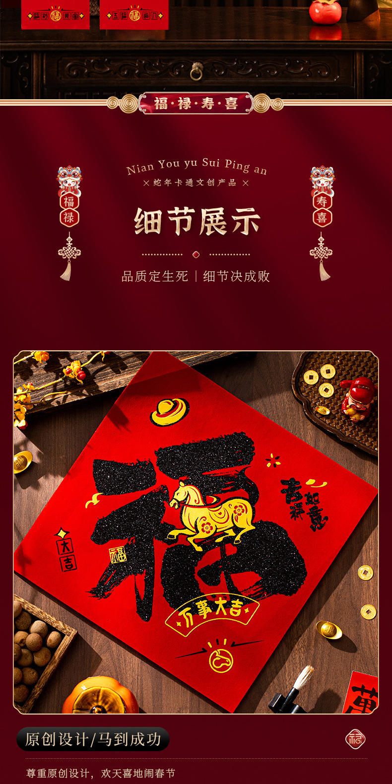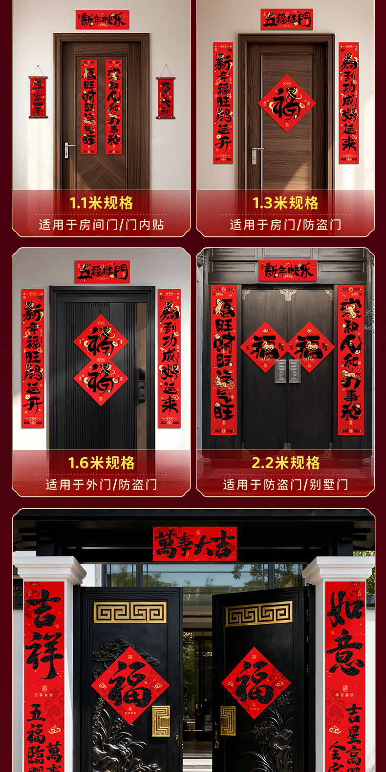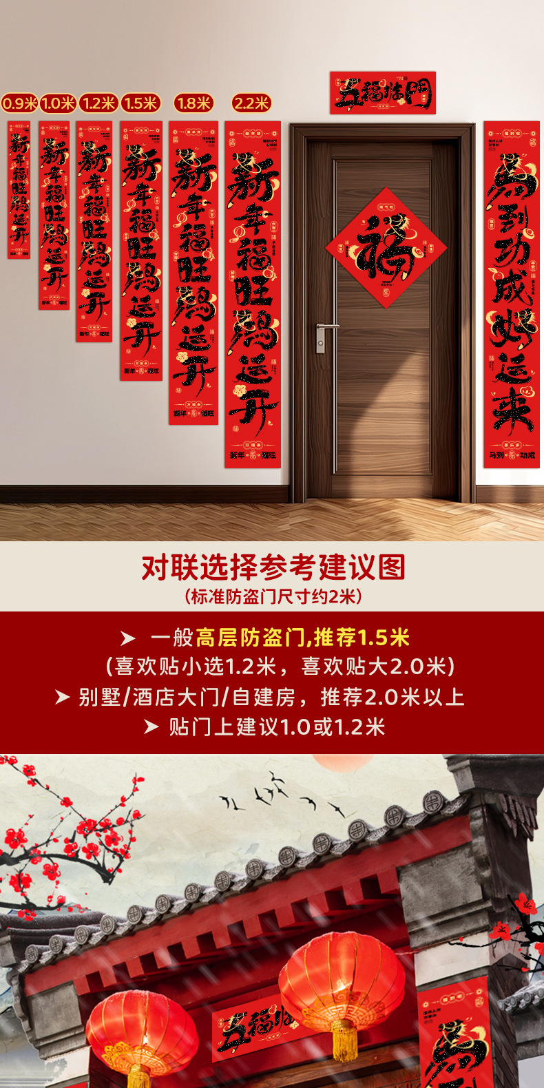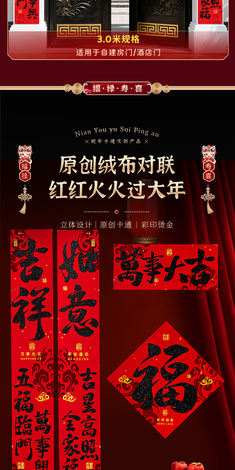 2026新款马年绒布对联背胶春节新年春联批货过年农村大门贴装饰品
