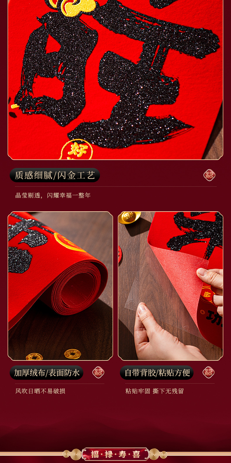 | 绒布对联(黏胶款) | USD $1.41 | 99995 piece available |