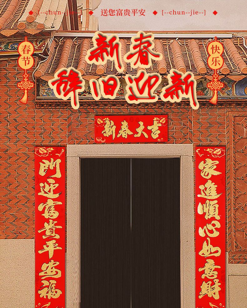 植绒春联2026马年新年高档对联春节批发农村大门过年新款家用装饰