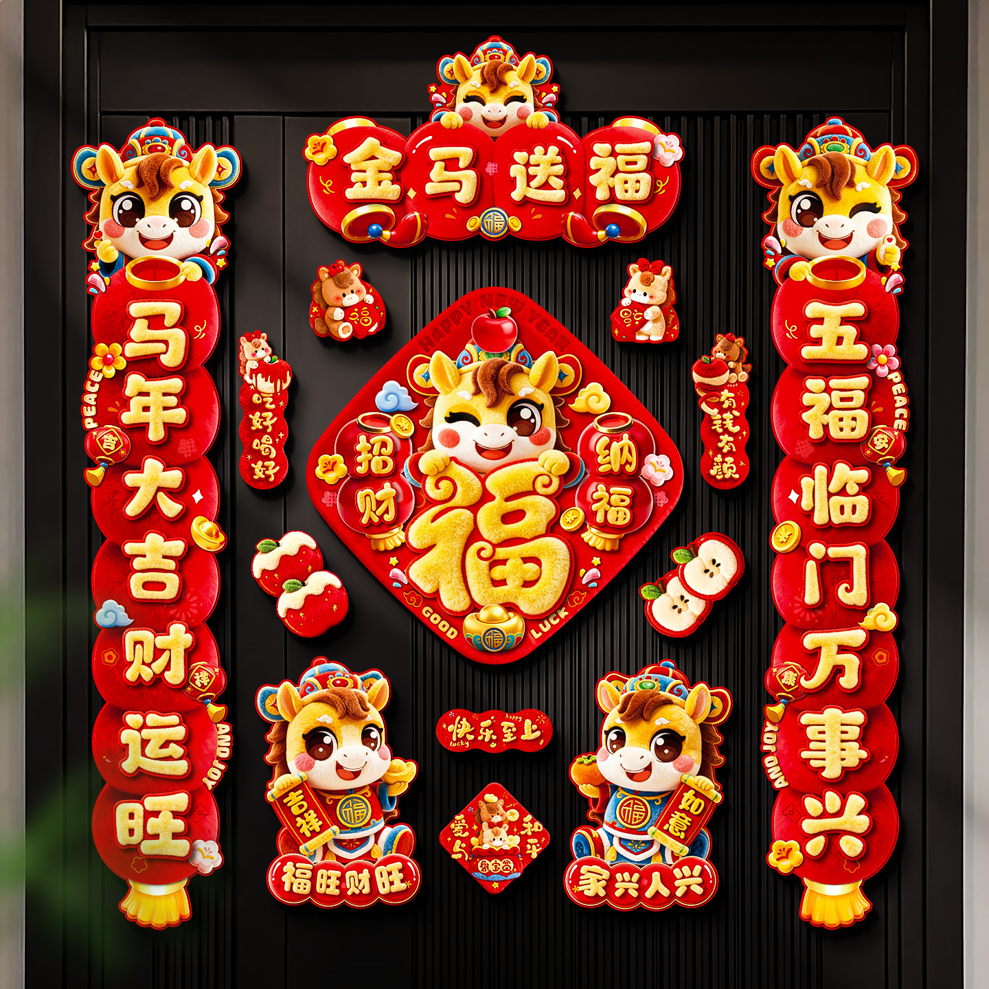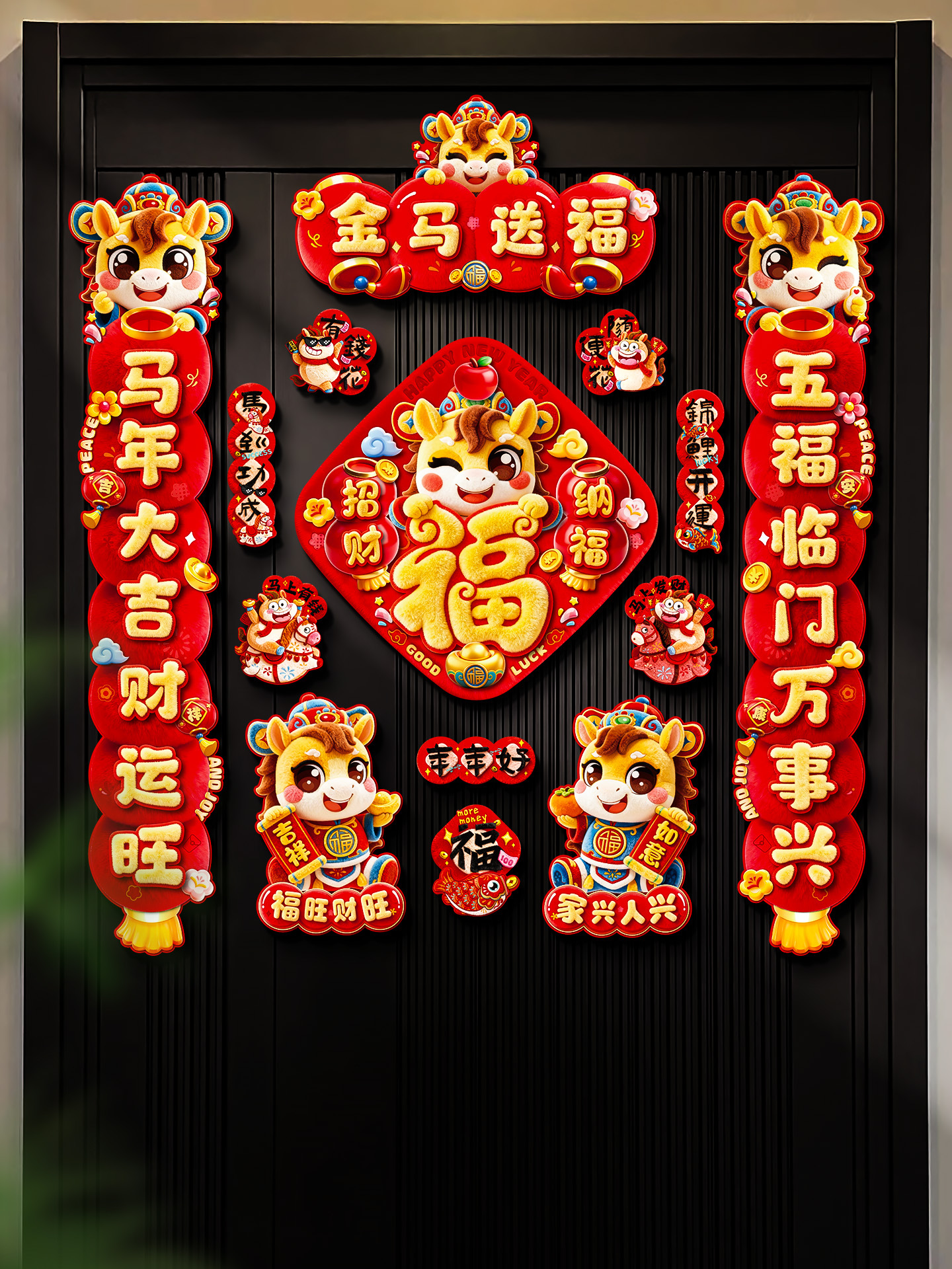 马年磁吸对联2026新款春节福字入户门贴新年过年家用大门春联装饰