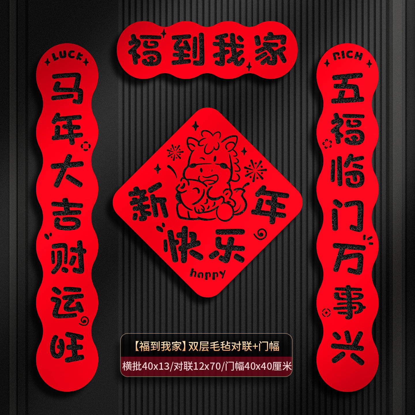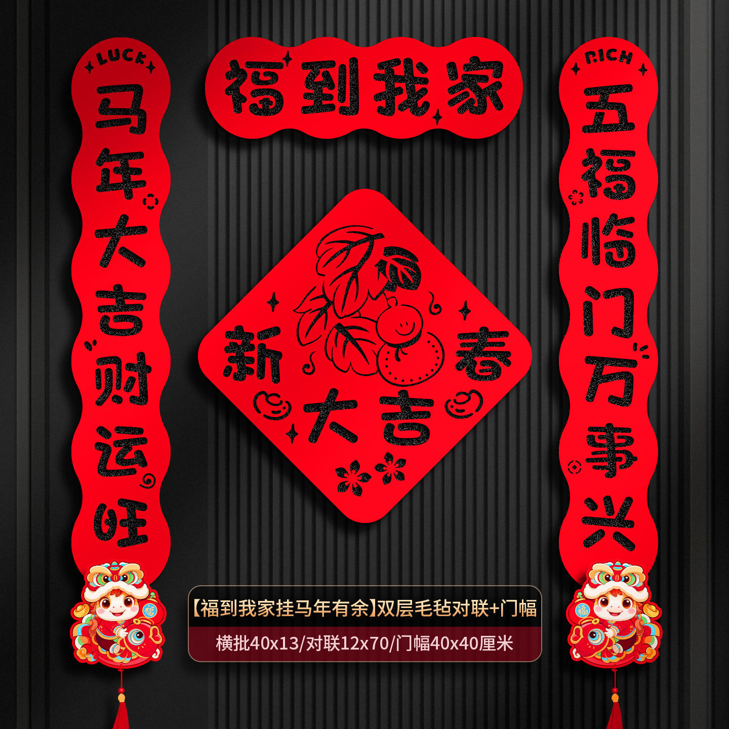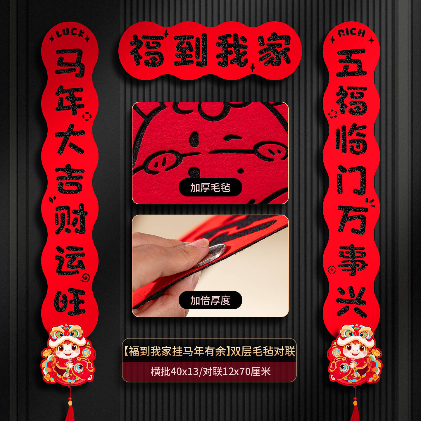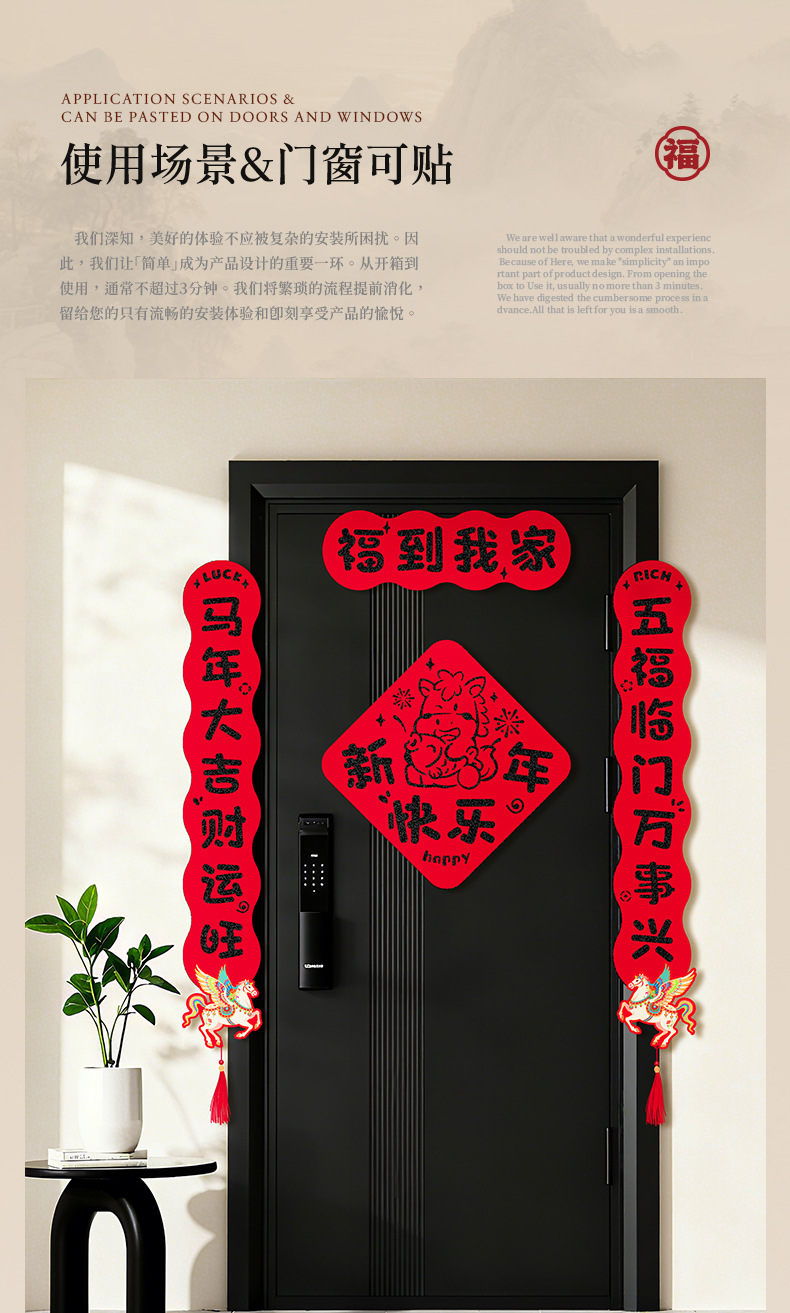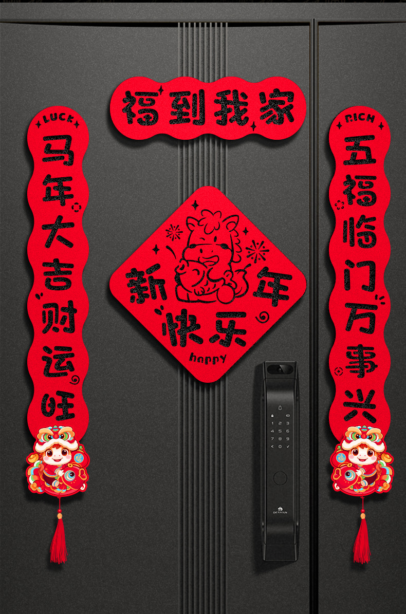 2026马年过年双层毛毡布对联春联门联福字家用入户门装饰布置现货